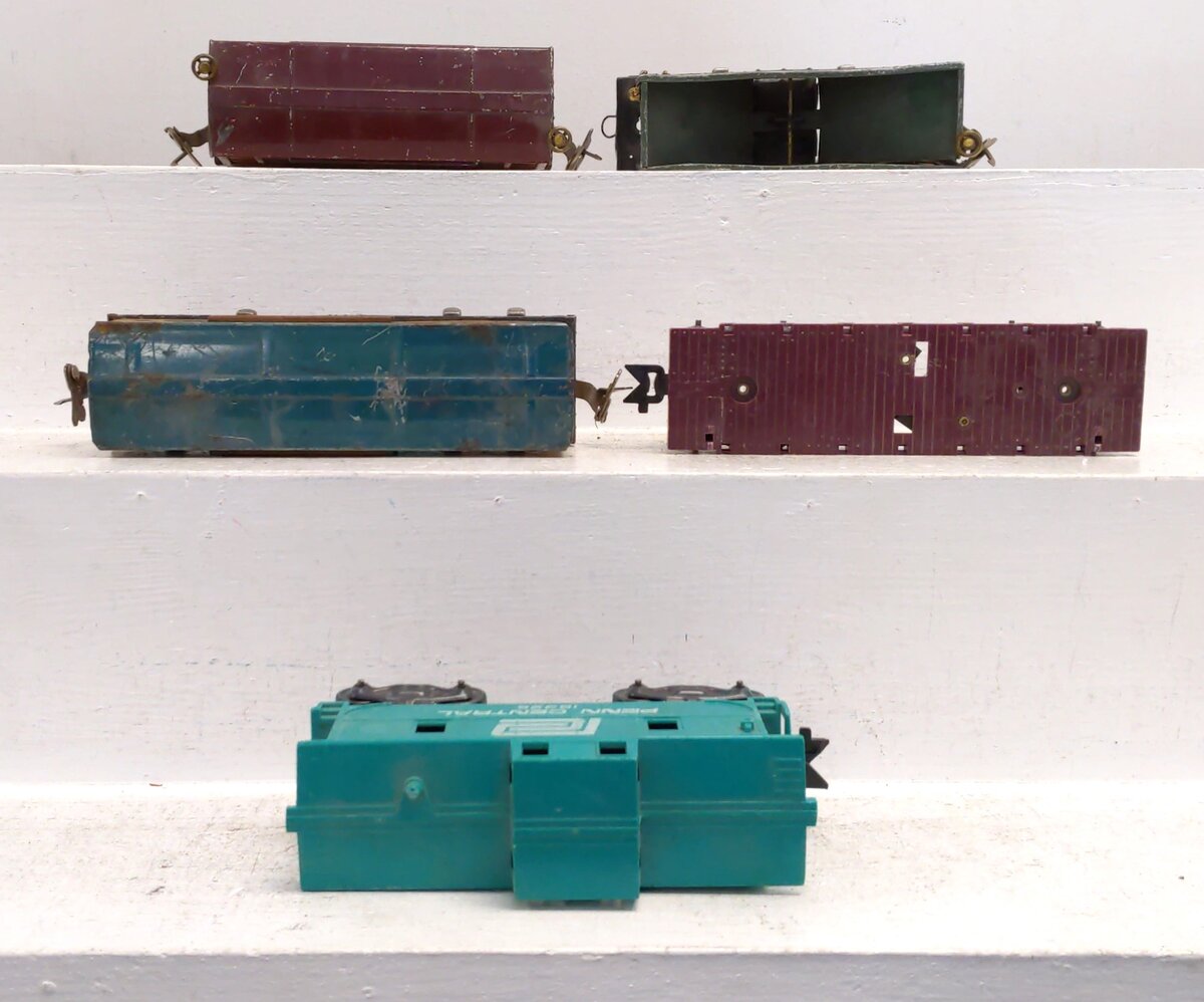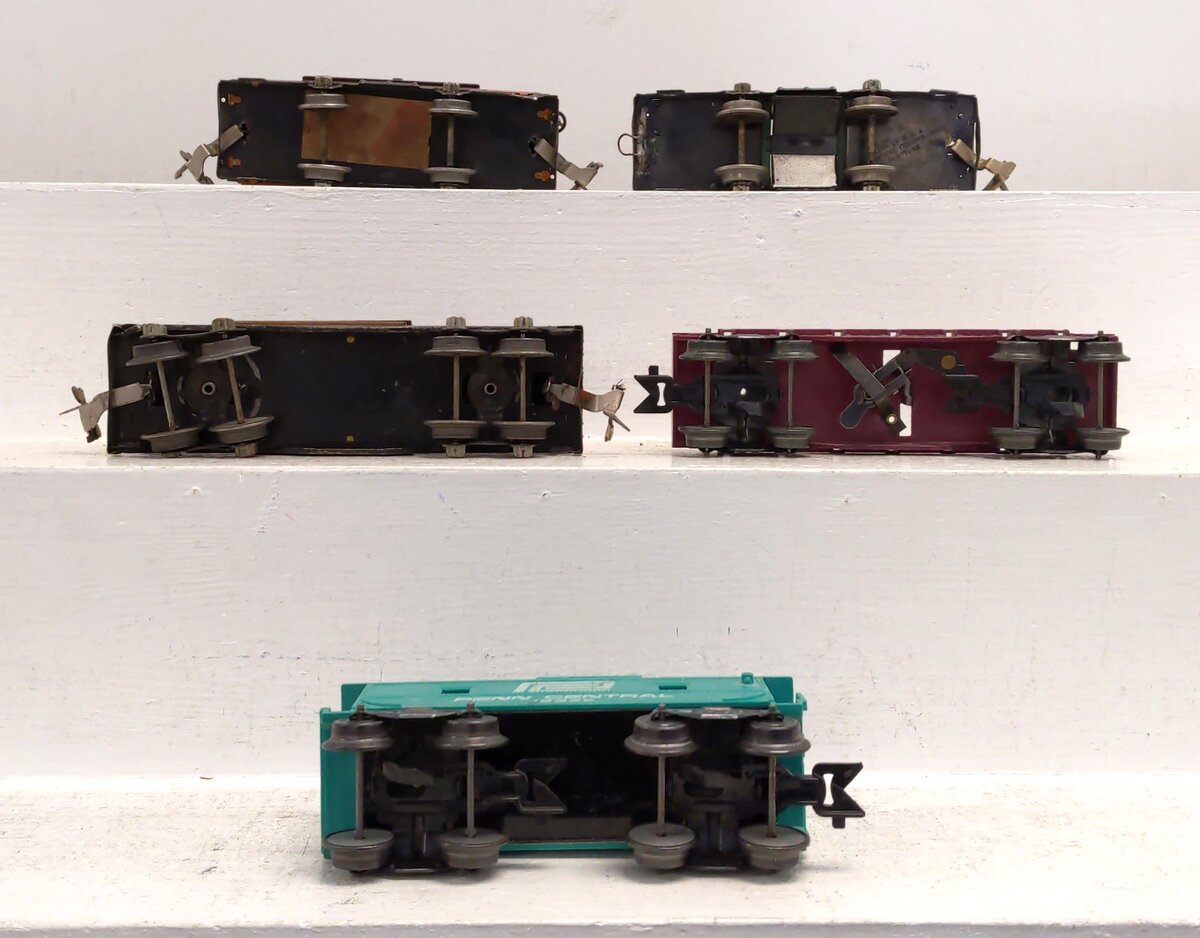 This is a lot of Lionel O Vintage Assorted Freight Cars #806, 803, 1679, 18326 [5]. These cars display varied constructions.