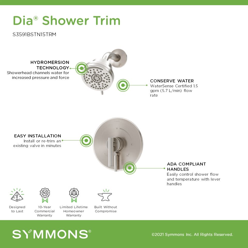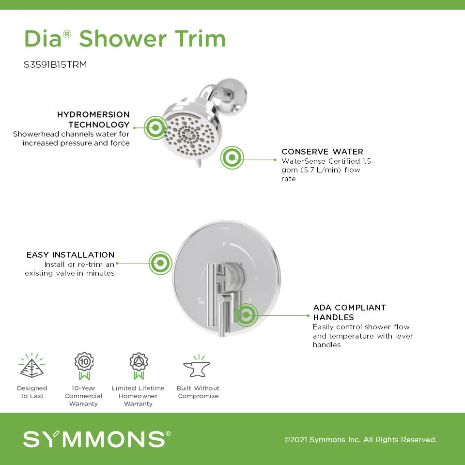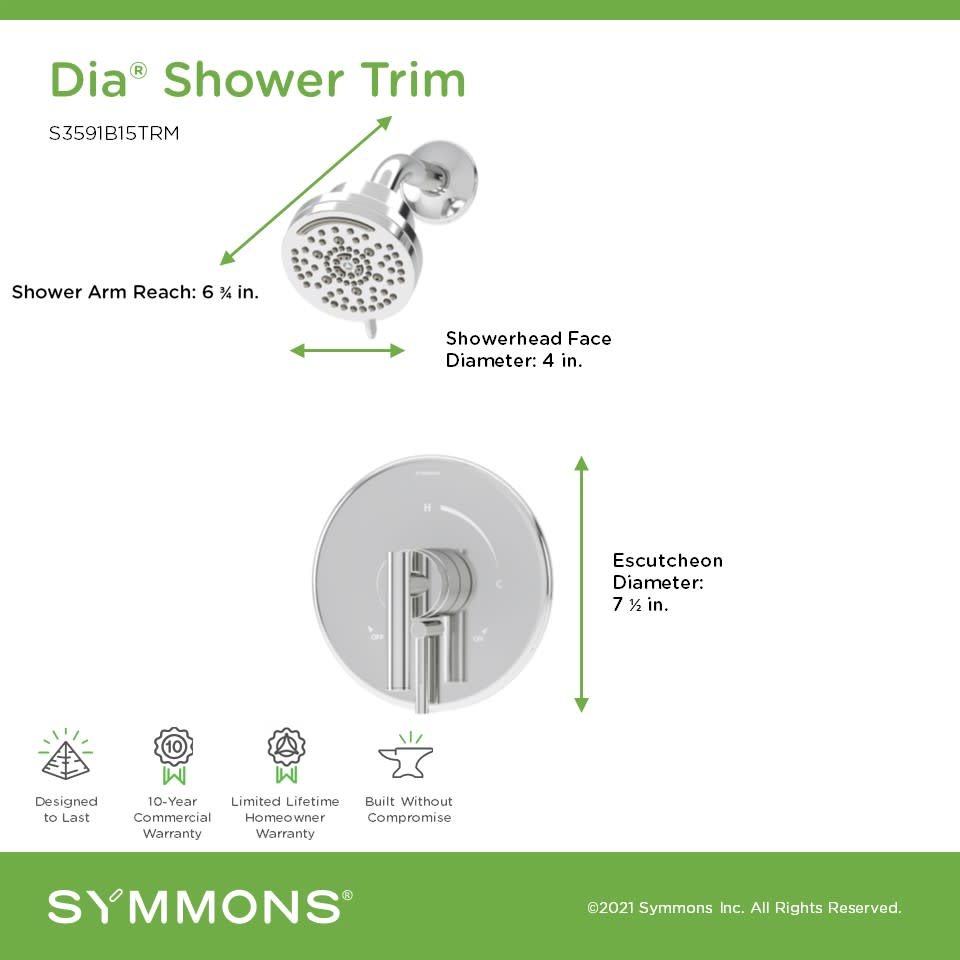 - Covered under Symmons's 10 year commercial and limited lifetime residential warranties and 10 year commercial warranty