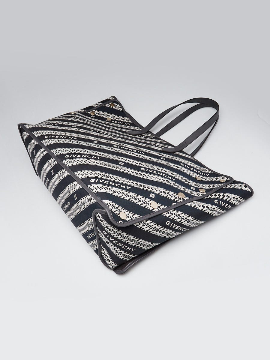![]() ![]() ![]() ![]() ![]() ![]() ![]() ![]() ![]() ![]() ![]() ![]() Description This Givenchy tote in the Medium Bond Chain style has a bold white text print fixed against a black background and chain link motif, that is sure to turn heads. Retail price is $1790. Condition The exterior canvas is clean and beautiful. The leather trim has faint rubbing on the bottom corners. The handles are clean and smooth. The hardware is bright and shiny. The interior is clean and in excellent condition. Details
