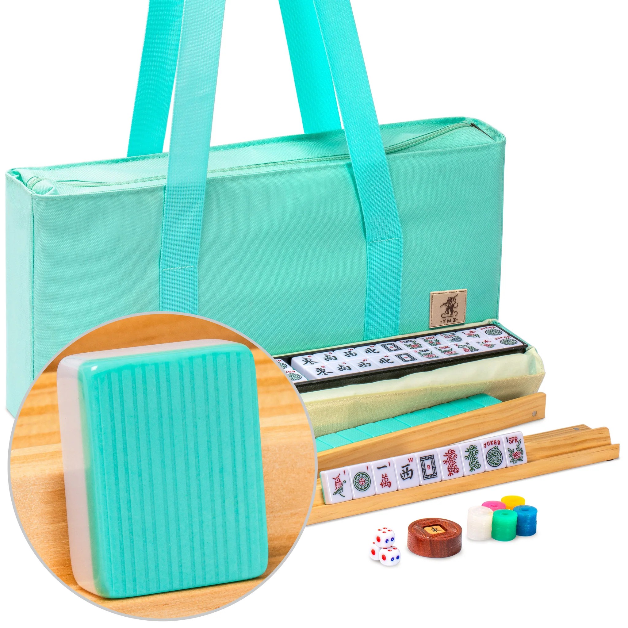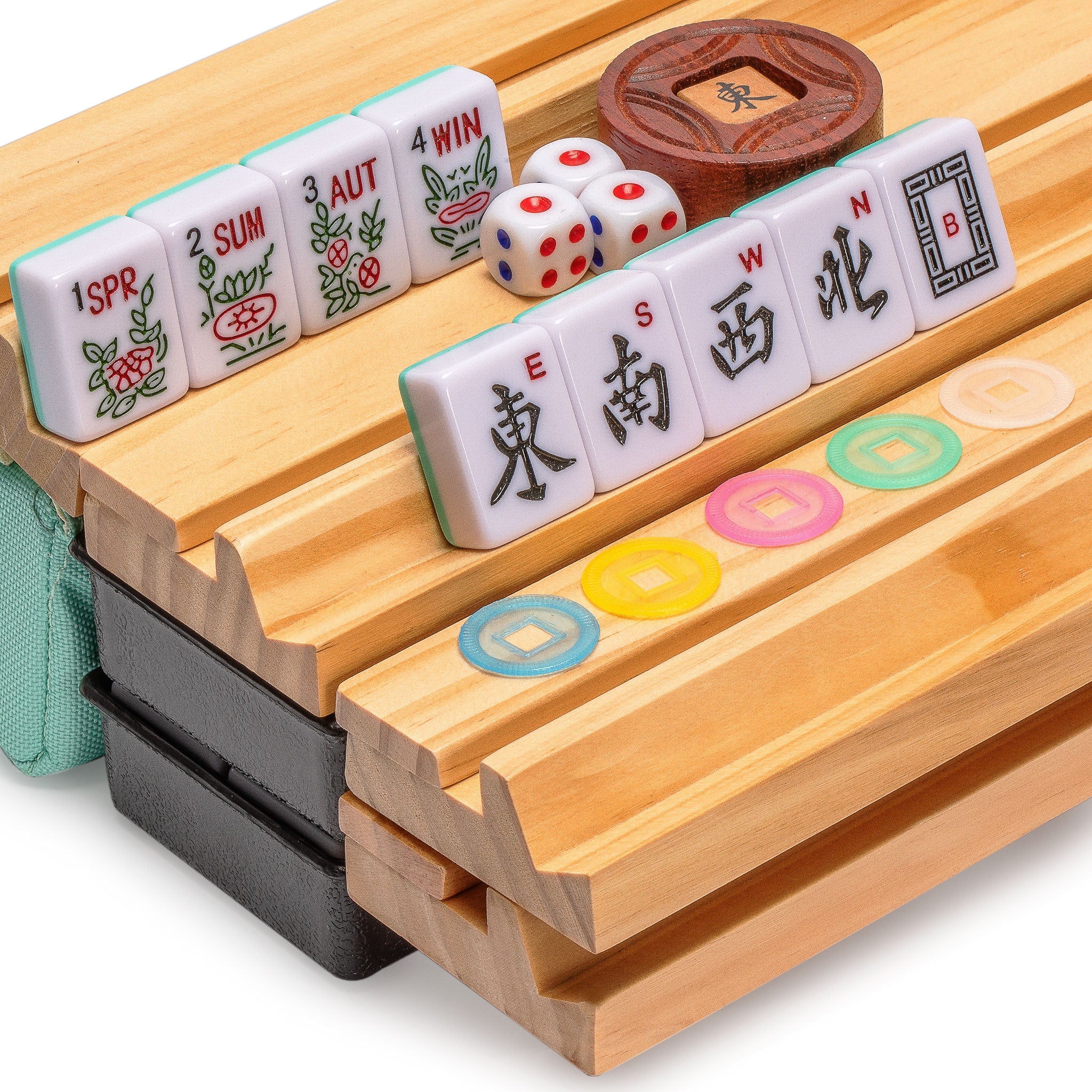 Immerse yourself in the refreshing elegance of this "Seabreeze" American Mahjong set. Featuring durable tiles with a modern striped pattern and a vibrant aesthetic, this set brings a fresh, coastal-inspired look to your game nights. The all-in-one wooden racks with integrated pushers ensure smooth, organized gameplay, while the included Wright Patterson scoring coins, dice, and wind indicator complete your Mahjong experience. Designed with portability in mind, this set comes with a soft, green zippered carrying case, offering convenience and protection whether you're hosting at home or playing on the go. Perfect for players of all levels, the "Seabreeze" set is where style meets functionality for a truly premium playing experience.