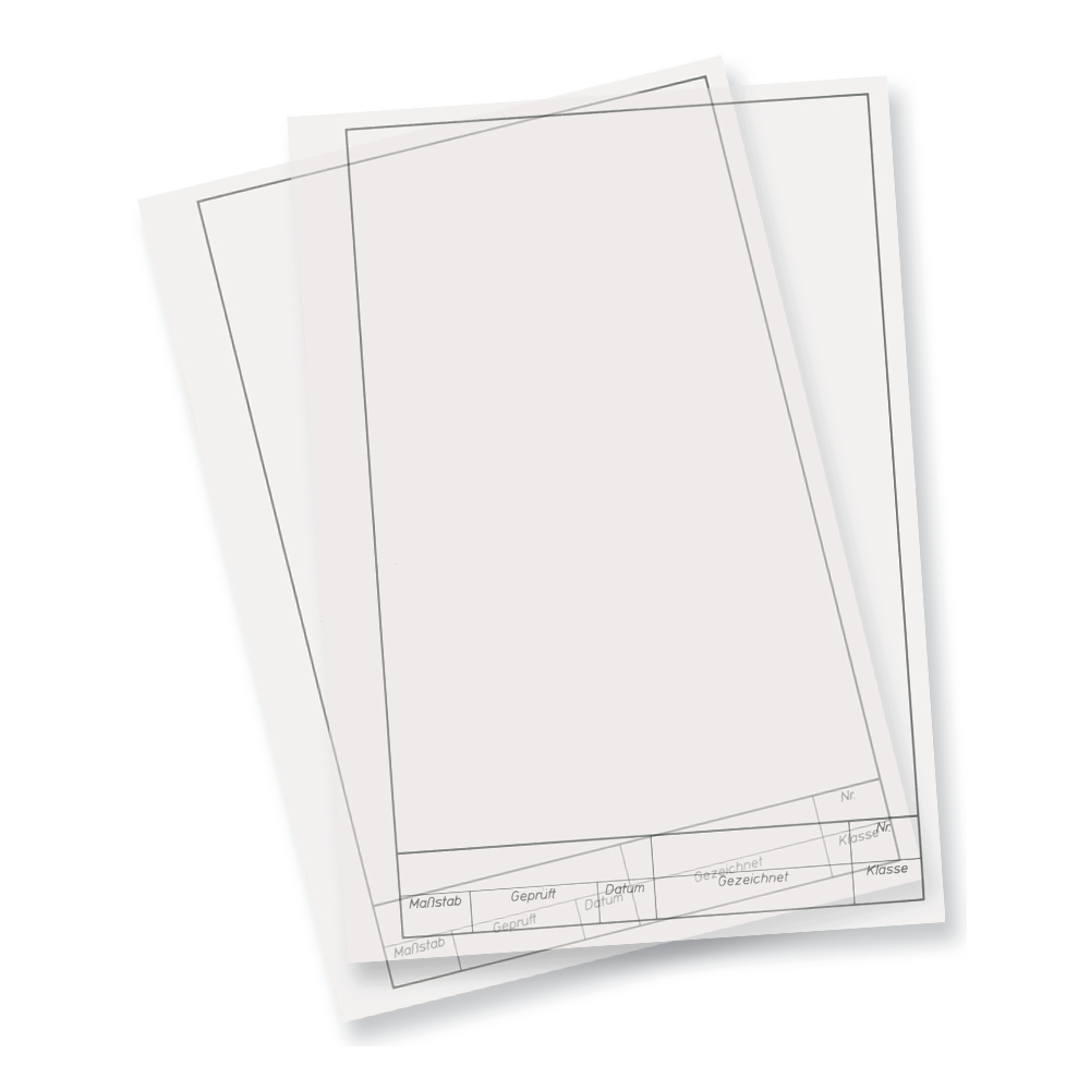 folia 8213/5 - Zeichenpapier, Block mit Arbeitsblättern für technisches Zeichnen, DIN A3, 5 Blatt, 80 g/qm, transparent, mit Vordruck