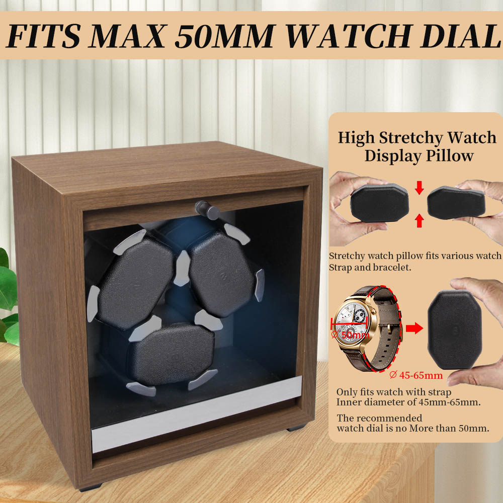 【Fit Almost for All Watches】The watch winder's oval pillows are compatible with almost all watch sizes. Whether it's a small size or a large size, the watch winder could hold it. It is also a watch box decoration, and the large plexiglass cover protects your watch from dust, moisture, and scratches.