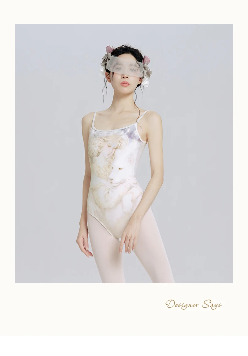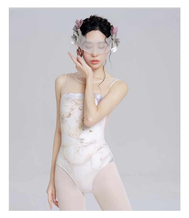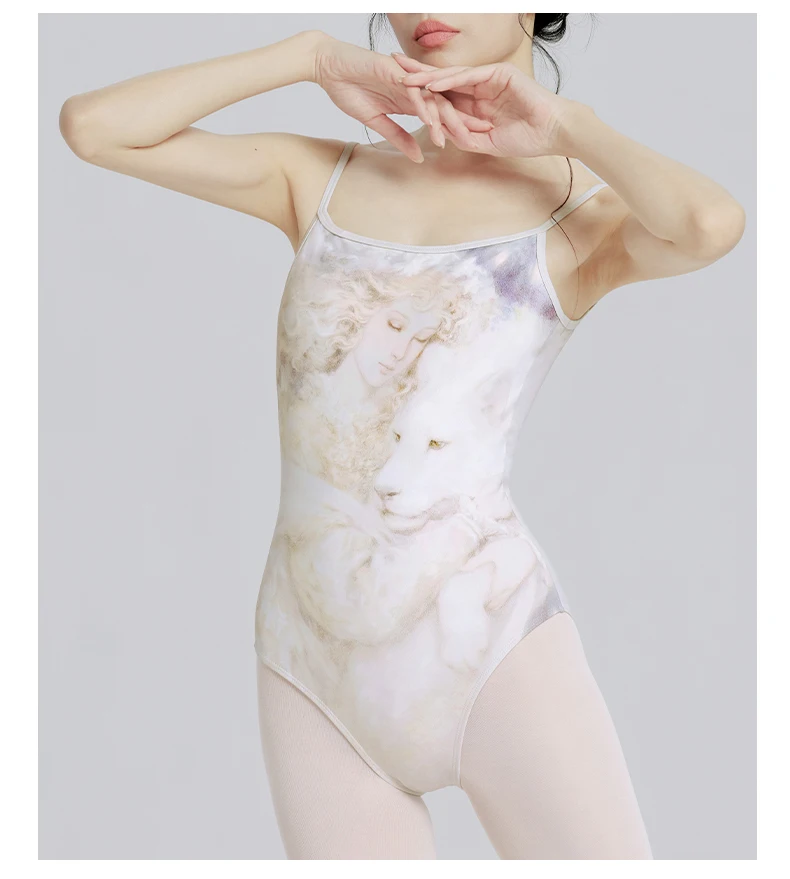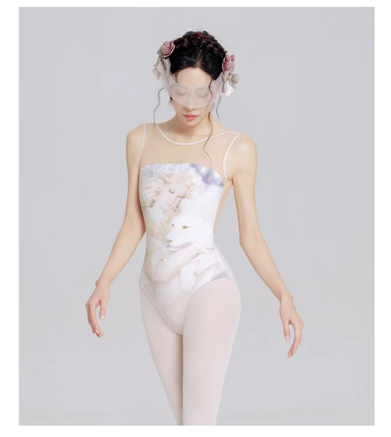 Women Mythic Printed Bodysuit Ballerina Professional Performance Dancewear Girls Backless Swimwear Gym Aerial Yoga Dance Leotard
