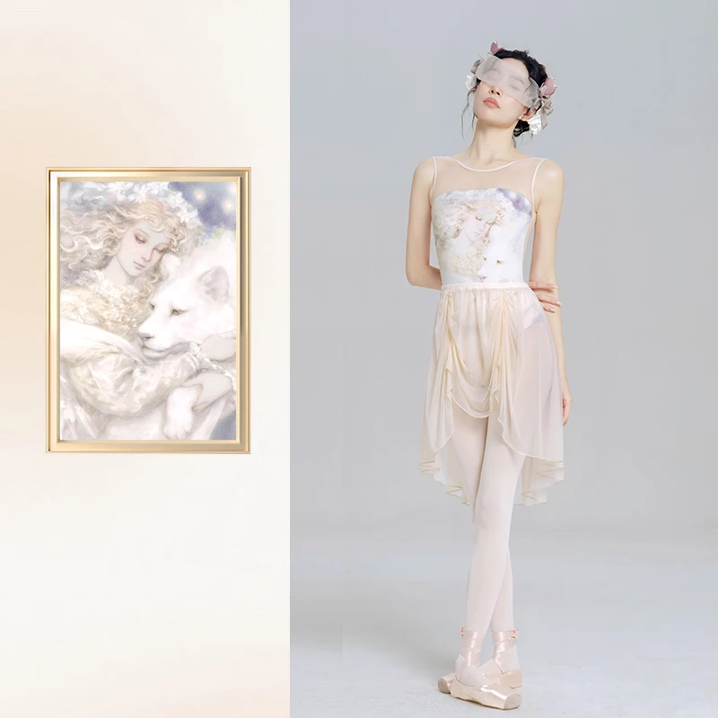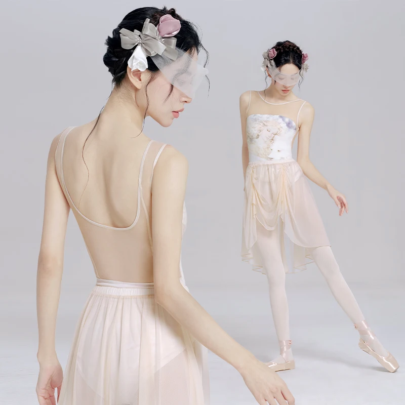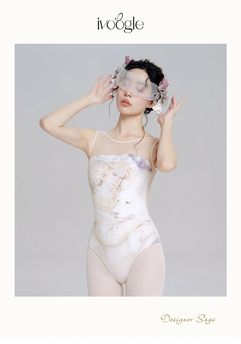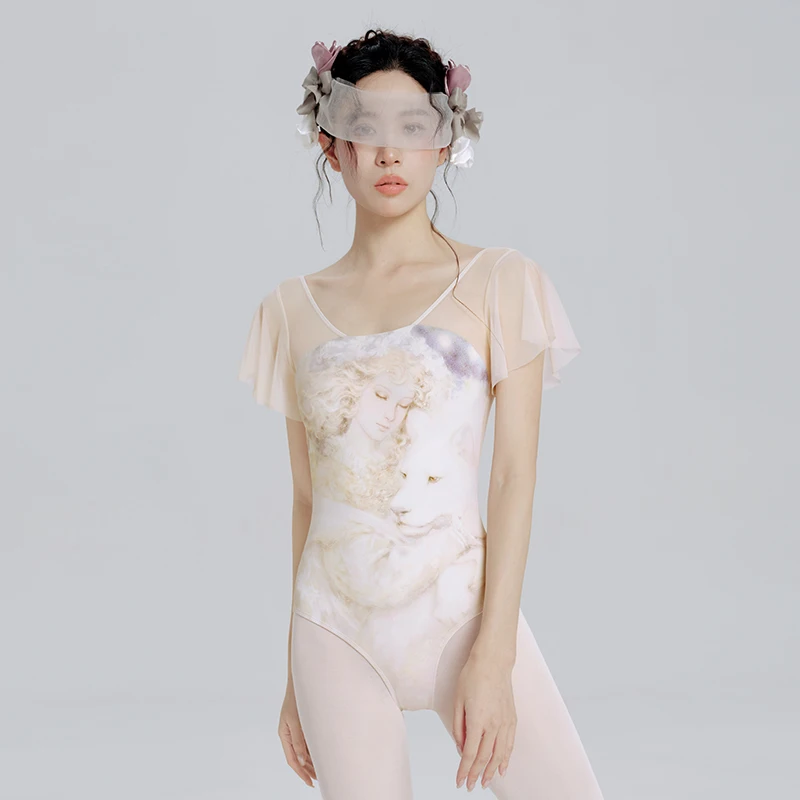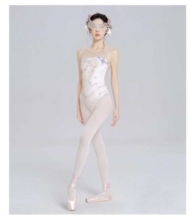 Women Mythic Printed Bodysuit Ballerina Professional Performance Dancewear Girls Backless Swimwear Gym Aerial Yoga Dance Leotard