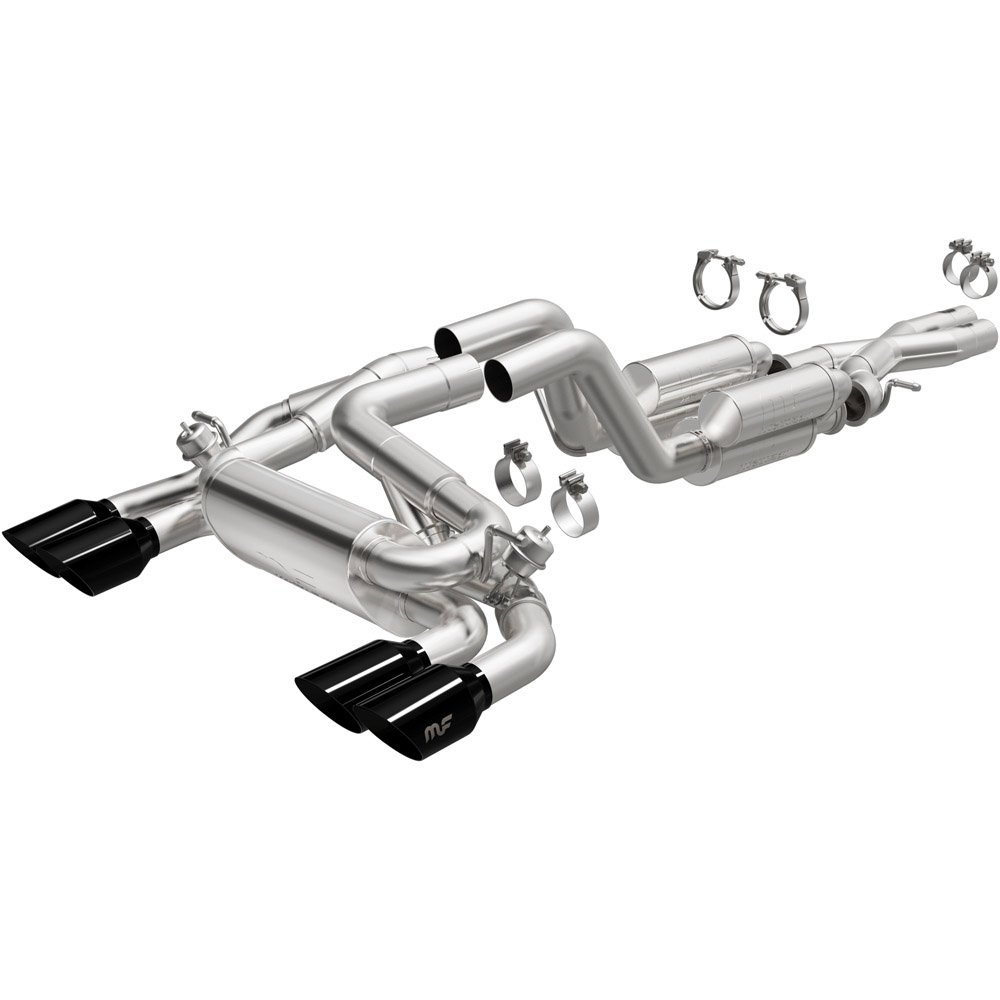 Exhaust Tip Length - 7 in., Exhaust Tip Shape - Round, Muffler (Front Left Inside) Body Height - 4 in., Muffler (Front Left Inside) Body Length - 11 in., Muffler (Front Left Inside) Body Width - 4 in., Muffler (Front Left Outside) Body Height - 5 in., Muffler (Front Left Outside) Body Length - 11 in., Muffler (Front Left Outside) Body Width - 5 in., Muffler (Front Right Inside) Body Height - 5 in., Muffler (Front Right Inside) Body Length - 11 in., Muffler (Front Right Inside) Body Width - 5 in., Muffler (Front Right Outside) Body Height - 4 in., Muffler (Front Right Outside) Body Length - 11 in., Muffler (Front Right Outside) Body Width - 4 in., Muffler (Rear) Body Height - 5 in., Muffler (Rear) Body Length - 14 in., Muffler (Rear) Body Width - 8 in., Muffler (Front Left Inside) Type - Tuned Chamber, Muffler (Front Left Outside) Type - Straight-Through, Muffler (Front Right Inside) Type - Straight-Through, Muffler (Front Right Outside) Type - Tuned Chamber, Muffler (Rear) Type - Straight-Through, Exhaust Tip Quantity - 4, Exhaust Tip Diameter - 4 in., Exhaust Tip Finish - Black Chrome, Exhaust Tip Material - Stainless Steel, Muffler Type - Straight-Through;Tuned Chamber, Clamps Included - Yes, Valve Type - Passive, Type - Cat-Back, Gasket Or Seal Included - No, Pipe Material - Stainless Steel, Clamping Type - Round Band, Clamping Type - V Band, Hangers Included - Yes, Muffler Body Material - Stainless Steel, Muffler Quantity - 5, Inlet Type - Clamp-On, Valve Included - Yes, Mounting Bracket Included - No, Exit Style - Quad Split Rear, Main Piping Diameter - 3 in., Exhaust Tip Connection - Welded-On, Exhaust Tip Wall - Double Wall, Exhaust Tip Cut - Angle Cut, Exhaust Tip Edge - Folded Edge, Exhaust Tip Resonated - No, Exhaust Tip Intercooled - No, Muffler Finish - Brushed, Catalytic Converter Included - No, Muffler Body Height Position Front Left Inside - 4 in., Muffler Body Height Position Front Left Outside - 5 in., Muffler Body Height Position Front Right Inside - 5 in., Muffler Body Height Position Front Right Outside - 4 in., Muffler Body Height Position Rear - 5 in., Muffler Body Length Position Front Left Inside - 11 in., Muffler Body Length Position Front Left Outside - 11 in., Muffler Body Length Position Front Right Inside - 11 in., Muffler Body Length Position Front Right Outside - 11 in., Muffler Body Length Position Rear - 14 in., Muffler Body Width Position Front Left Inside - 4 in., Muffler Body Width Position Front Left Outside - 5 in., Muffler Body Width Position Front Right Inside - 5 in., Muffler Body Width Position Front Right Outside - 4 in., Muffler Body Width Position Rear - 8 in., Muffler Type Position Front Left Inside - Tuned Chamber, Muffler Type Position Front Left Outside - Straight-Through, Muffler Type Position Front Right Inside - Straight-Through, Muffler Type Position Front Right Outside - Tuned Chamber, Muffler Type Position Rear - Straight-Through, Prop 65 Y/N - No