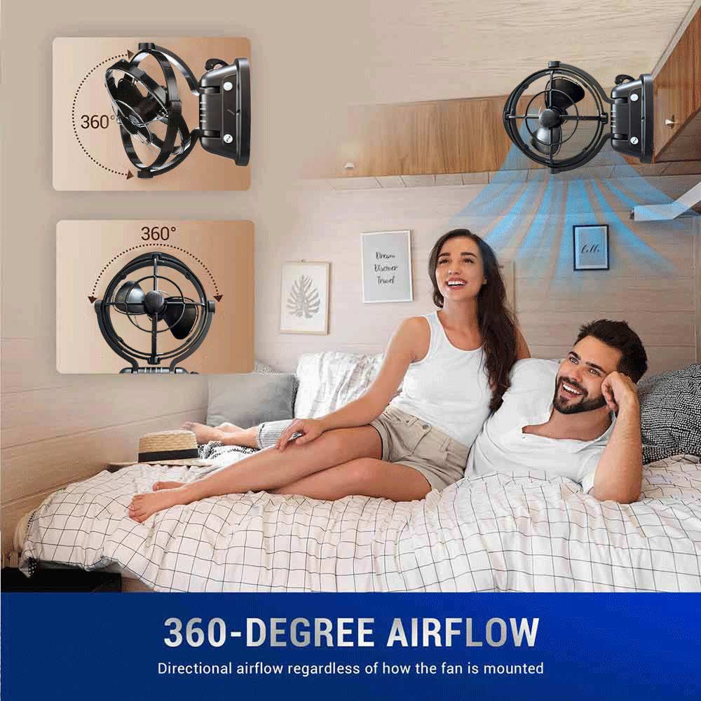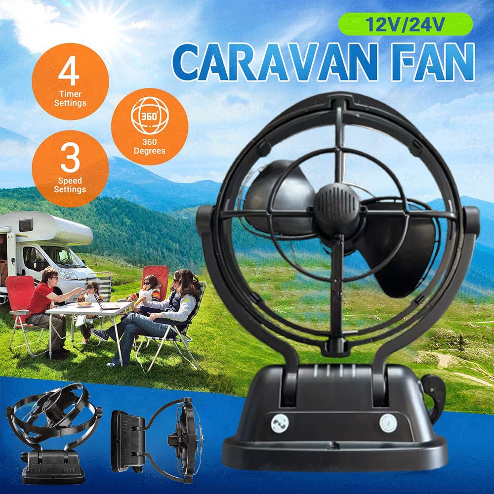 12V/24V Caravan Camping Trailer RV Boat Fan 360° with Remote Control