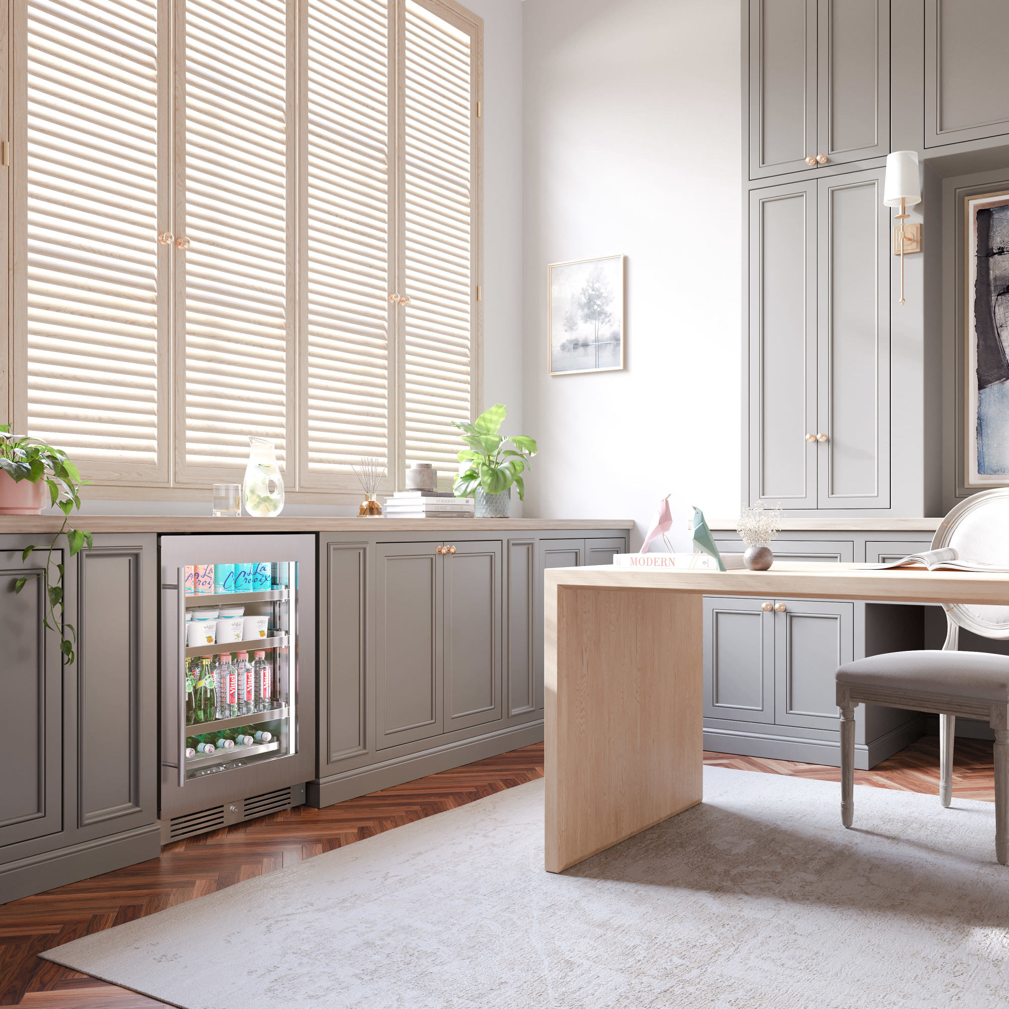 - Includes three (3) full extension beverage shelves plus one (1) shallow bottom shelf to fully utilize interior space