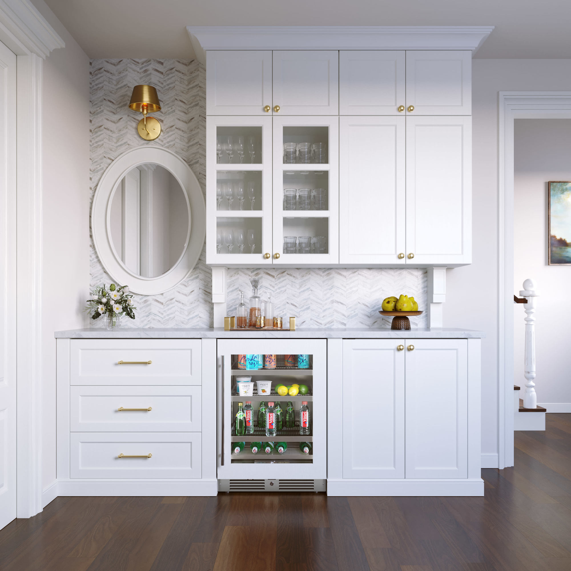 - Zero-clearance door hinges allow for a seamless installation with adjacent cabinetry