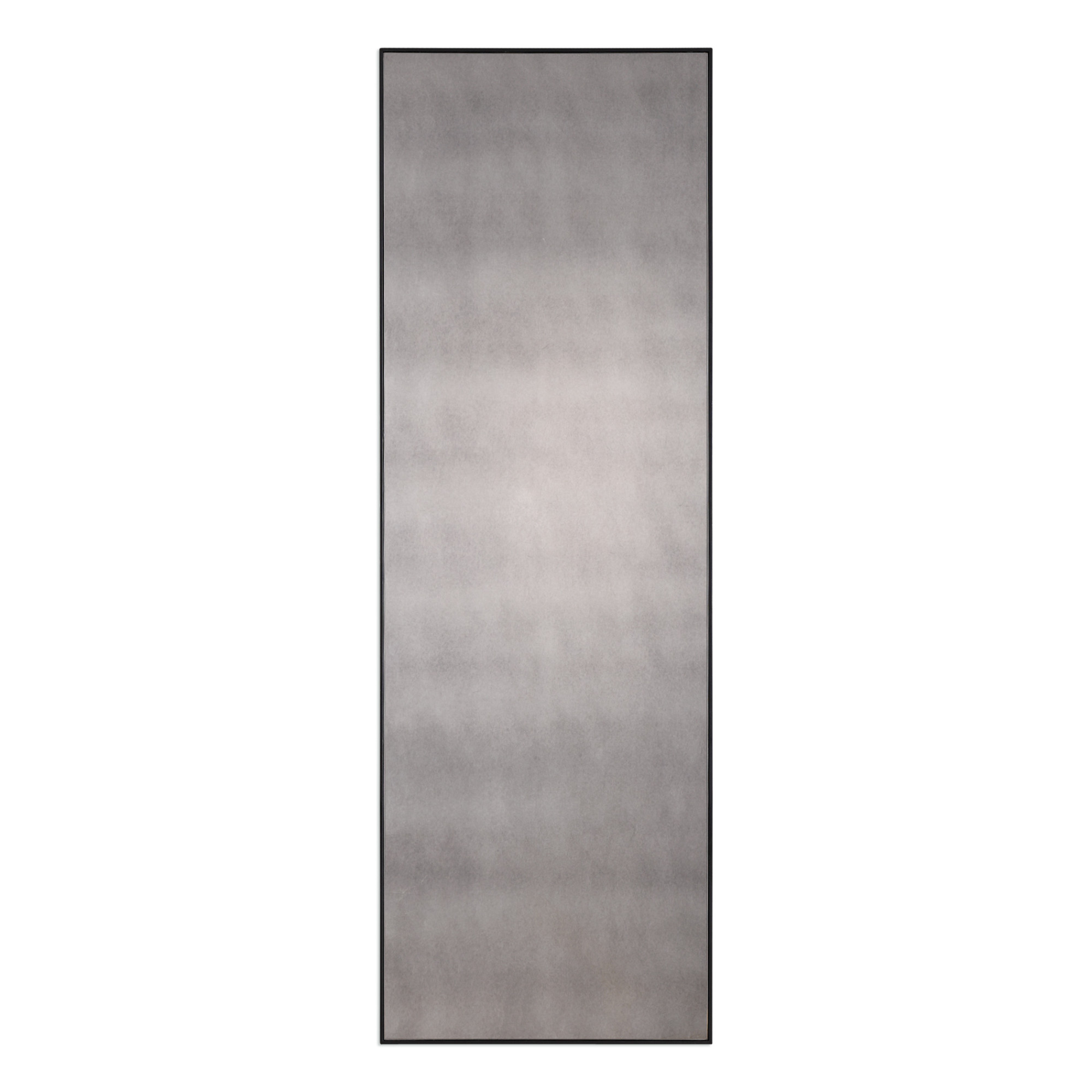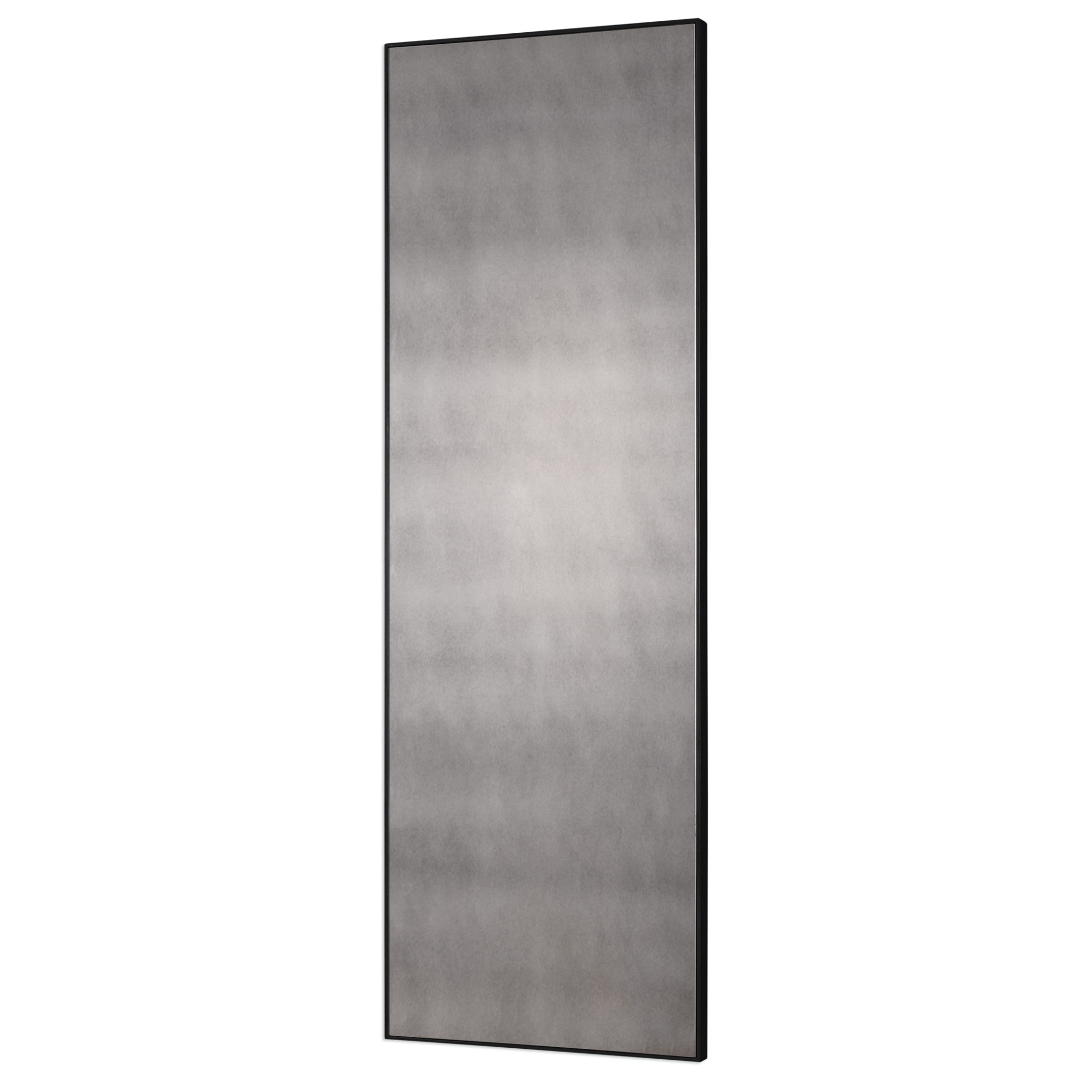 Item DescriptionThis stately mirror features an antiqued style mirror and would make a great addition to any room. The narrow but sturdy metal frame has an aged black finish. May be hung horizontal or vertical.