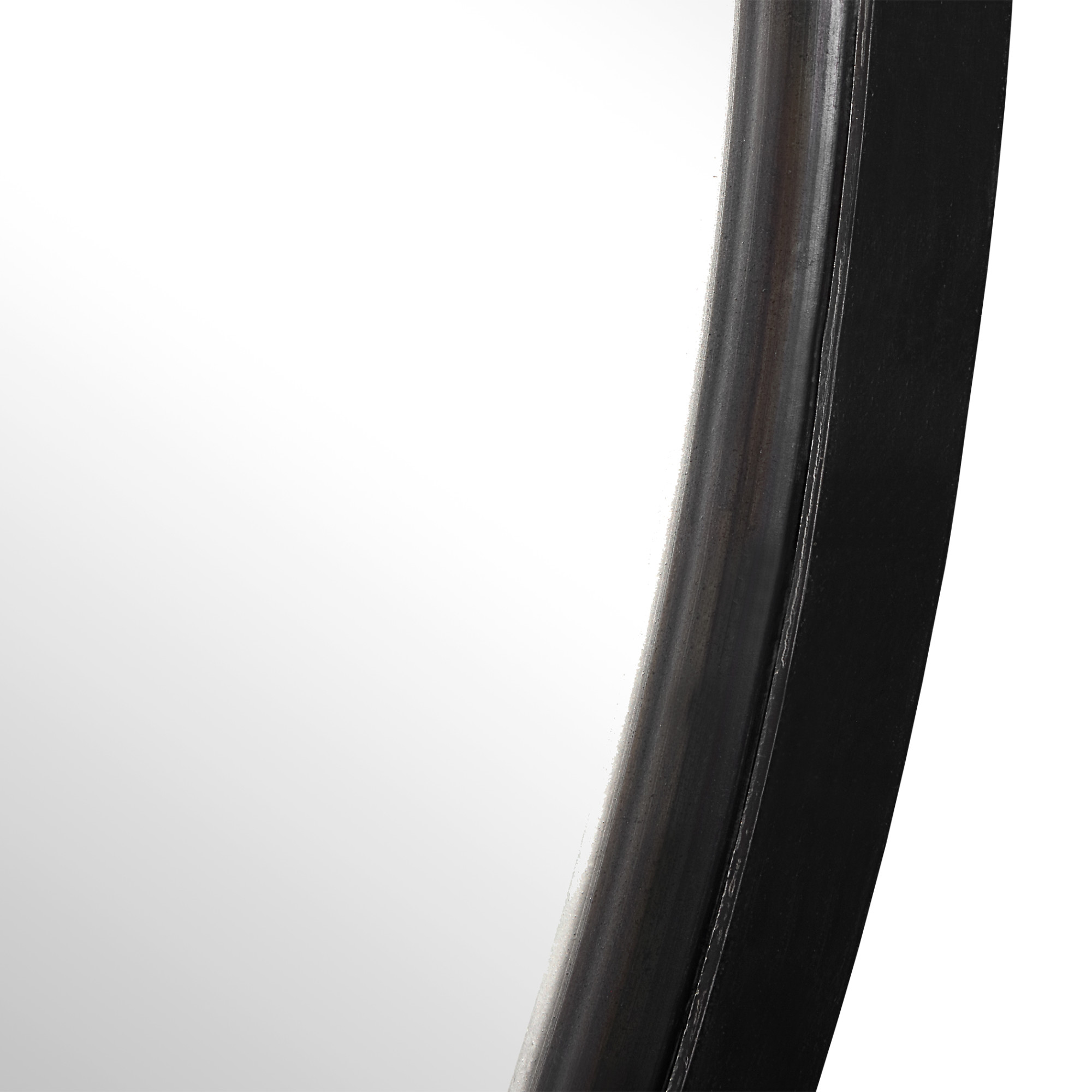 - Rounded frame finished in an aged black with subtle gray highlights