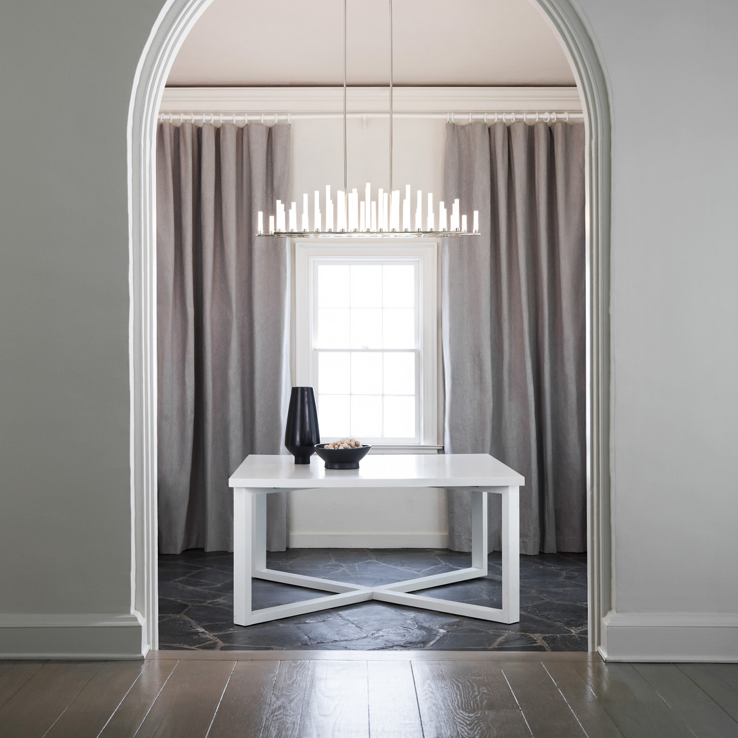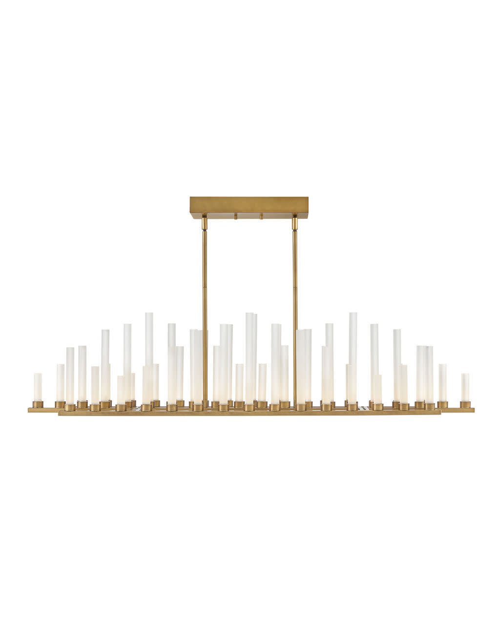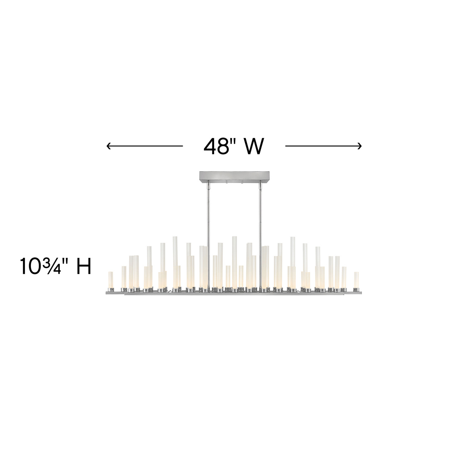 Item DescriptionThe stunning silhouette may suggest rows of candles burning at different rates as in days of old, yet Trinity is modern in every aspect. Each frosted glass column is evenly lit with integrated LED, producing 50 points of light in undulating fashion along the bars. The effect is breathtaking, unexpected and completely spectacular.
