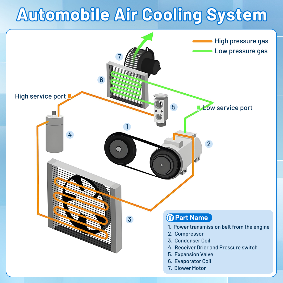 ✅ 2.Before installing the air conditioning compressor, please clean the pipes and check whether the expansion valve, evaporator, and condenser are worn out and need replacing.