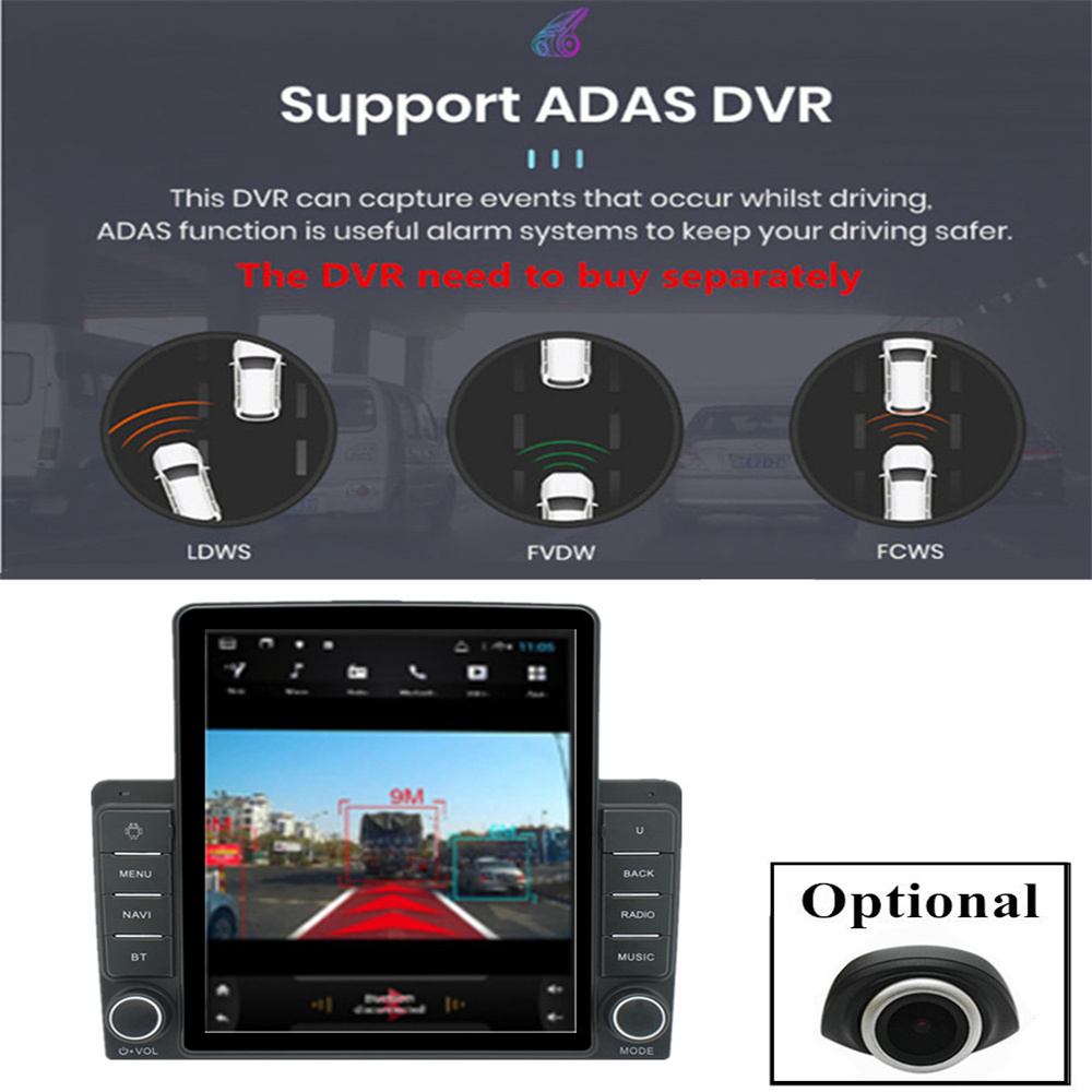 General | - Power Supply: DC 12V (allowance range: 10.8-14.5V) - Max. Current: 10A - Screen Size: 9.5 inch - Front panel Size: As picture show |