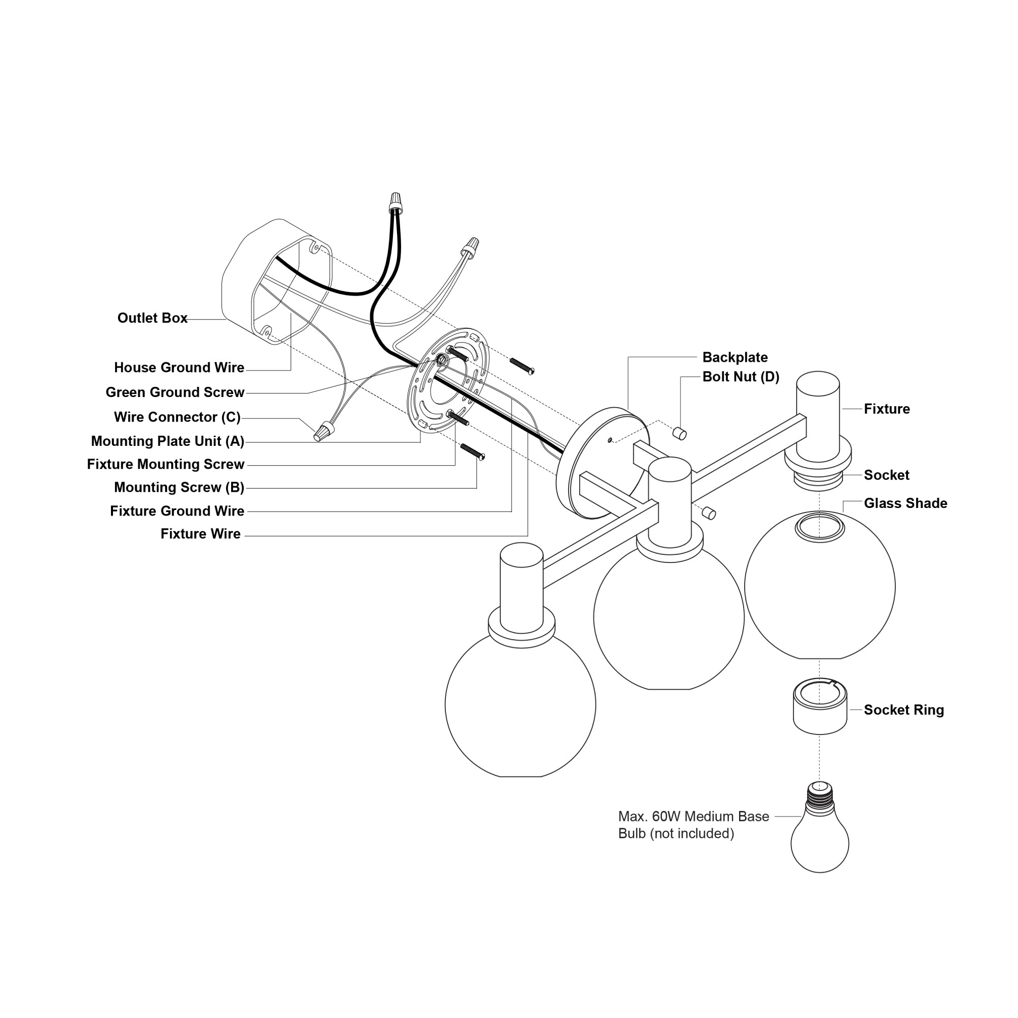 - Requires (3) medium (E26) 60 watt bulbs (not included)