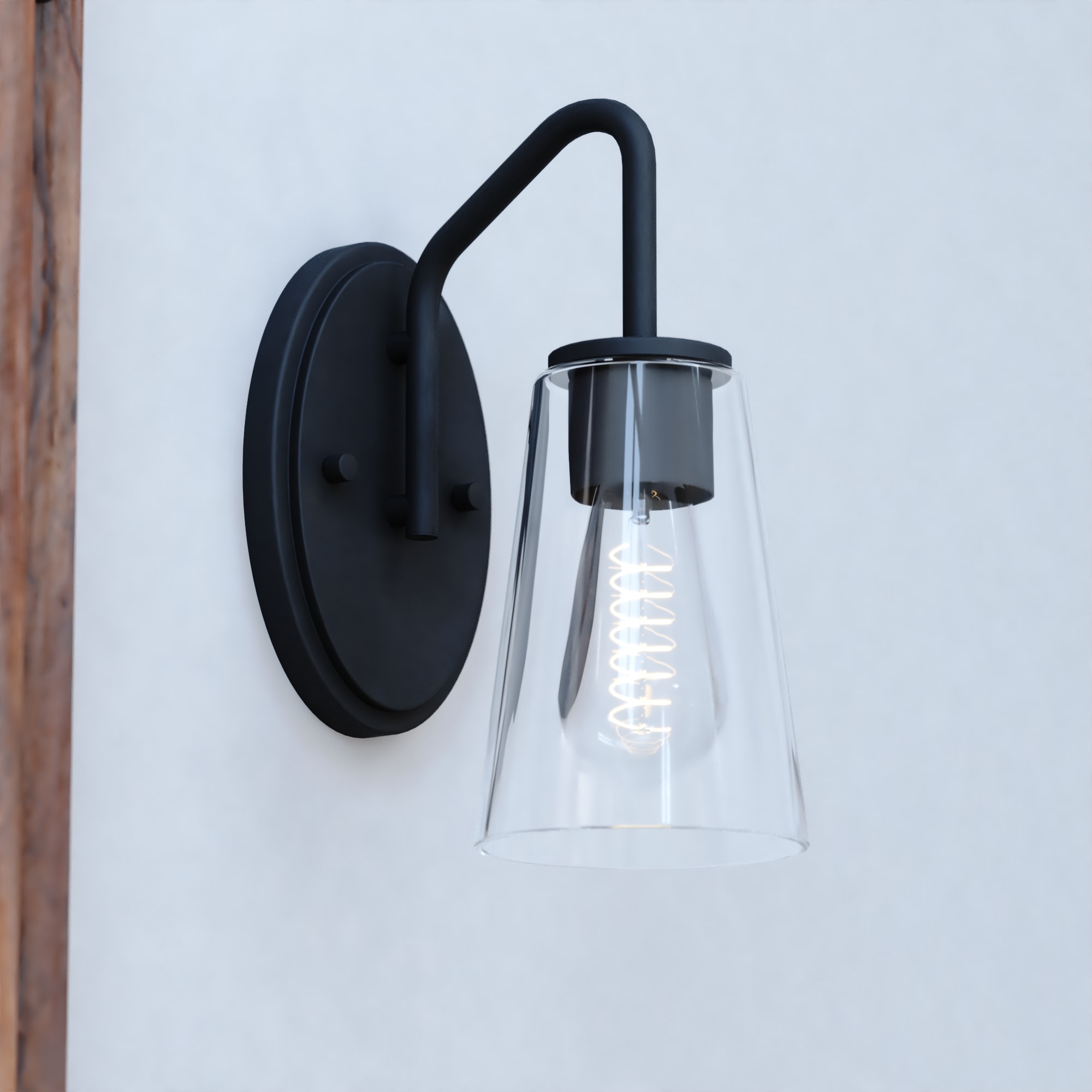 Item DescriptionThe Beverly collection provides a modern take on classic elegance. Uniquely curved arms in a finish gently support the tapered glass. Round discs hold the glass creating an inviting aesthetic. This wall sconce is ideal for bathrooms, bedrooms, hallways, stairways, and foyers. Add this versatile one light vanity for any bath or living space for the ultimate addition of transitional style.