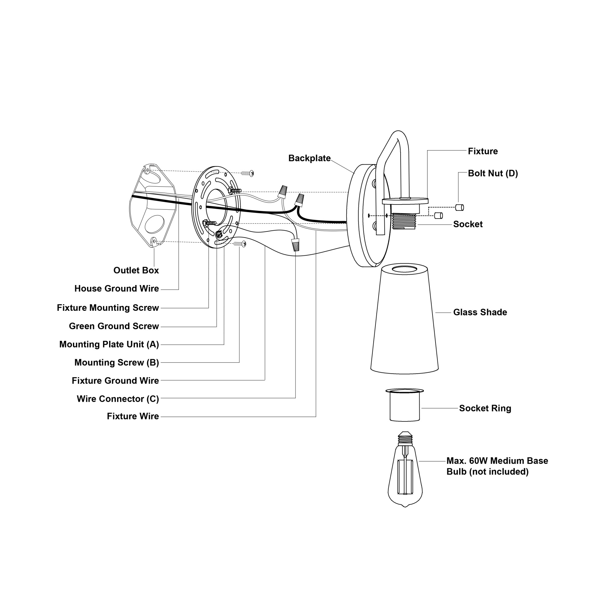 - Requires (1) medium (E26) 60 watt bulb (not included)