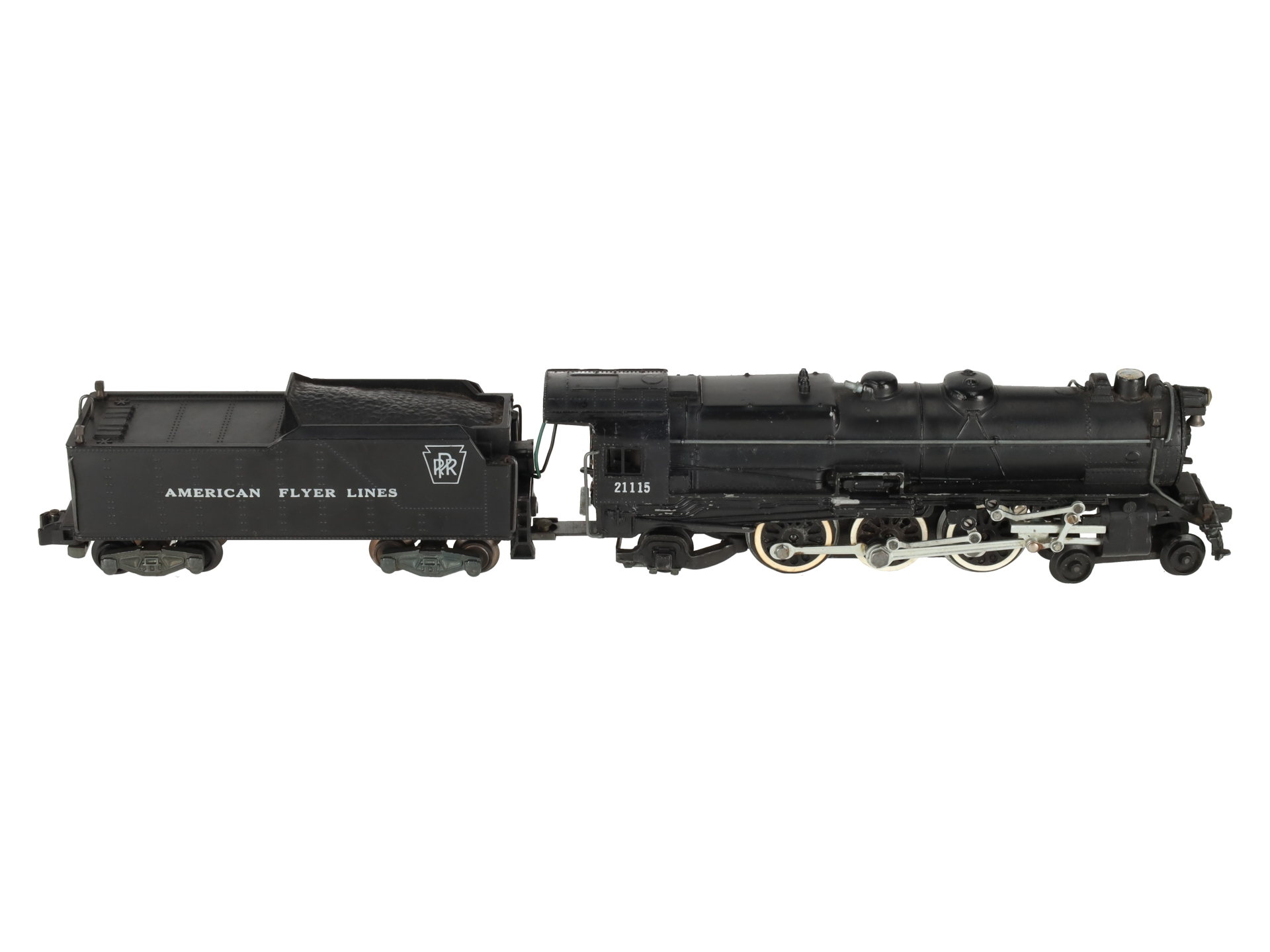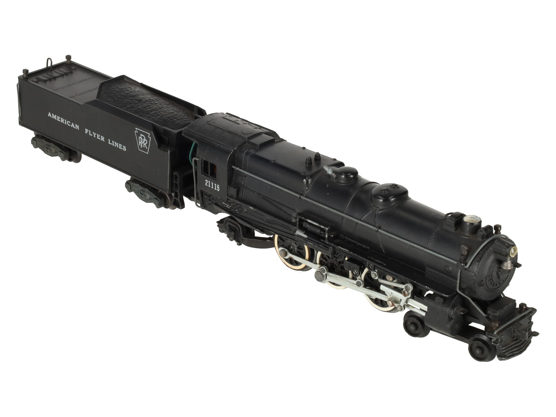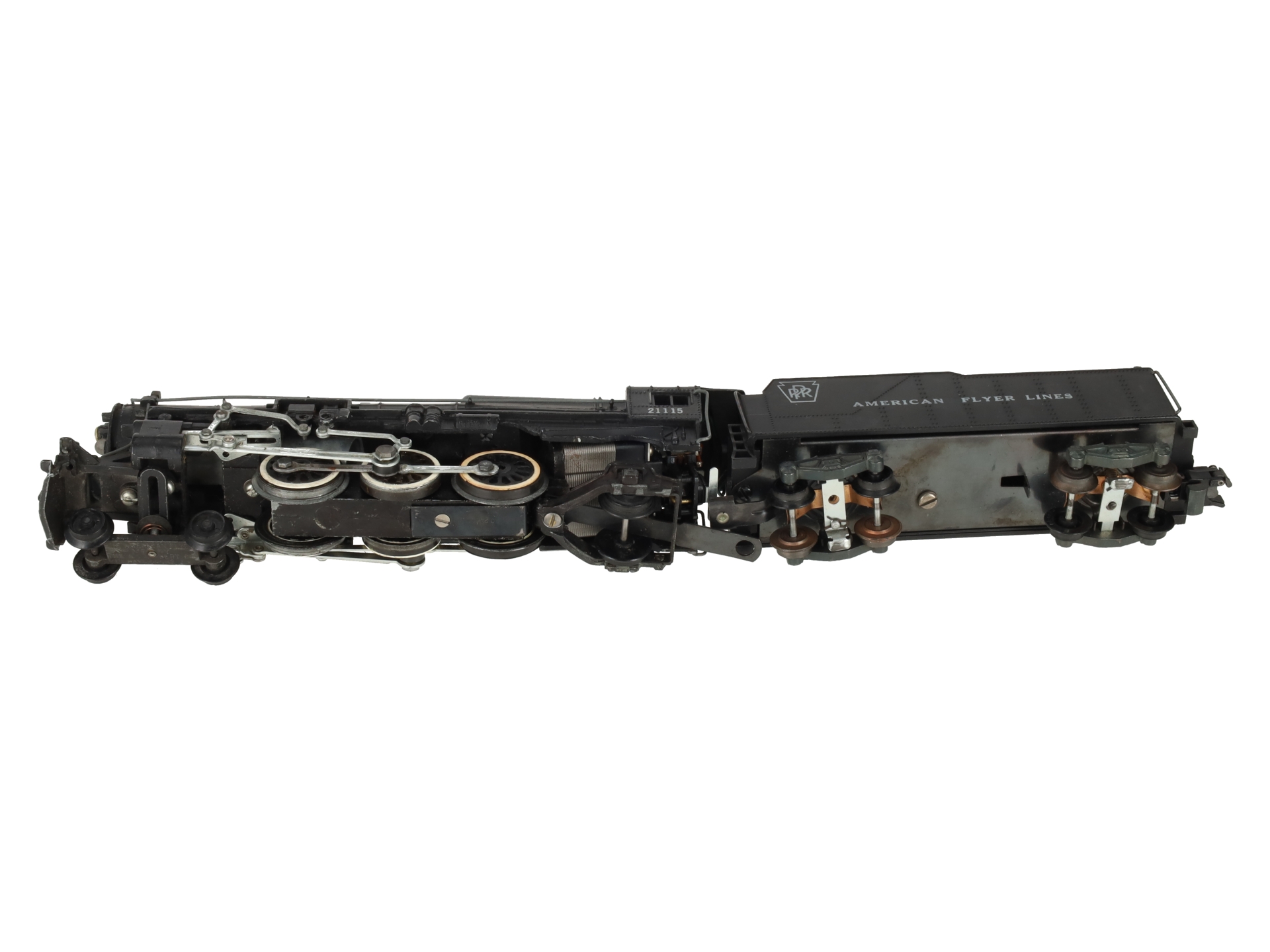This is an American Flyer 21115 K-5 4-6-2 Pacific Steam Locomotive. Features include a powerful motor with reverse, an operating headlight, operating smoke unit, metal side rods, die-cast truck, die-cast shell, metal wheels and axles. This one's cab number is 21115, there weren't very many 5-digit cab numbers made!