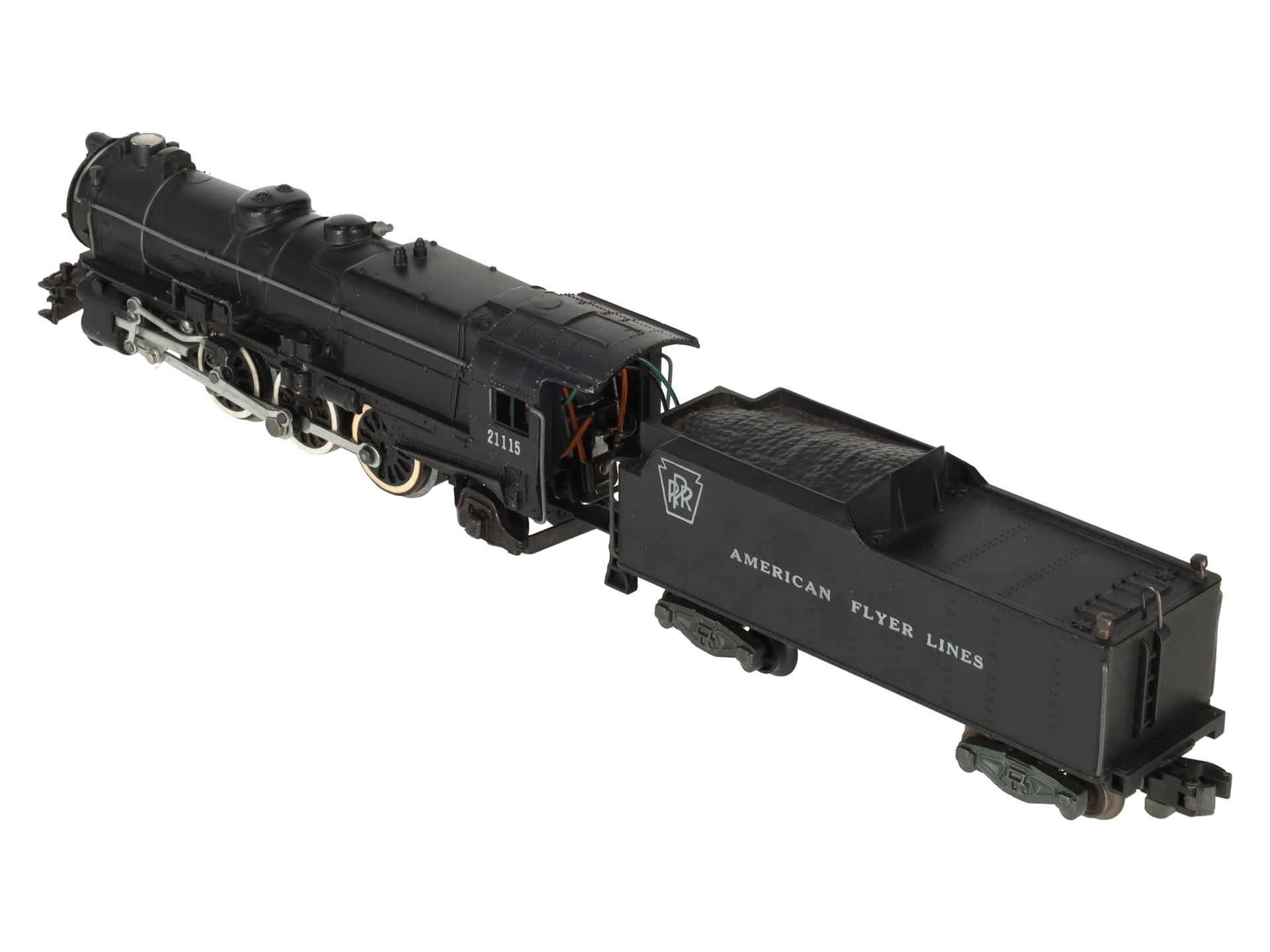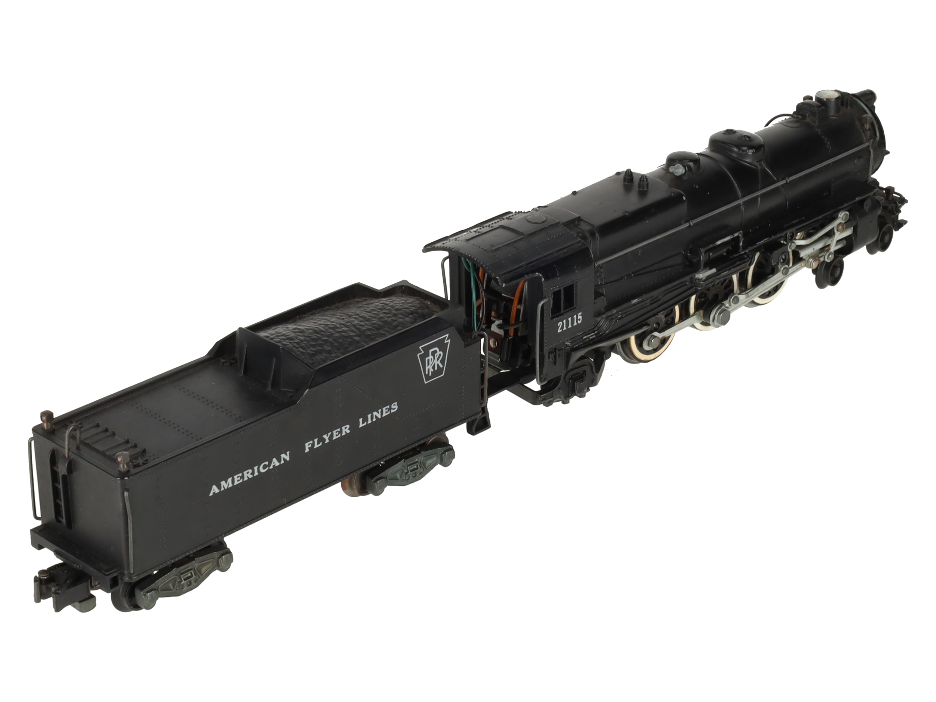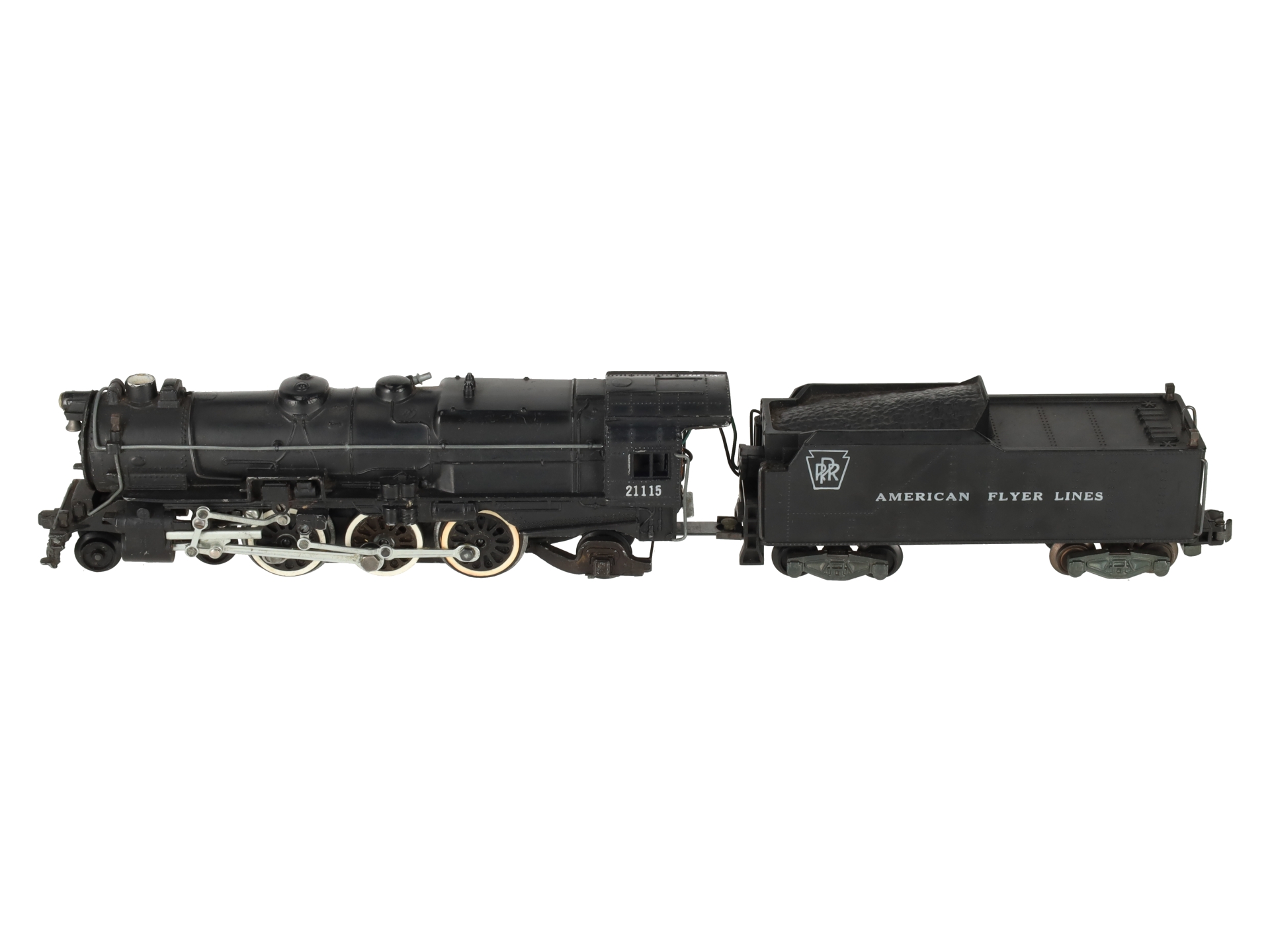 This is an American Flyer 21115 K-5 4-6-2 Pacific Steam Locomotive. Features include a powerful motor with reverse, an operating headlight, operating smoke unit, metal side rods, die-cast truck, die-cast shell, metal wheels and axles. This one's cab number is 21115, there weren't very many 5-digit cab numbers made!