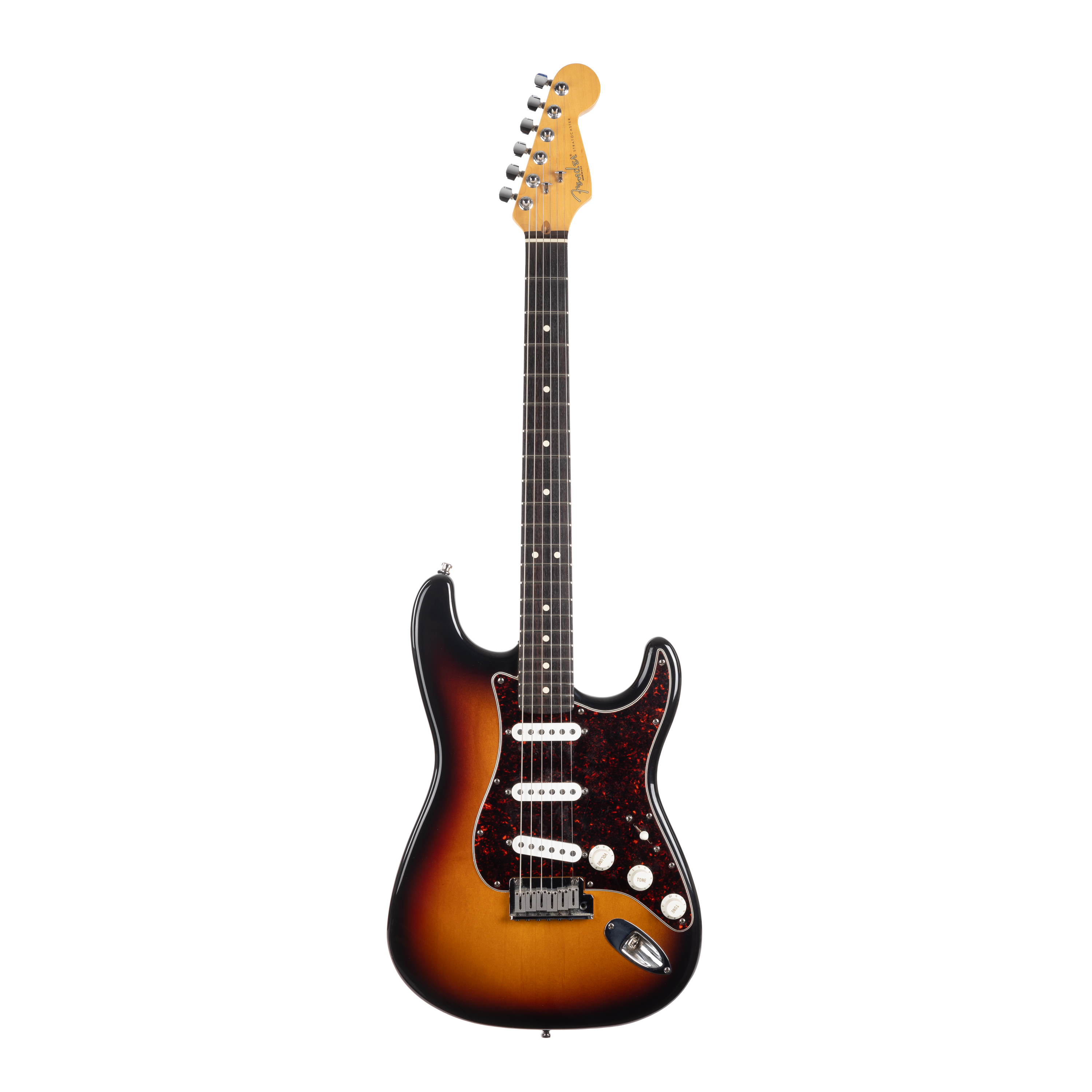 Body: Contoured, solid alder body finished 3-tone sunburst. Two-point fulcrum tremolo bridge with stainless steel saddles & original trem arm. 4-ply tortoise pickguard & trem cover. Guitar weighs 8lbs 1.1 oz.