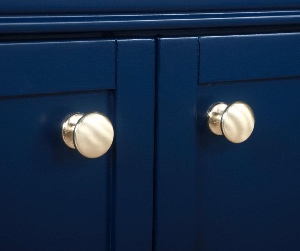 - Vanity cabinet includes matching decorative hardware