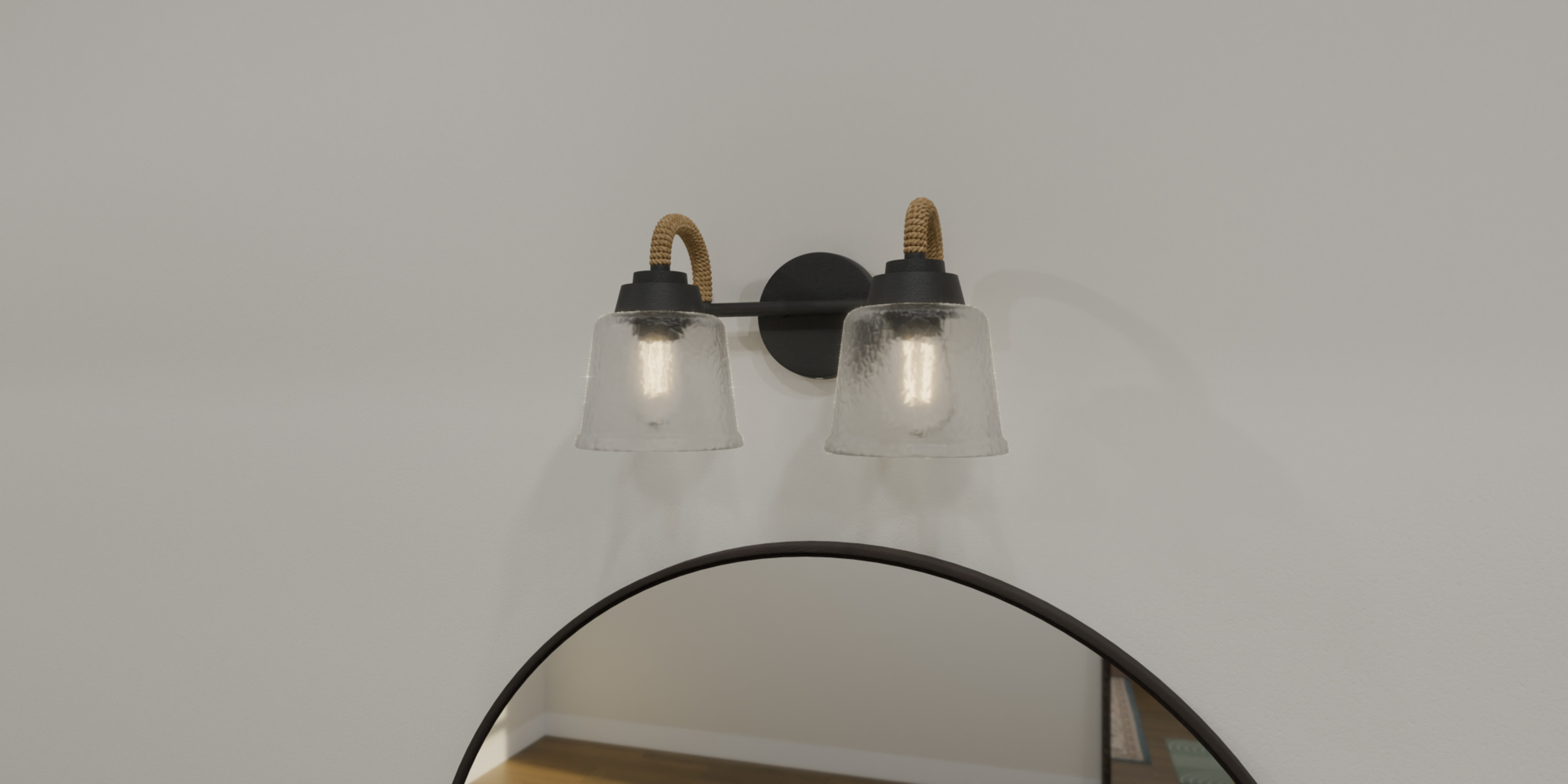 Item DescriptionUpgrade any bathroom vanity with the addition of Seabreeze. This coastal-inspired bath light collection features clear hammered glass shades and a smooth finish. A natural looking arm takes the place of traditional metal, adding a nautical feel. Install Seabreeze with shades facing upwards or downwards, whichever best suits your unique space.