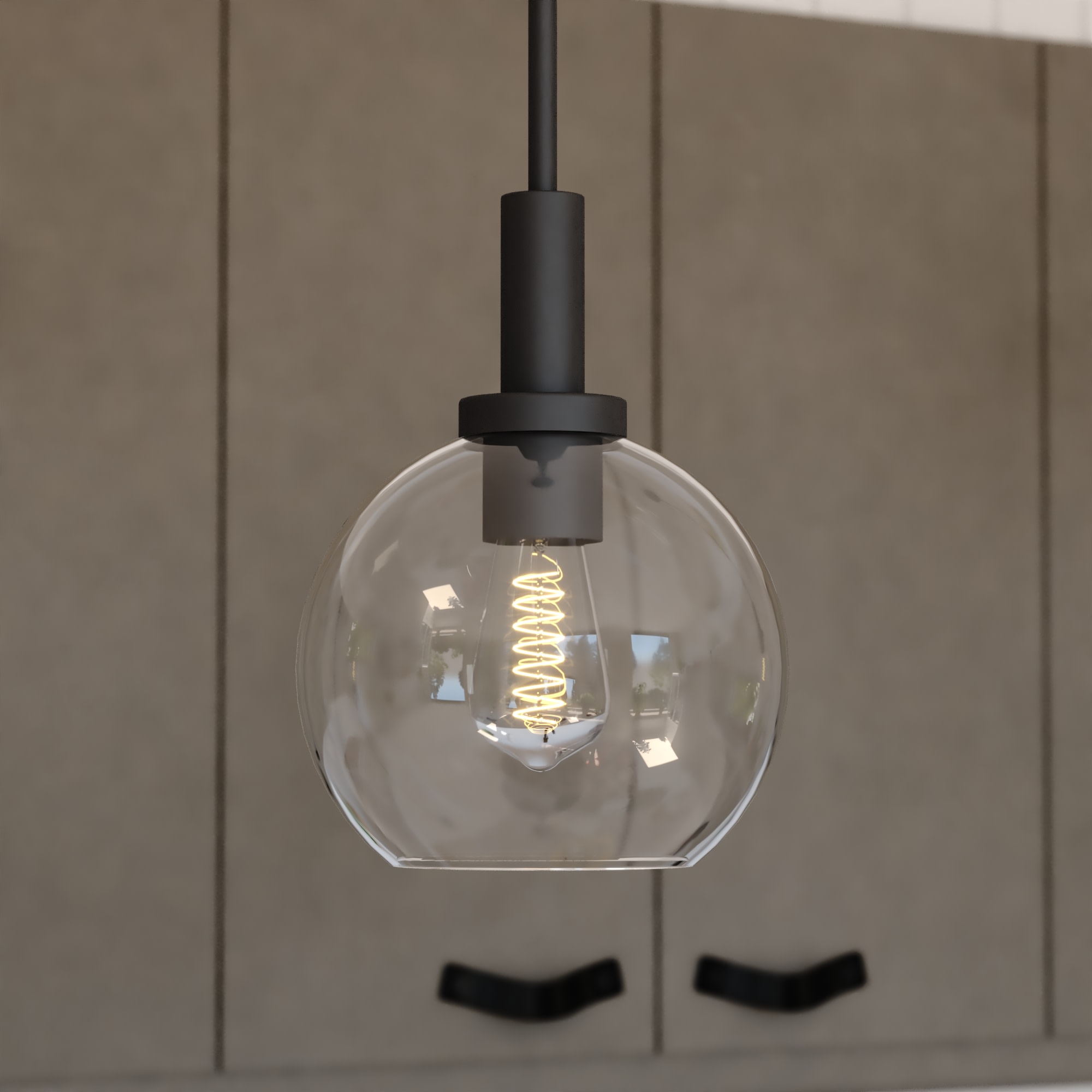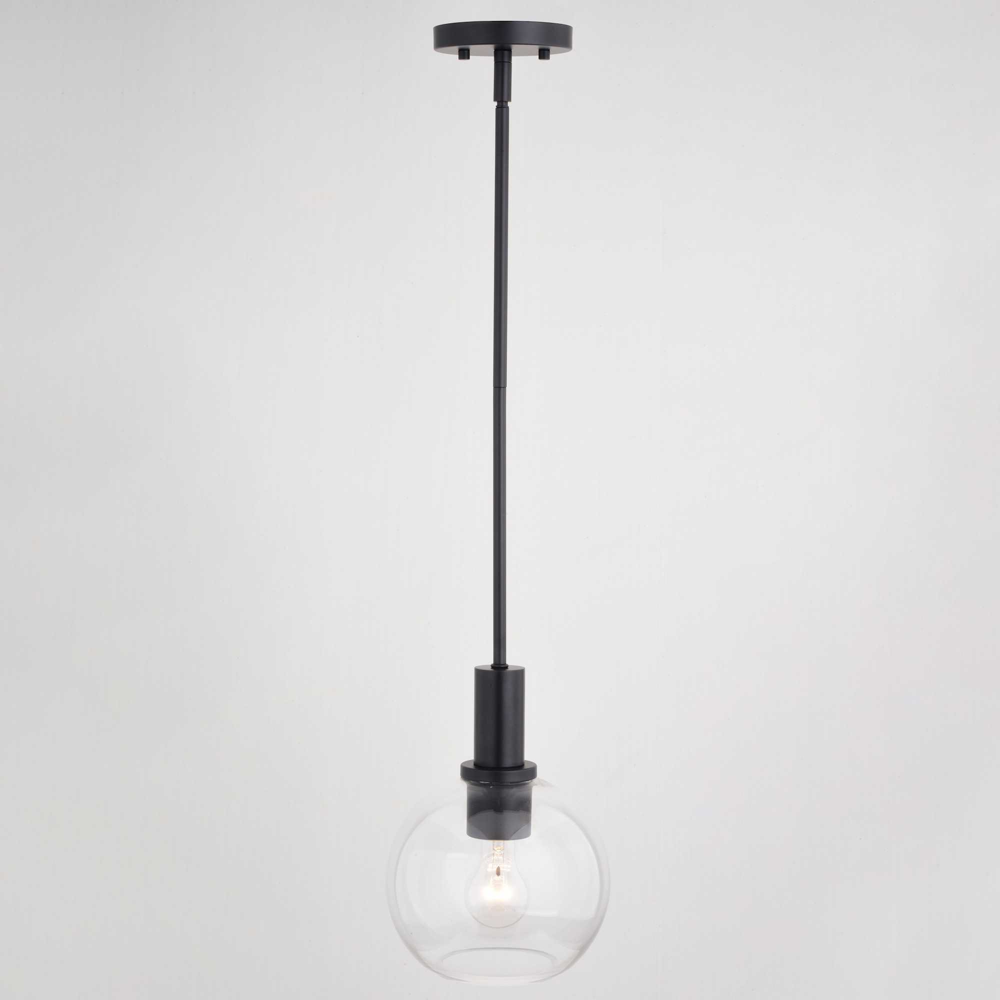 Item DescriptionThe Marshall collection is transitional style with a contemporary flair at a competitive price. A stately central column supports a clear glass globe for the perfect balance of dark versus light. Height is adjustable with the included down rods; compatible with sloped ceilings. Install this mini pendant individually or in a group; ideal for kitchens, dining areas, or bar areas.