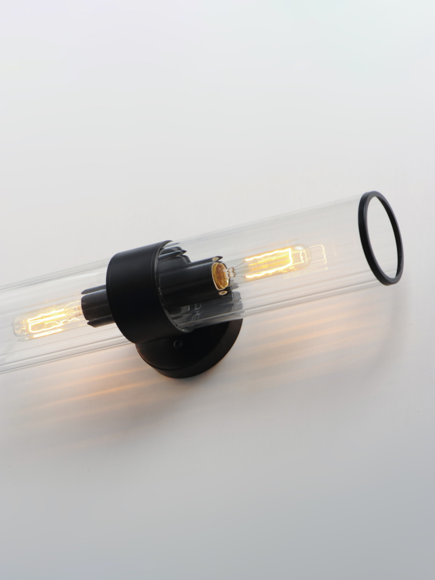 - Includes a clear ribbed glass shade