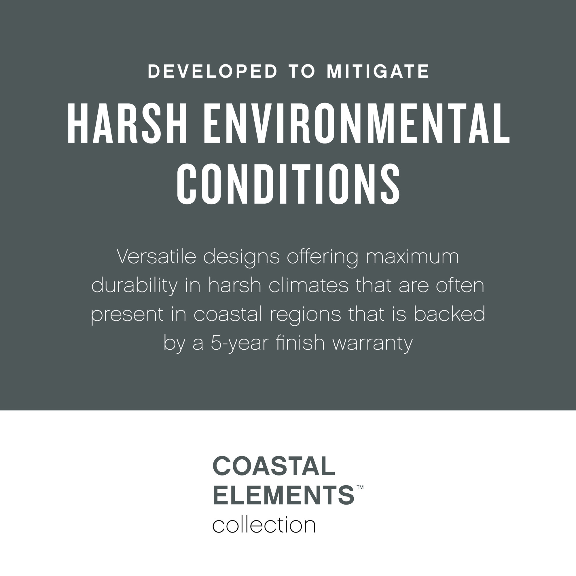 The Coastal Elements Collection offers versatile designs, constructed of composite materials and coated with anti-fading finishes, for maximum durability in harsh climates.