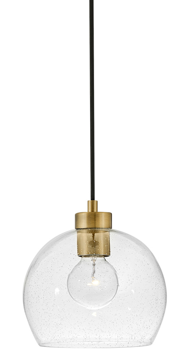 Item DescriptionYour room will get rave reviews thanks to Rumi. This modern, art-forward 3-light pendant captivates with a trio of clear seedy glass globes suspended from sleek black cords. A Lacquered Brass finish is the perfect finishing touch. Rumi will add a thrill to airy and cozy spaces alike, thanks to its slim, cord-hung design and adjustable height.