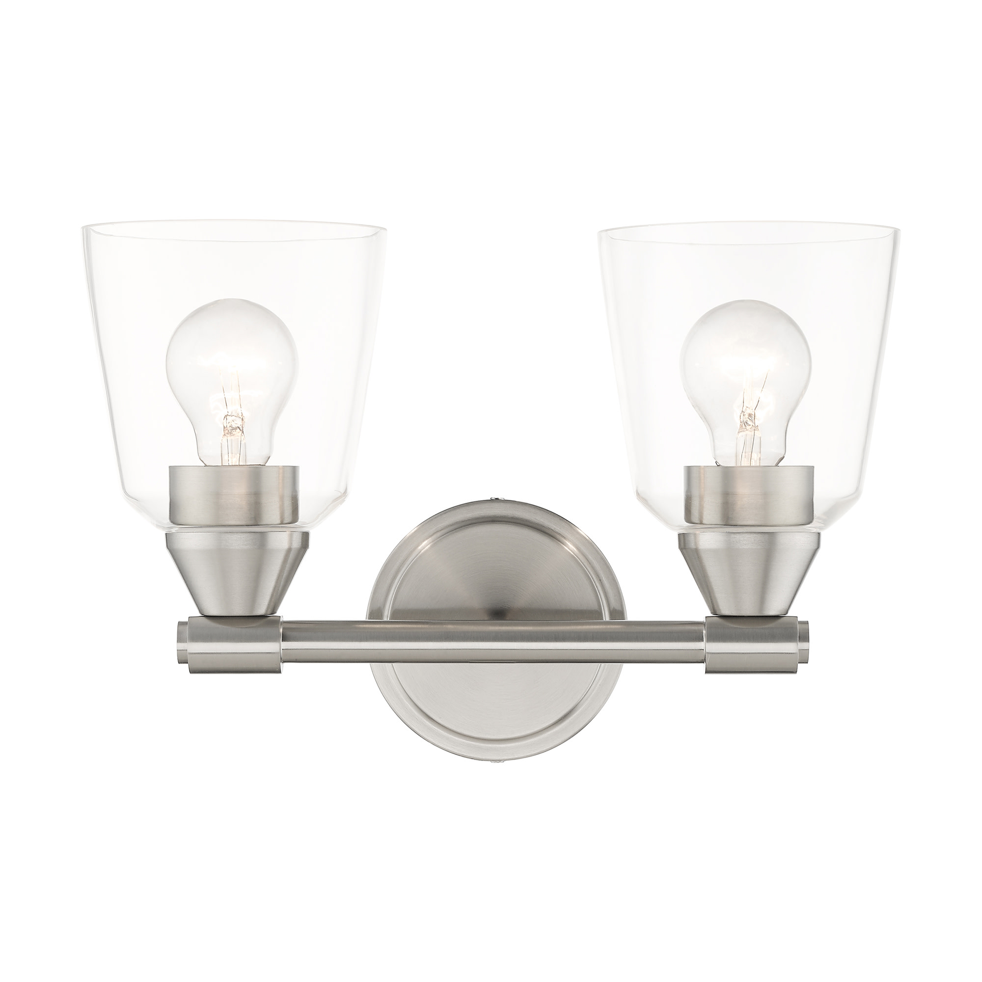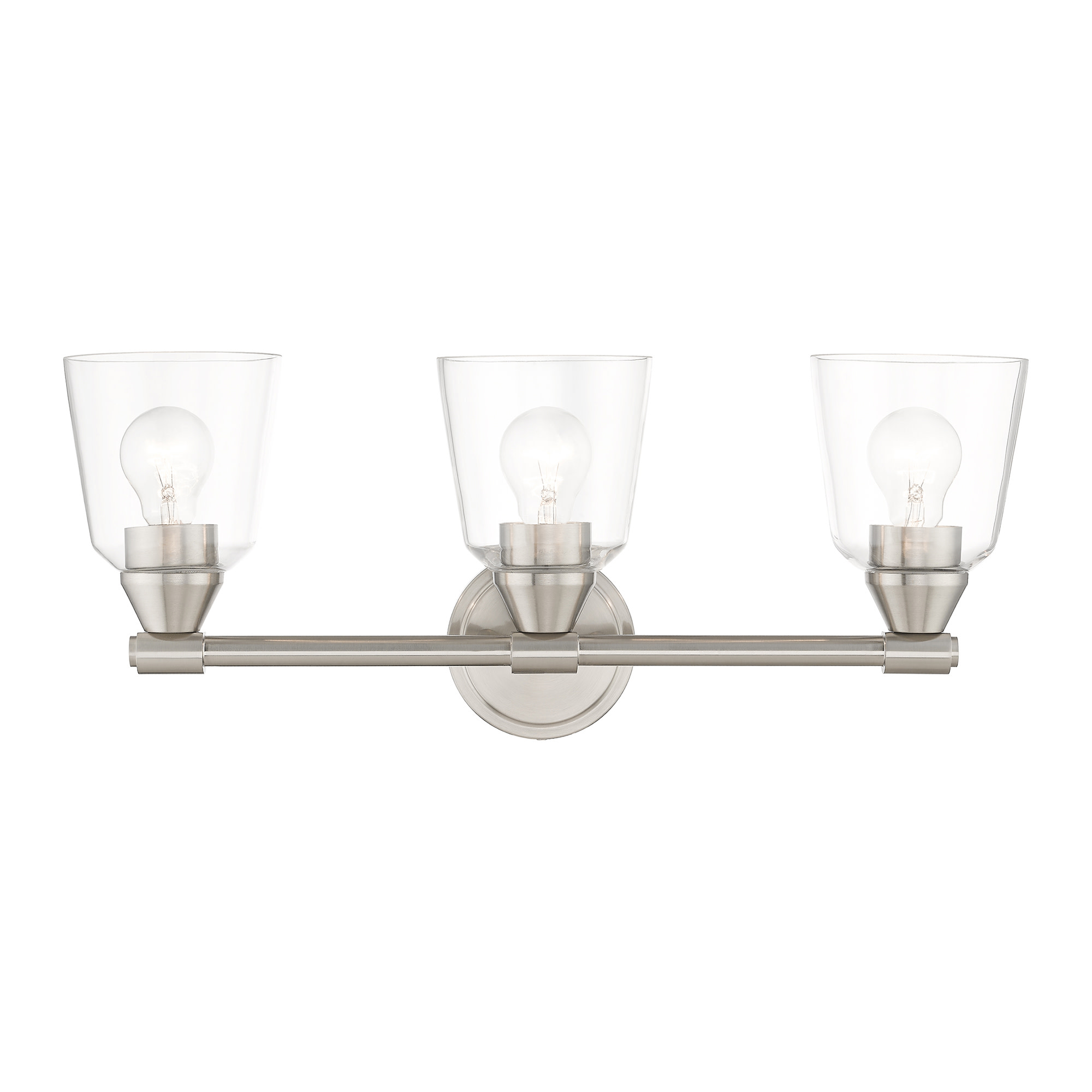 Item DescriptionAdd glamour and luxury to any bathroom with the Ansley vanity light collection. With a clean finish and sparkling clear glass shades, this bath light collection is truly dressed to impress. Ansley is available as a two, three, or four light, allowing you to easily customize to your desired setting.