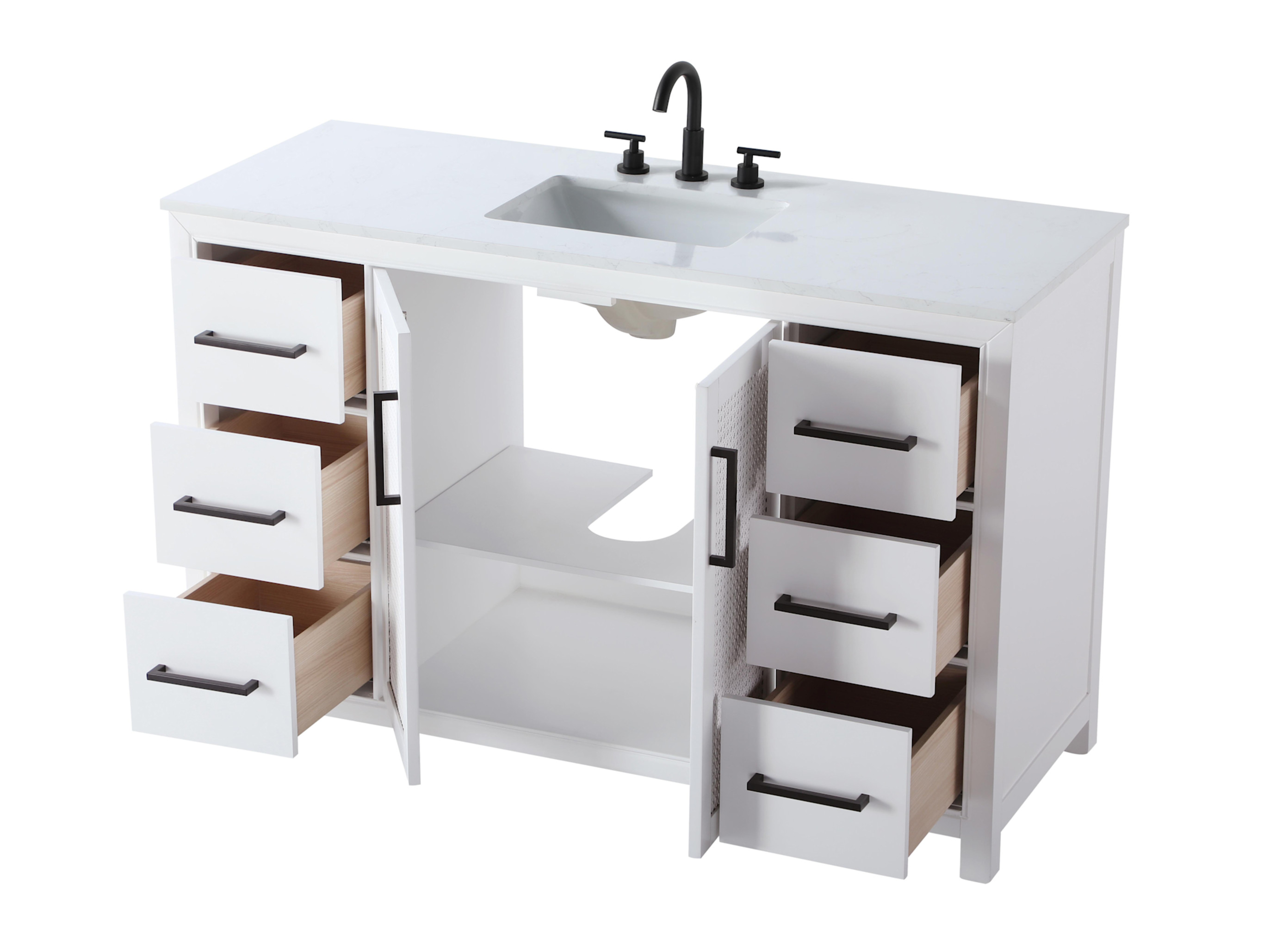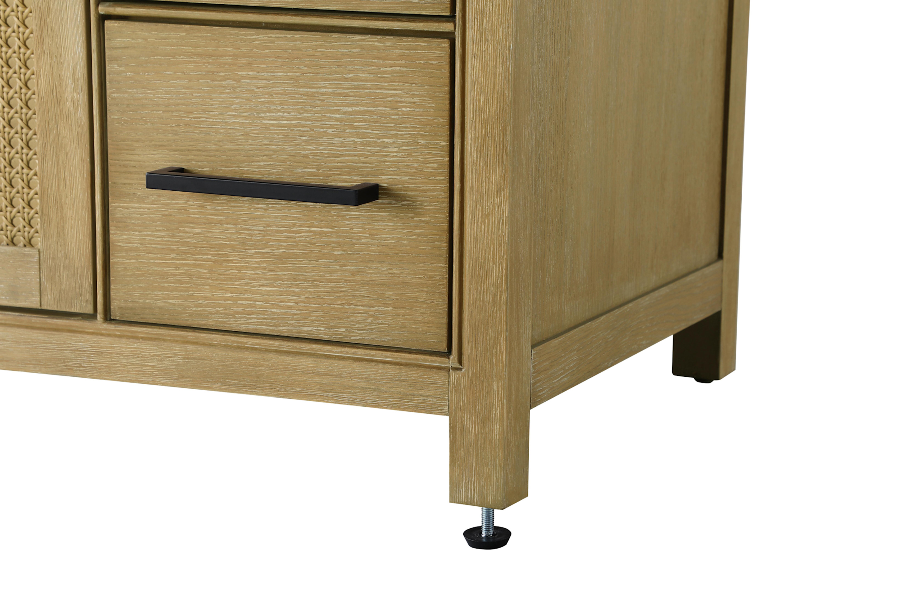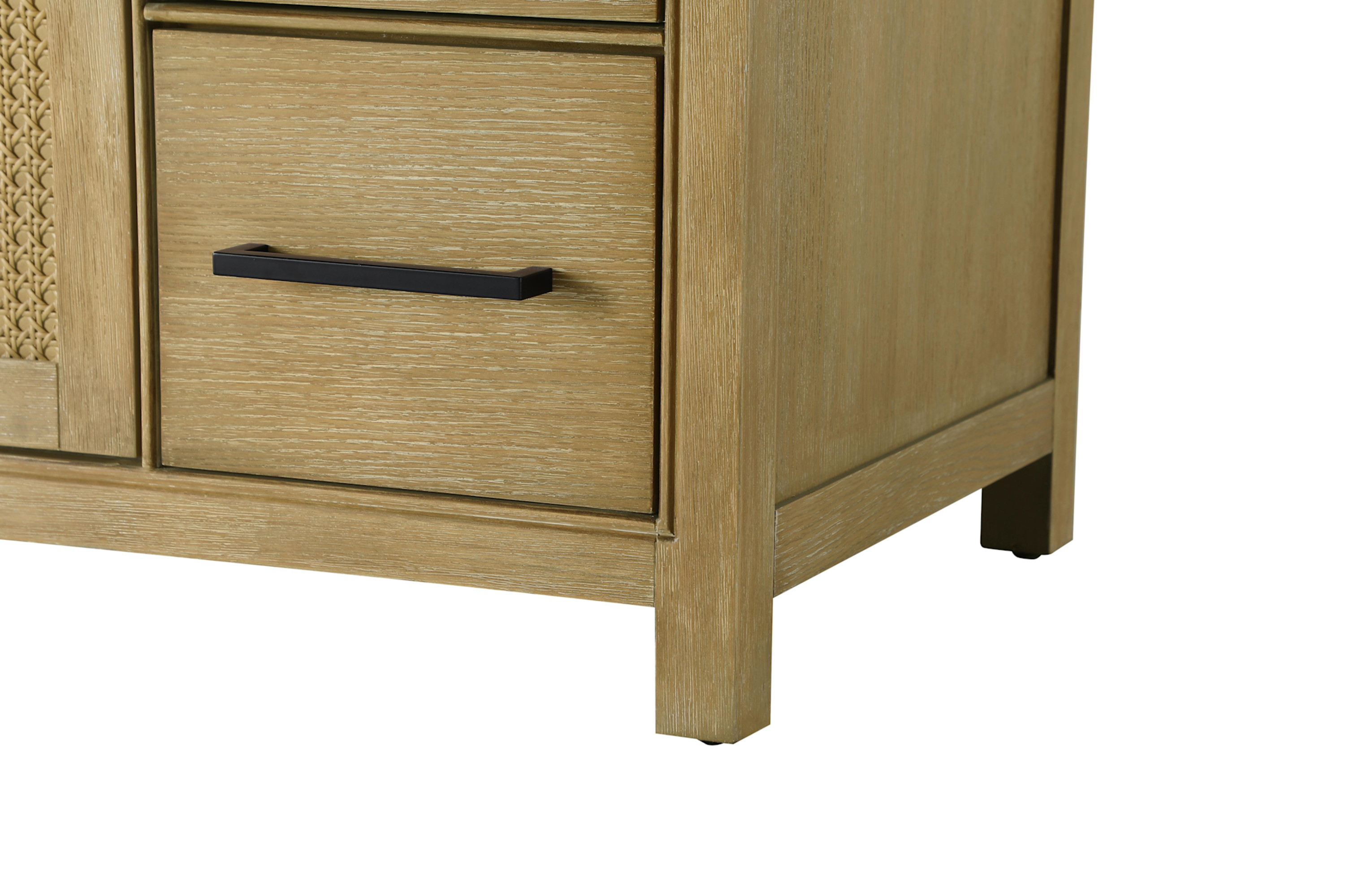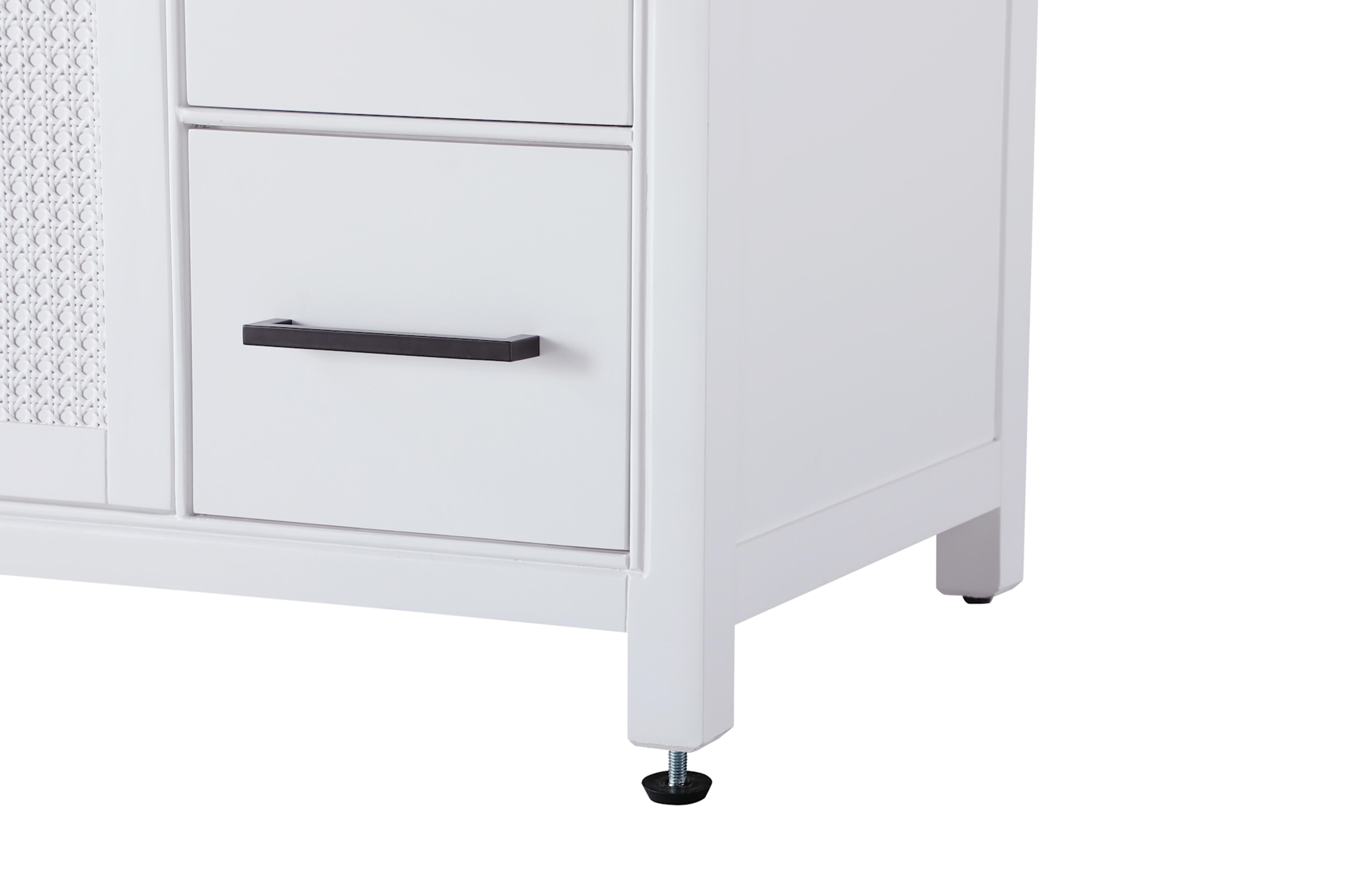 Item DescriptionPerfect for those with an eye for detail and quality, this transitional vanity blends modern design with timeless elegance. Available in five stunning finish options bring warmth and character to any bathroom. The caning design on the shaker-style door panels adds texture and a touch of refinement, while the soft-closing doors and drawers ensure smooth, quiet functionality. Topped with an engineered marble countertop, the vanity offers both luxury and practicality, complete with pre-drilled faucet holes for customization. A concealed overflow and U-shaped shelf for plumbing make installation effortless, and the slender metal pulls provide a sleek contrast.