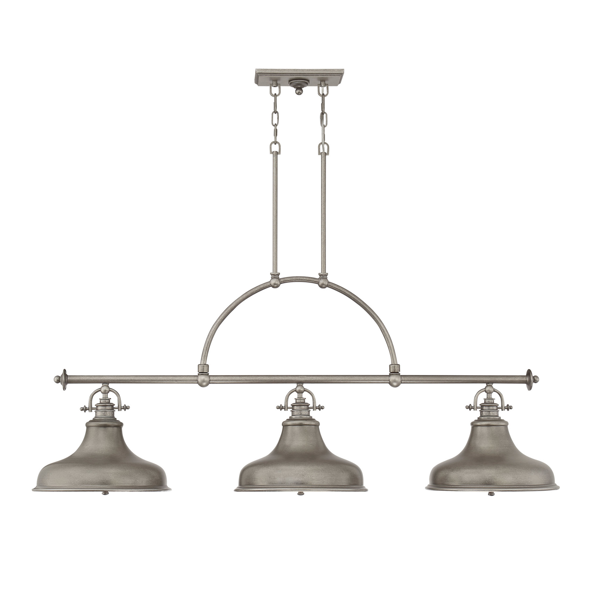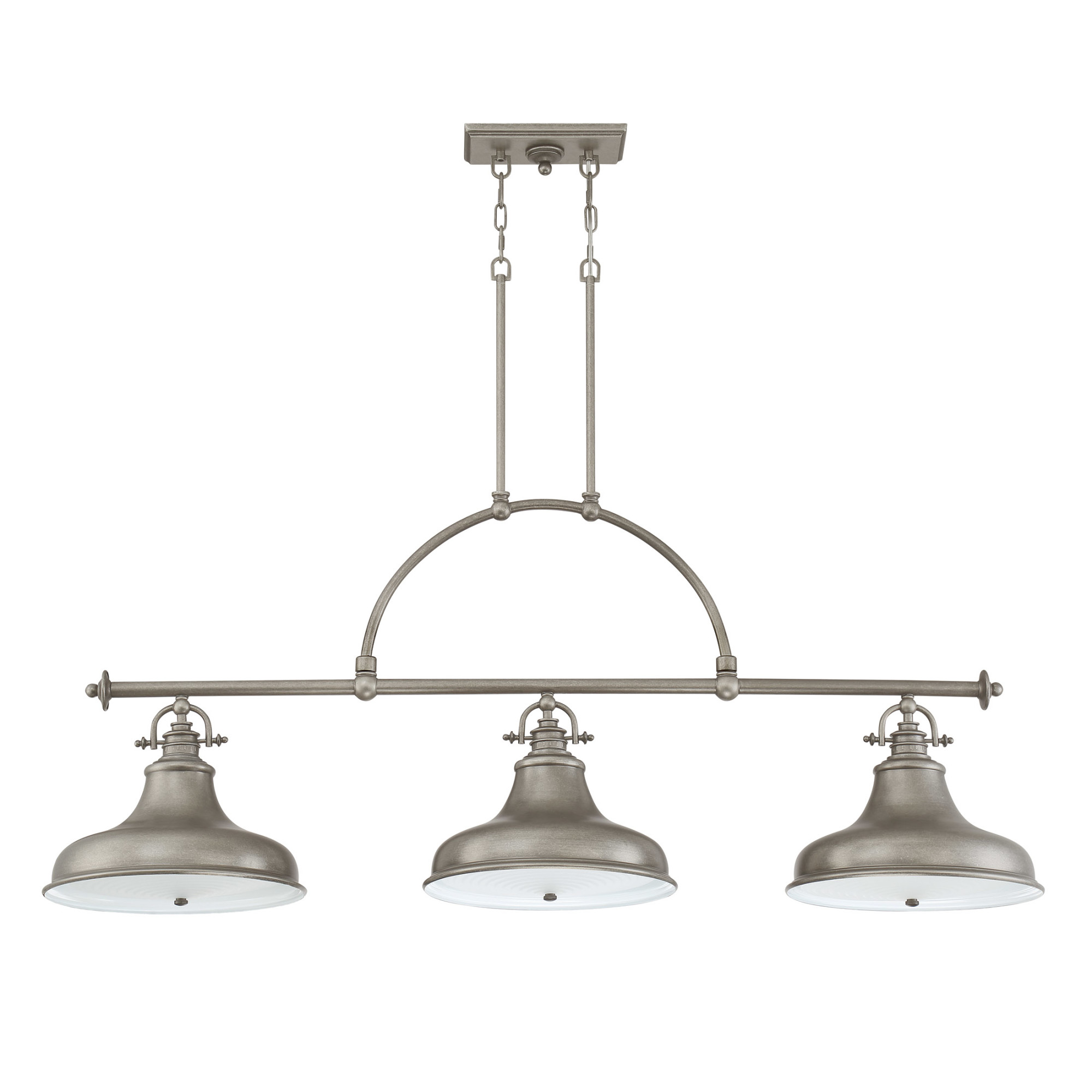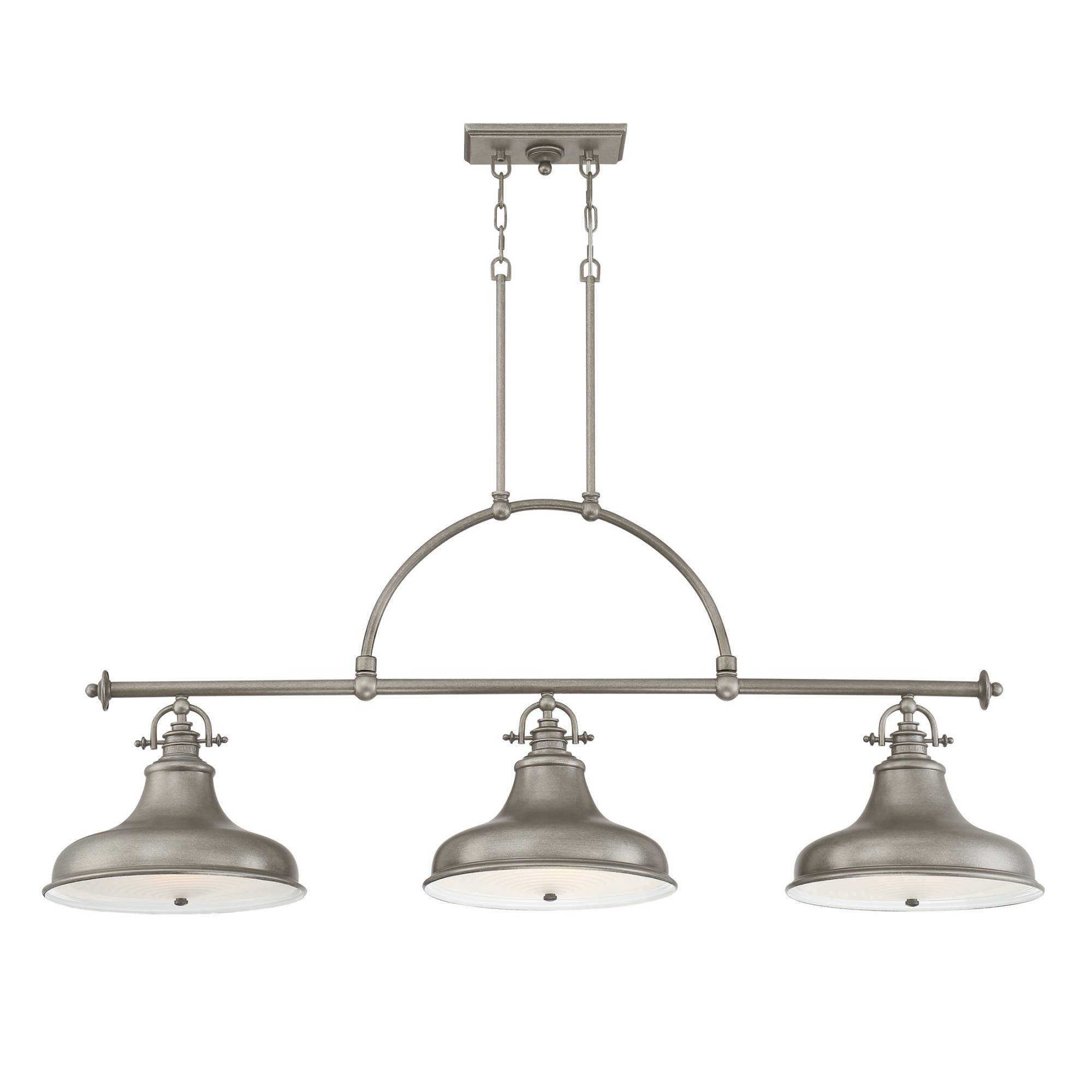 Item DescriptionThis metal shaded fixture is an elegant nod to the past. The classic Americana styling adds a nostalgic flair to your home. When hung over a kitchen island or dinette table it provides ample lighting for all your daily tasks. It is available in four fabulous finishes, brushed nickel, imperial silver, Palladian bronze and distressed nickel.