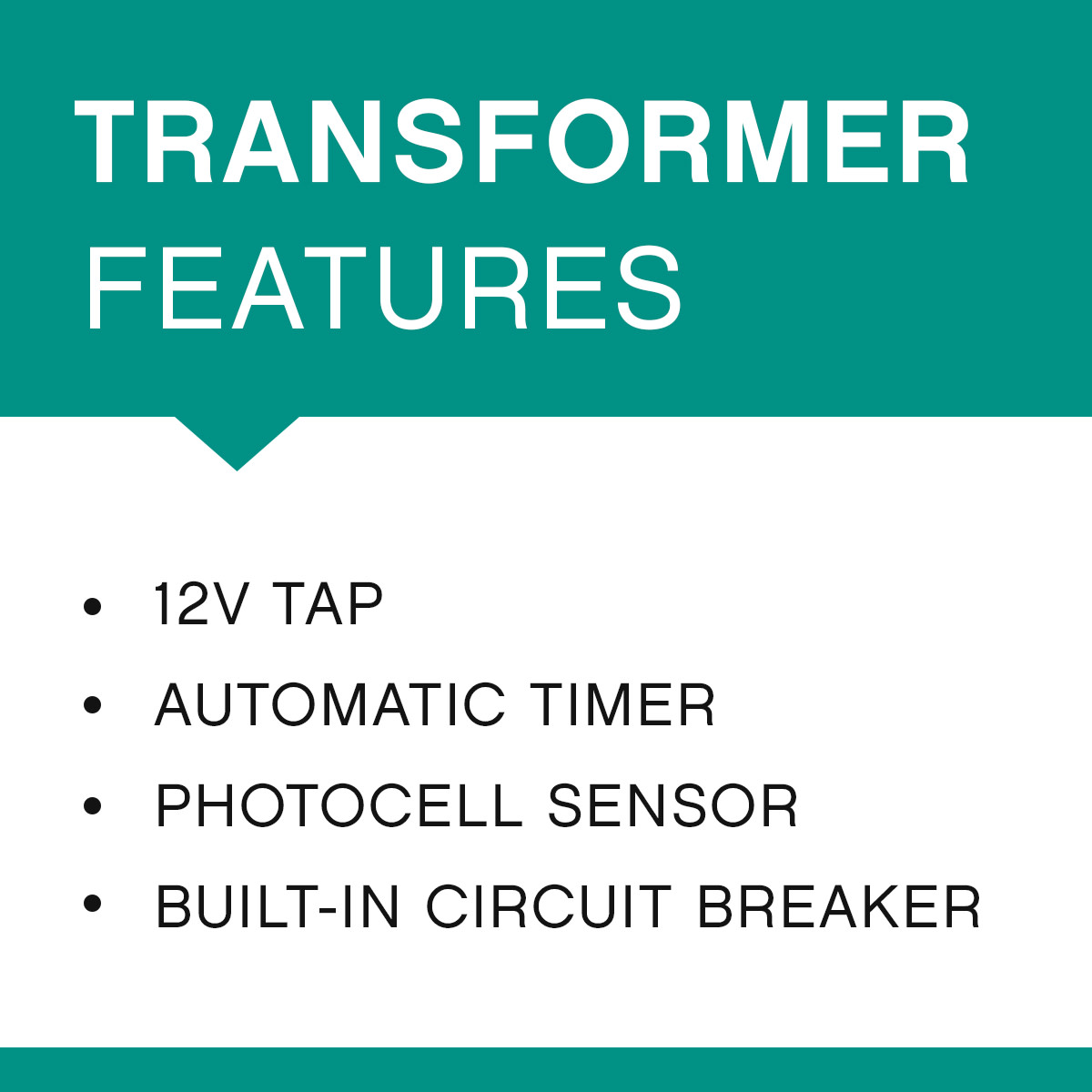 Item DescriptionThis 150 watt Standard Transformer features a 12v tap, automatic timer, and a photocell. *This cannot be used with a dimming switch*.
