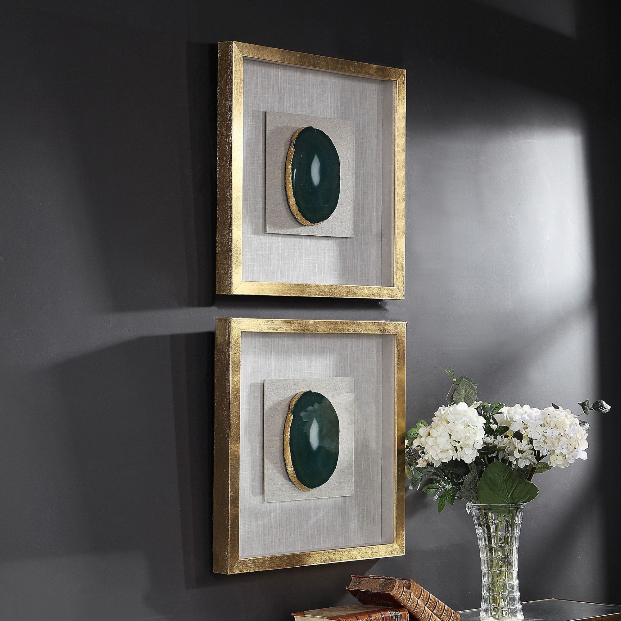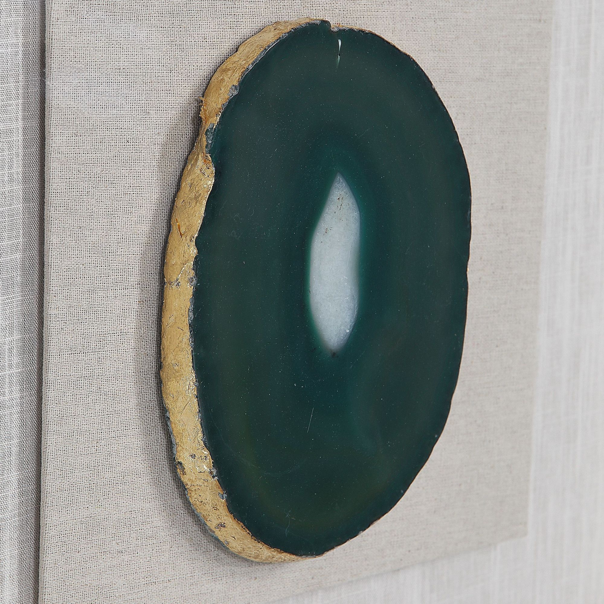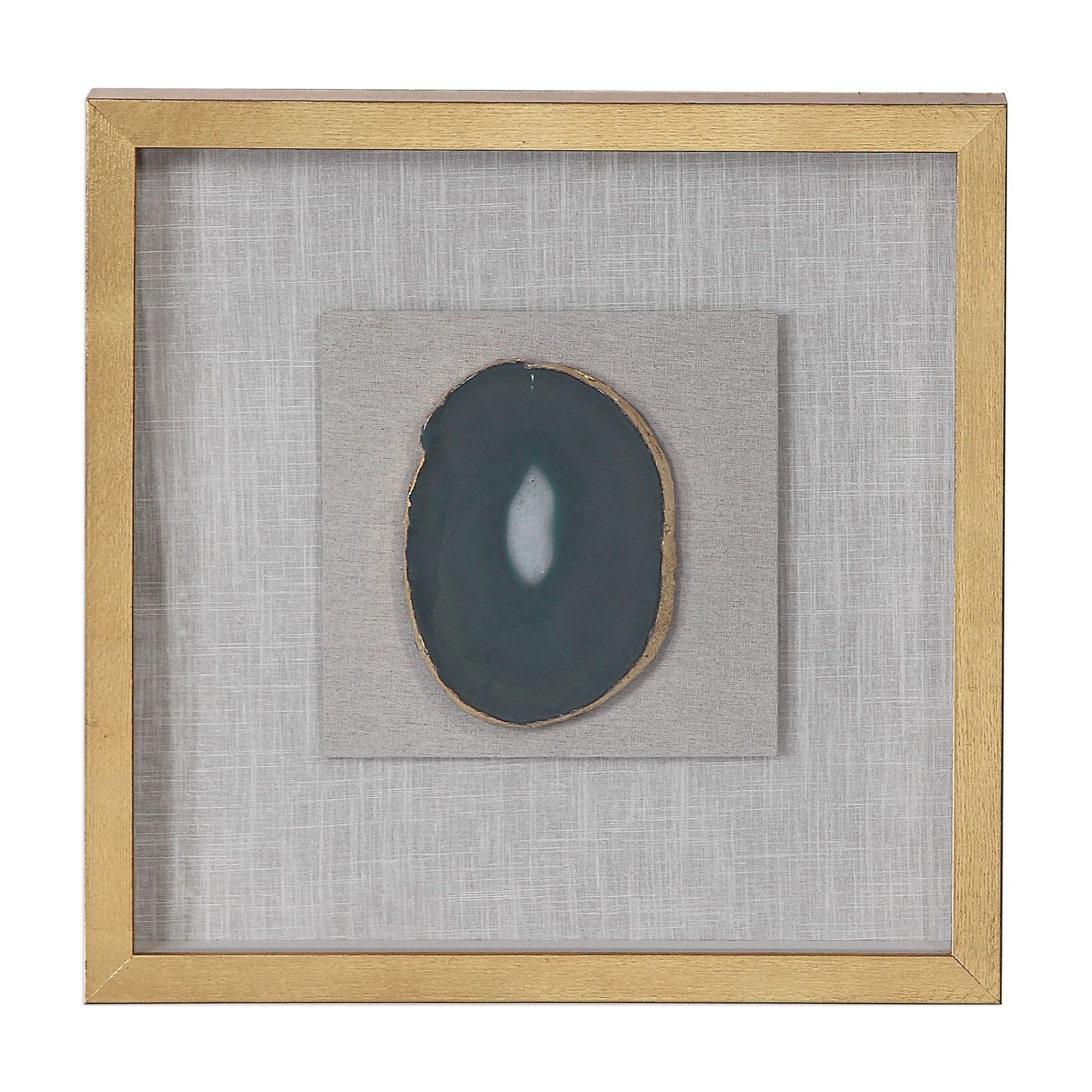 - A pine wood shadow box featuring a hand applied finish showcases a striking agate stone with amazing veining