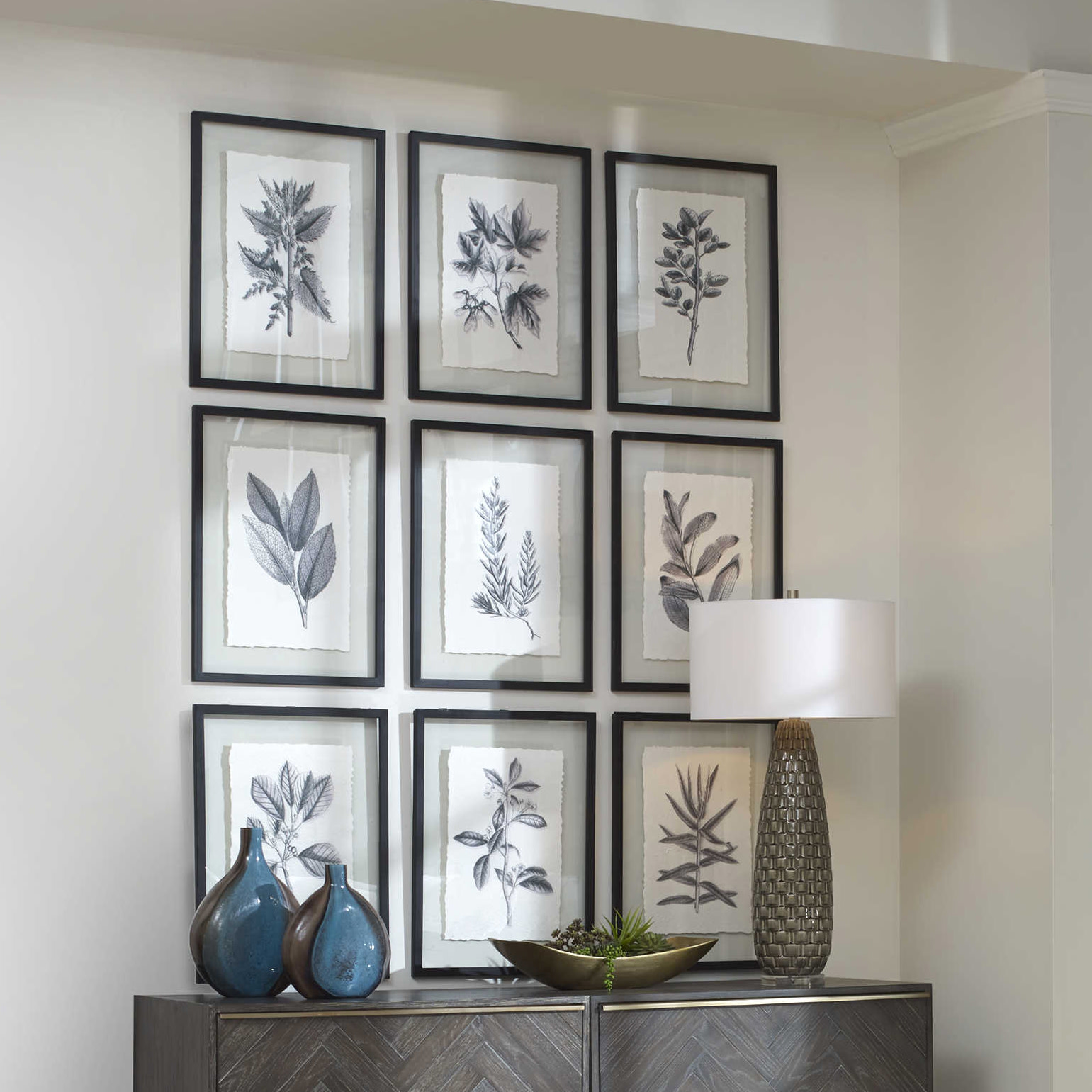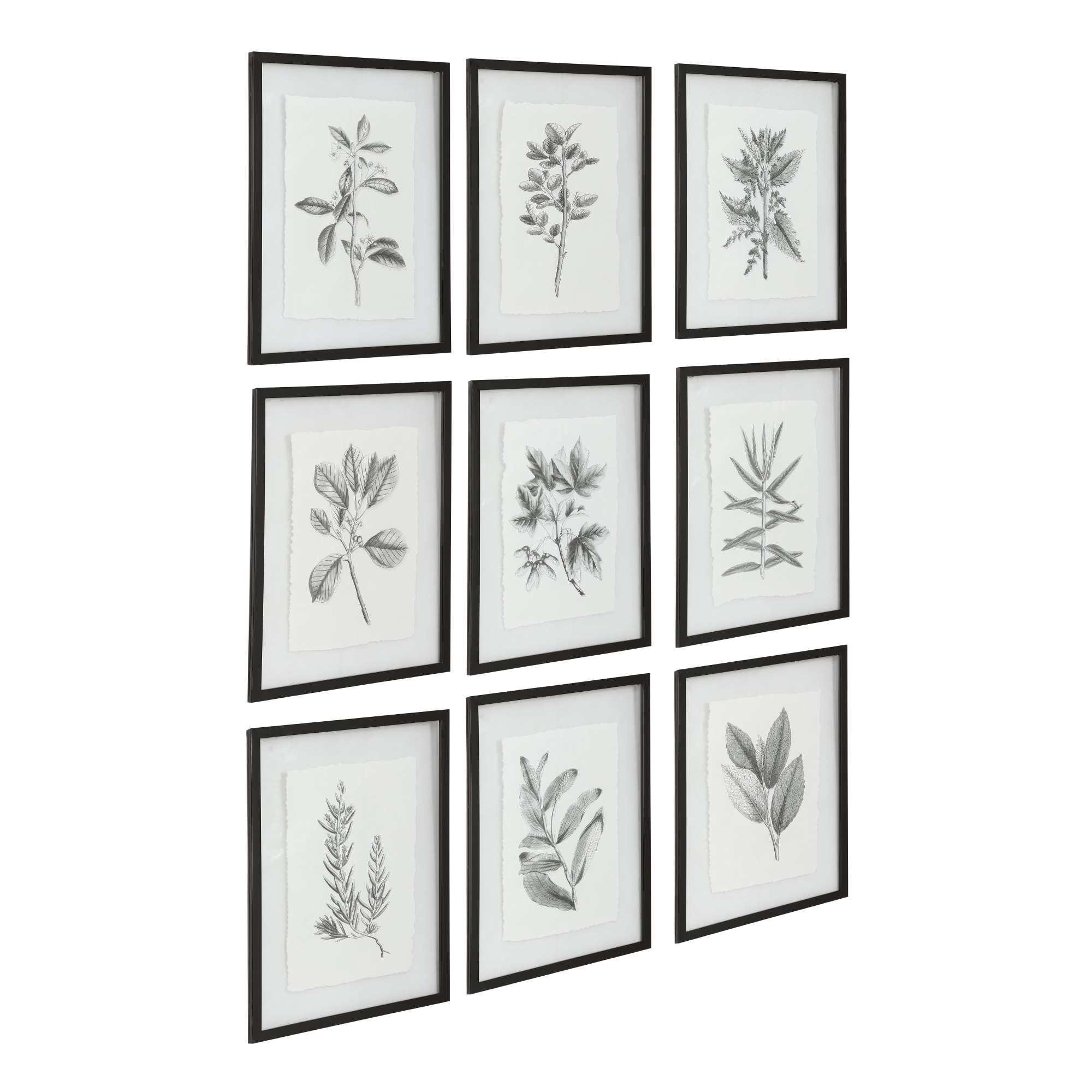 Item DescriptionA more modern take on classic botanical prints, this set of artwork showcases a classic black and white theme with deckled edges. Each print is placed under glass and accented by a petite matte black finished frame.