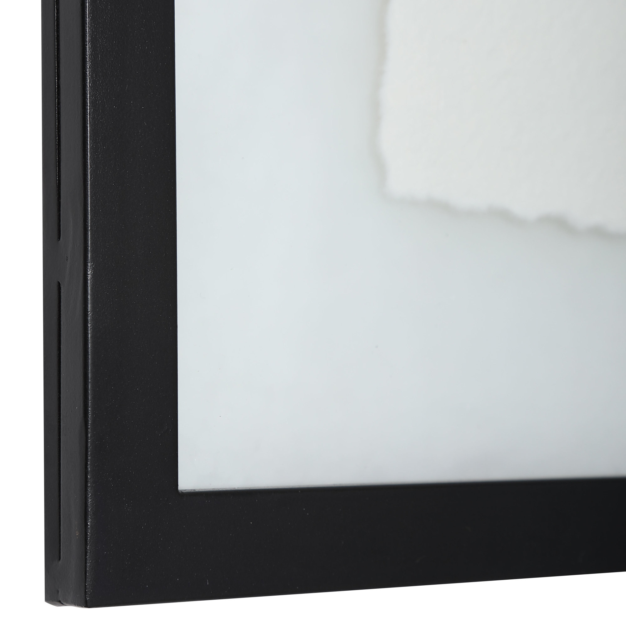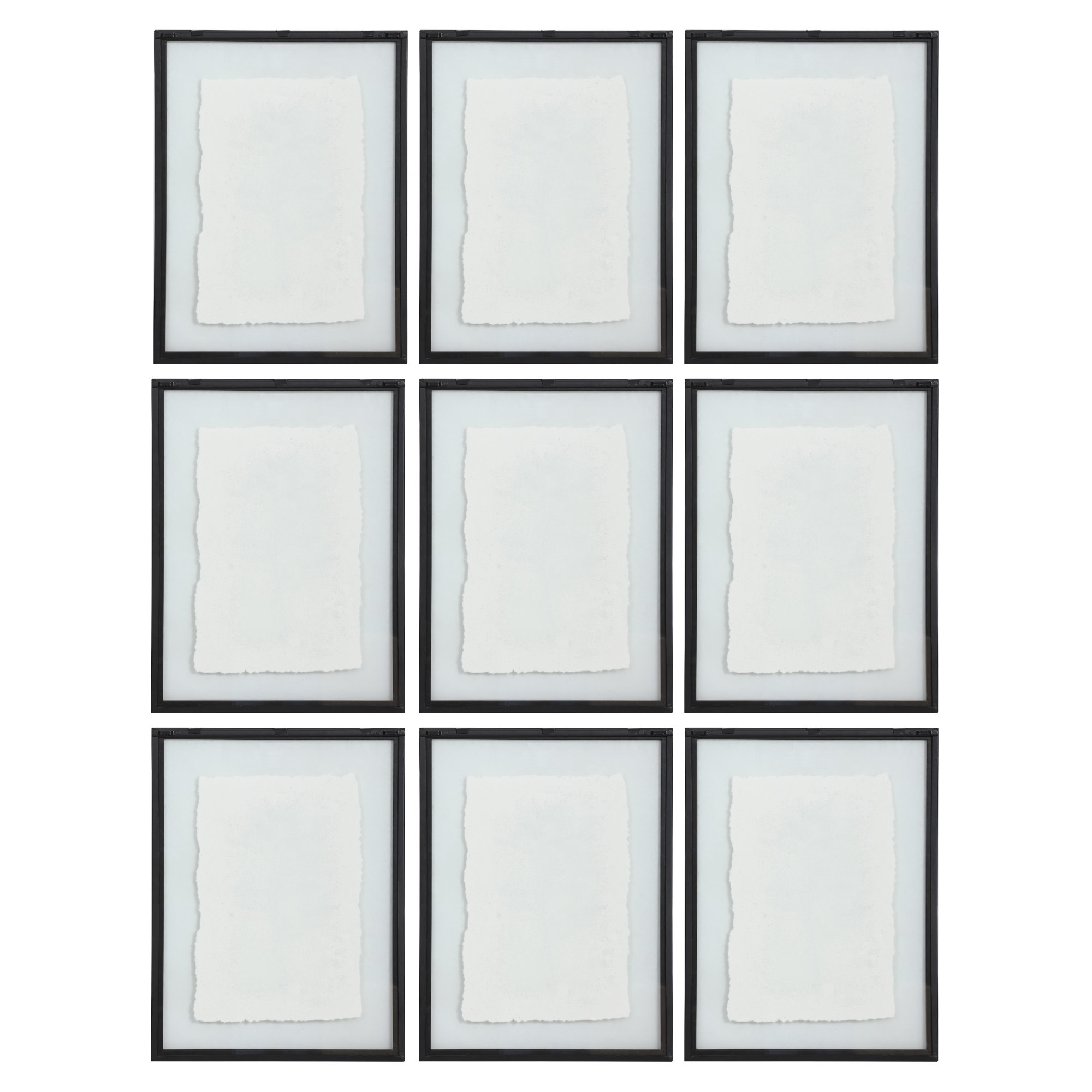 - Each print is placed under glass and accented by a petite matte black finished frame