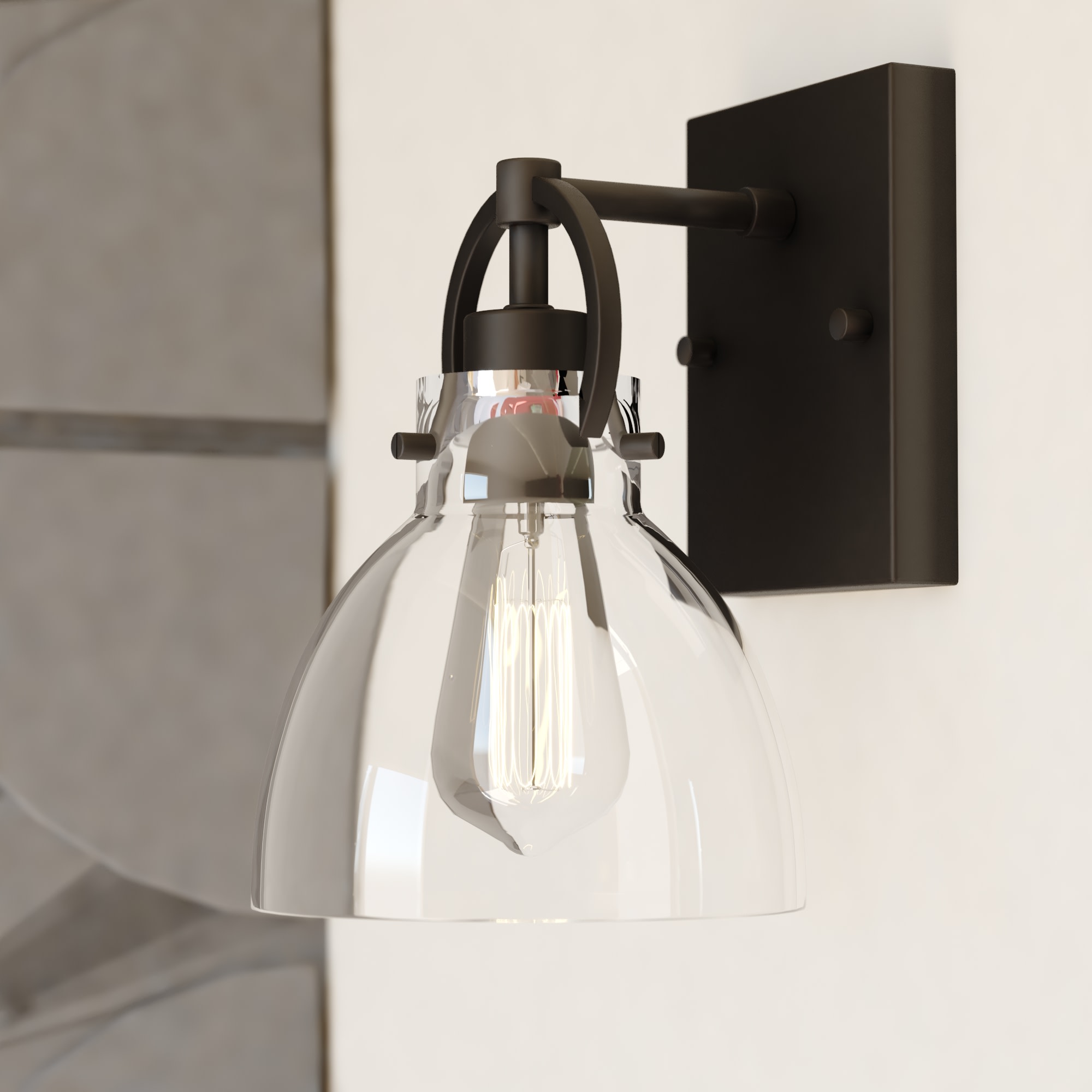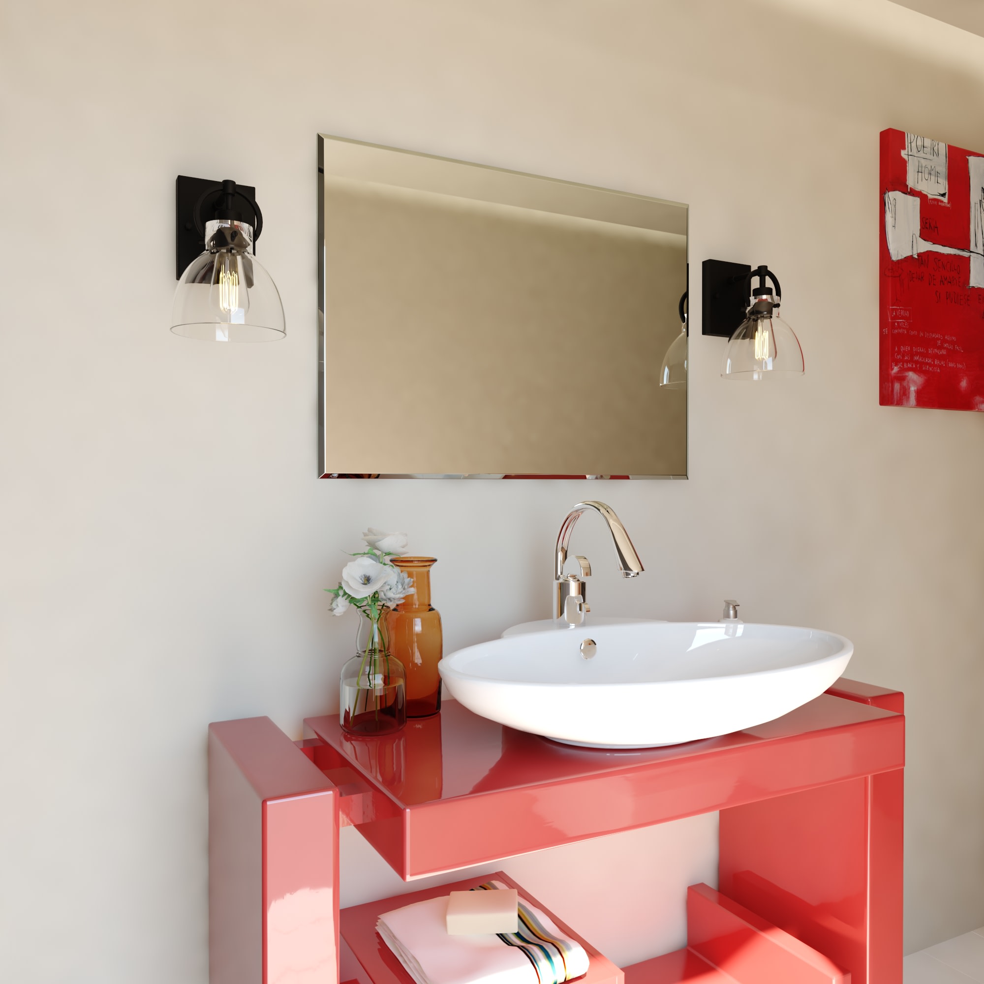 Item DescriptionClean and clear best depicts this contemporary collection called Ogden. Matte black hardware smartly adorns the clear glass shades. Small round handles casually hang from a horizontal support, while suspending the glass shades in perfect order. The large open styling allows each shade to emit the maximum light. This wall light is ideal in any bath, hallway, bedroom, or any other space where extra light is needed.