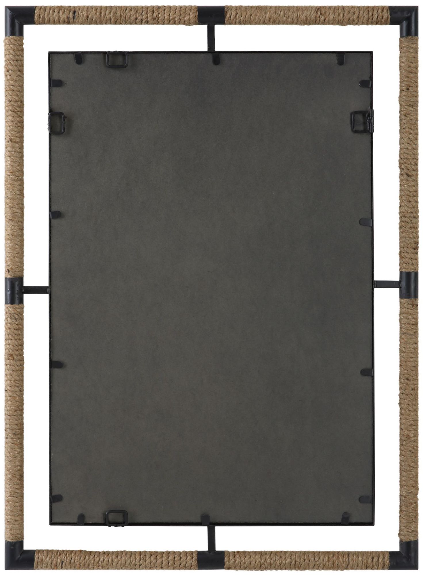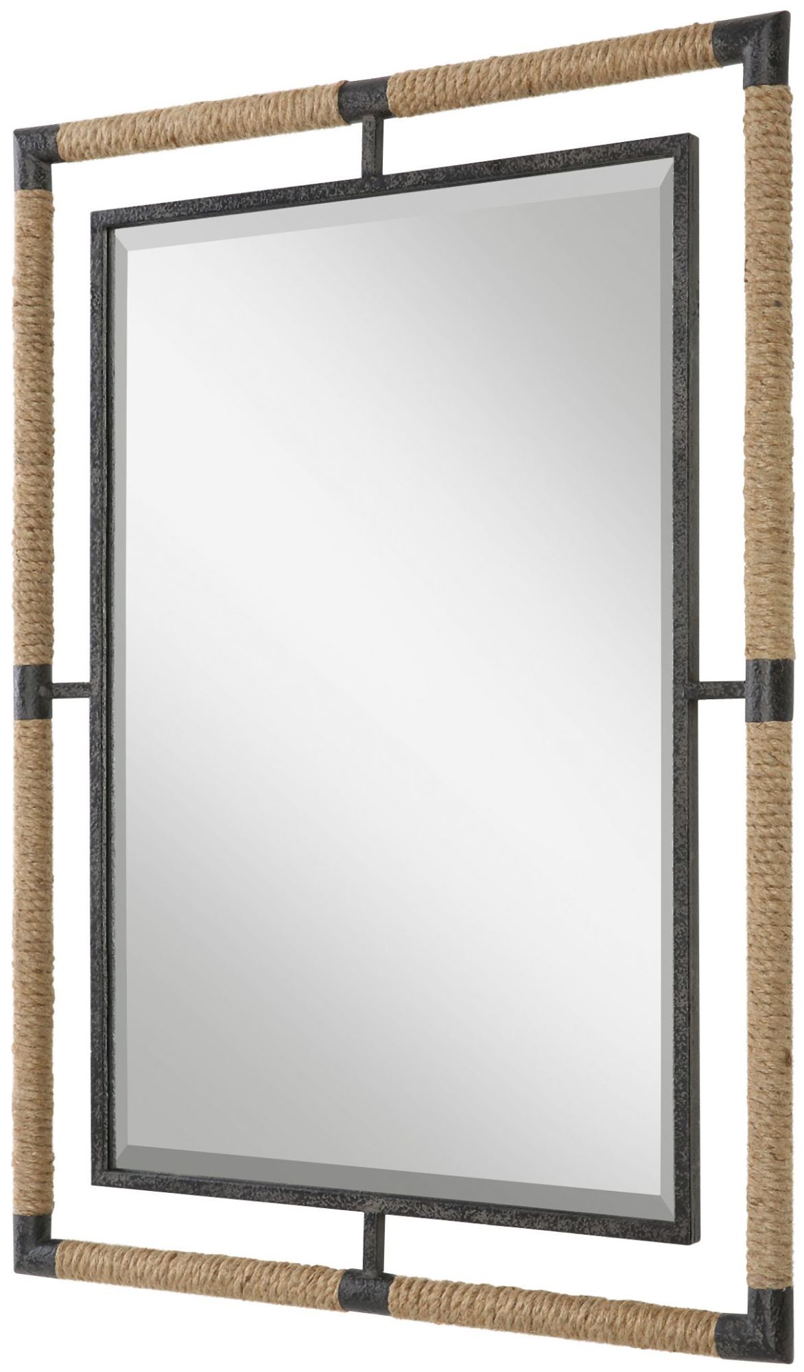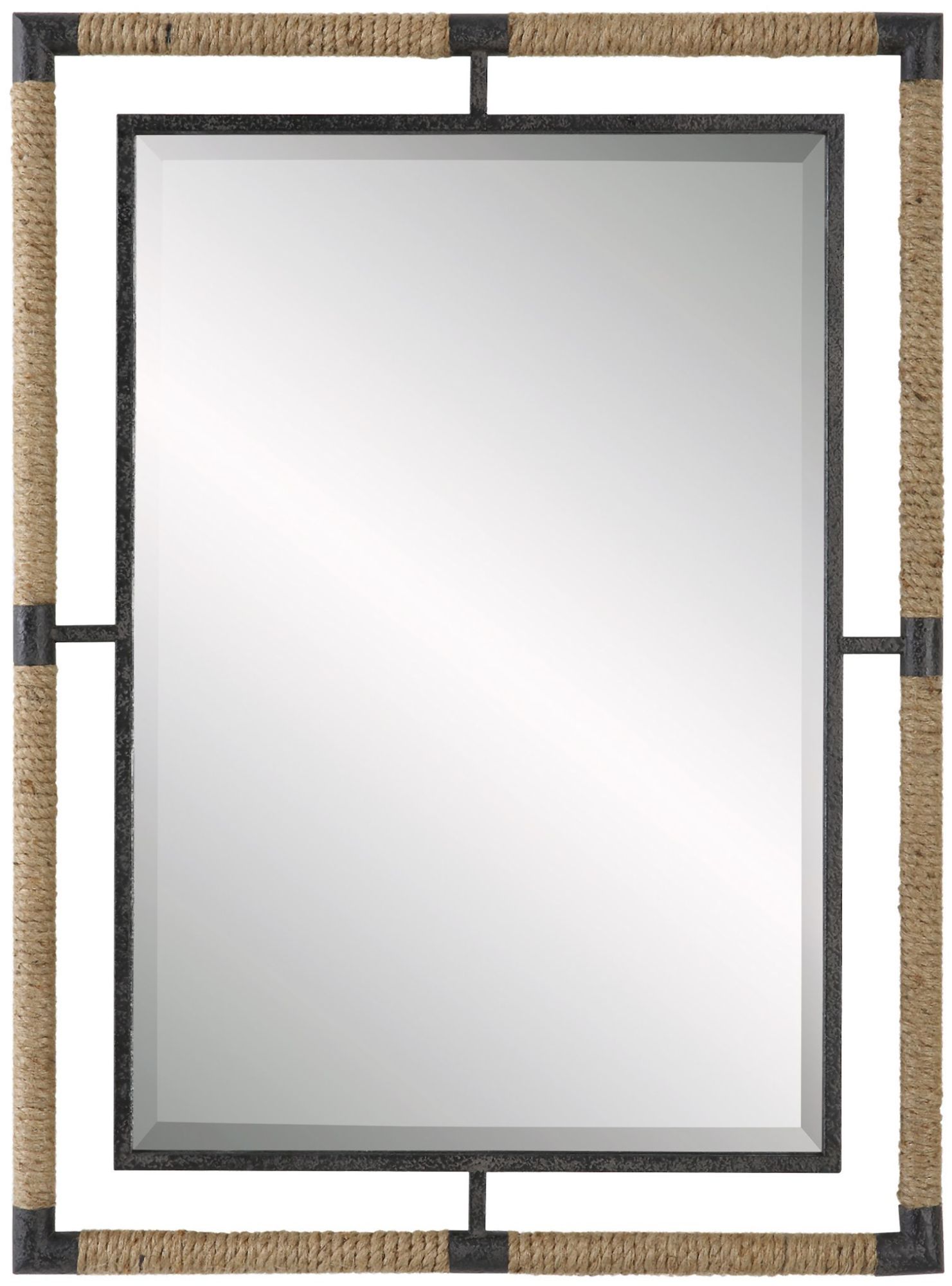 - This mirror's frame is constructed of iron with a gray finish