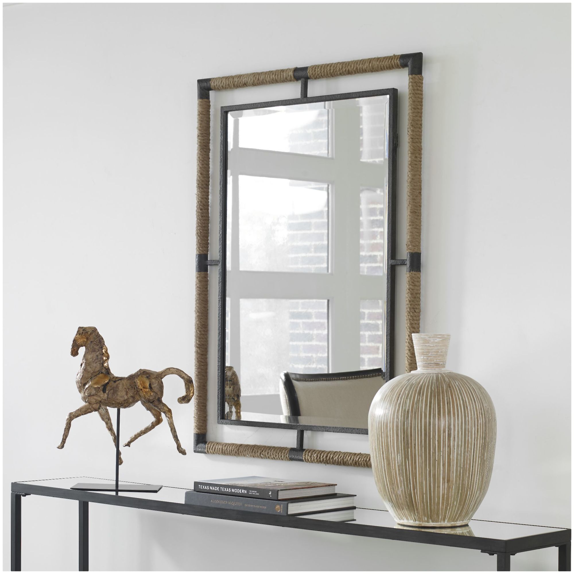 - The Melville collection mirror combines premium quality materials with unique high-style design