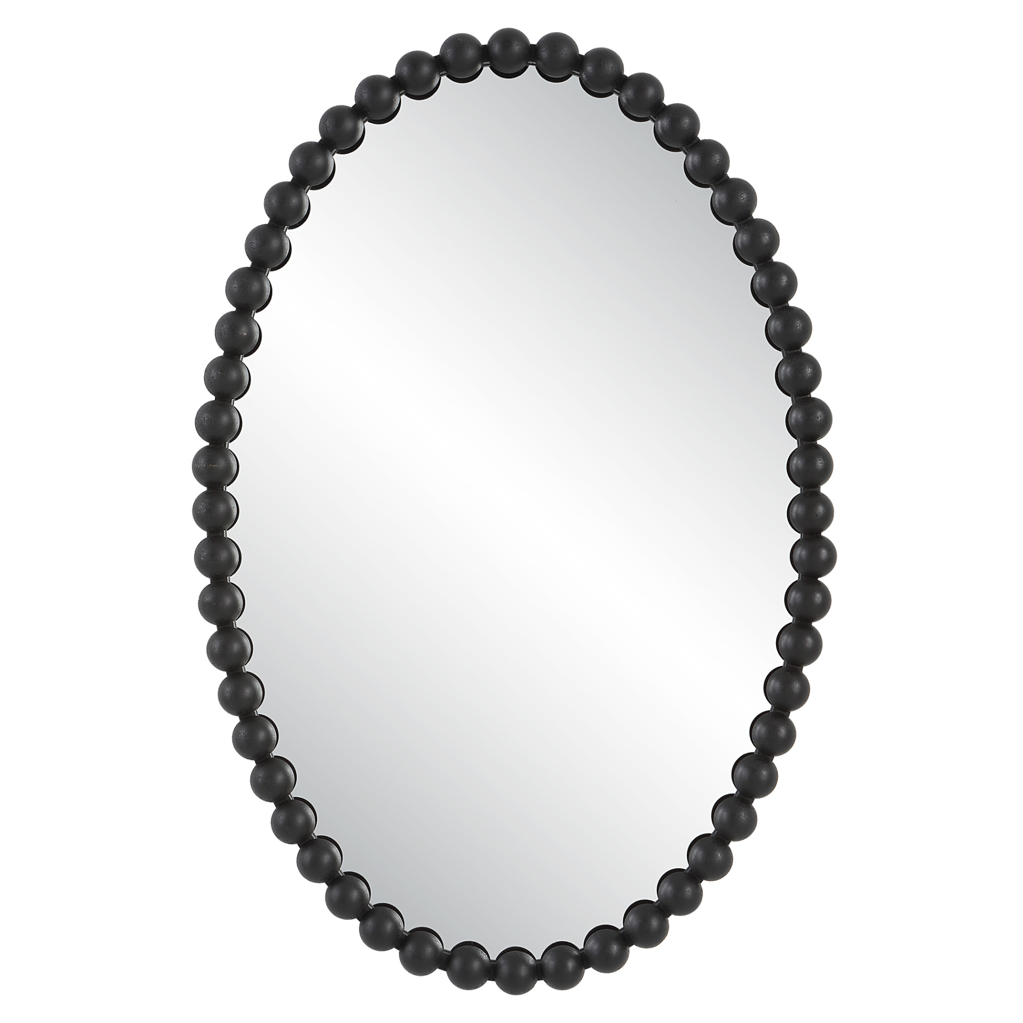 Item DescriptionThe Serna oval features an elegant curved iron frame with a beaded profile finished in a stylish matte black. May be hung horizontal or vertical.