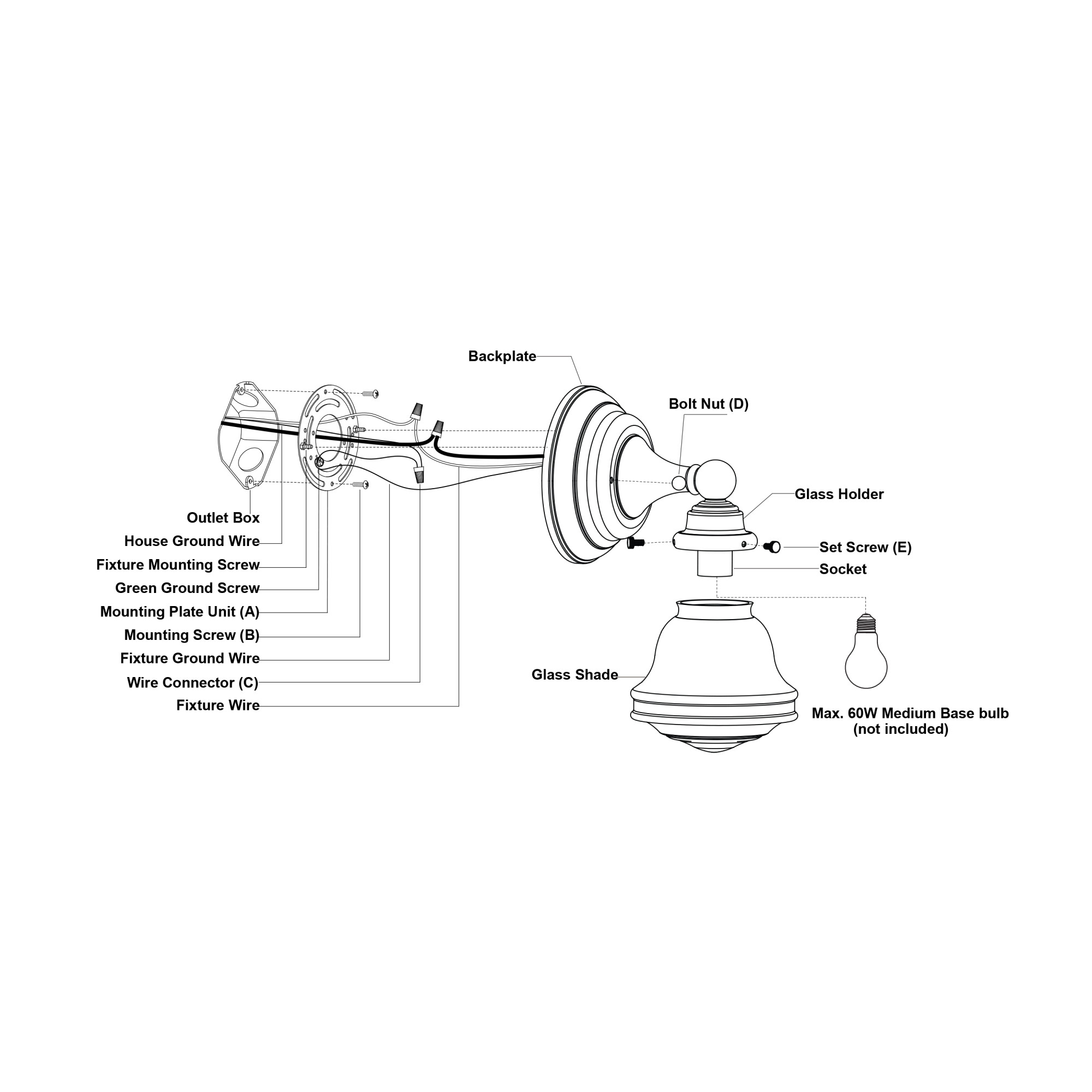 - Requires (1) medium (E26) 60 watt bulb (not included)