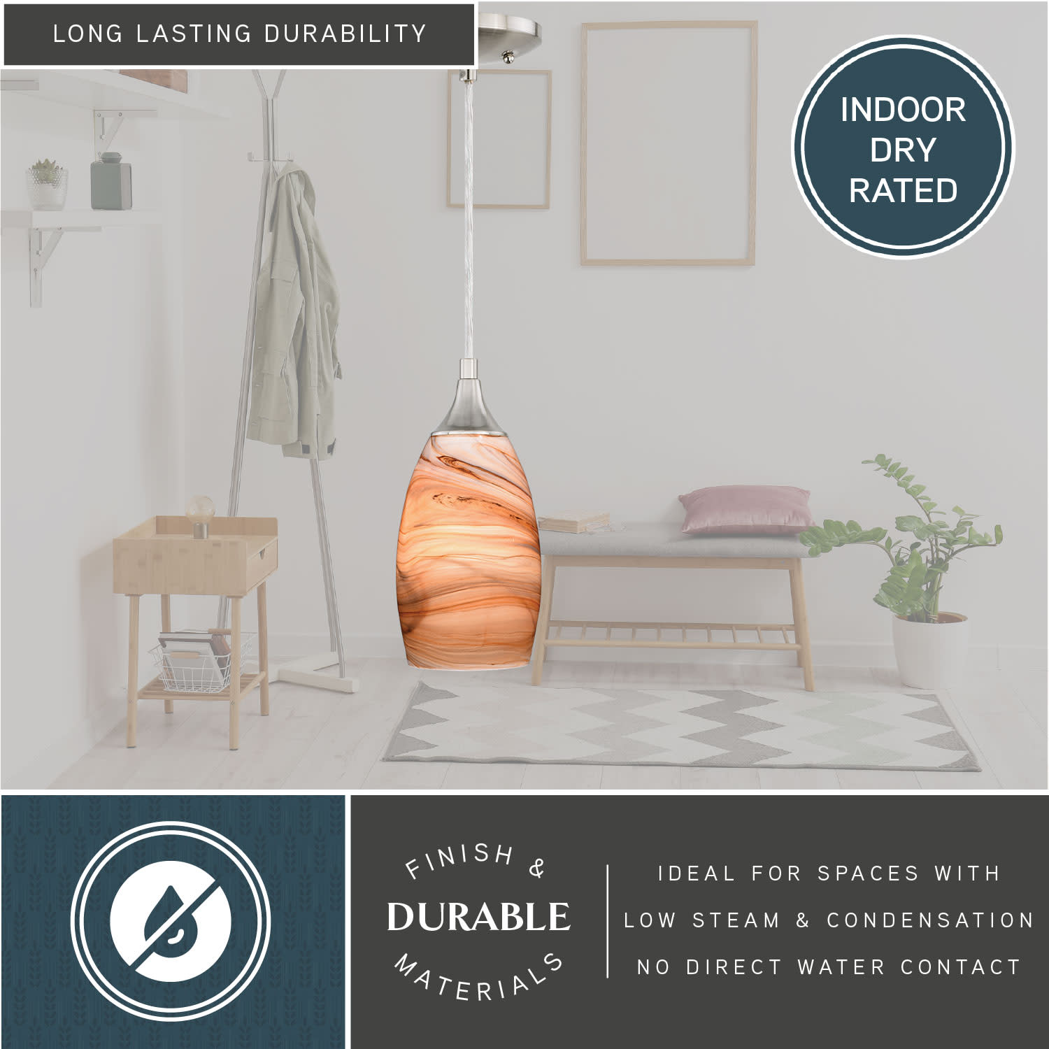 - Designed to cast a soft ambient light over a wide area