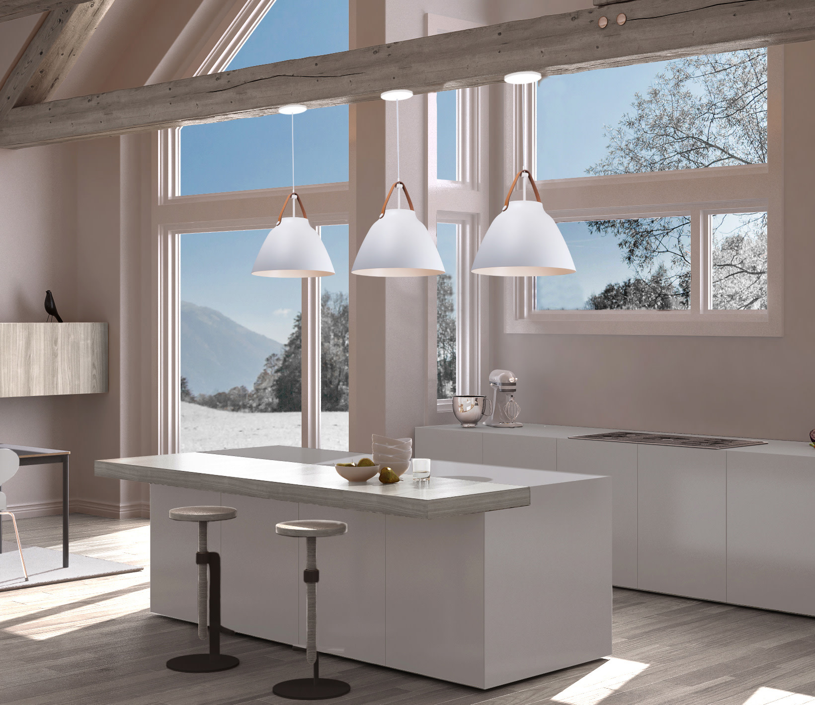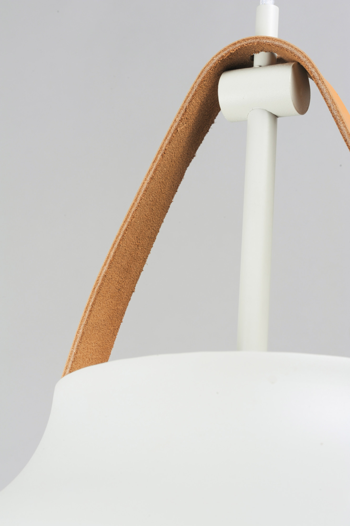 Item DescriptionInspired by classic Scandinavian design, these metal spun pendants of Black, White and Brushed Platinum are accented with natural elements like Walnut finished wood and Tan or Black leather straps.