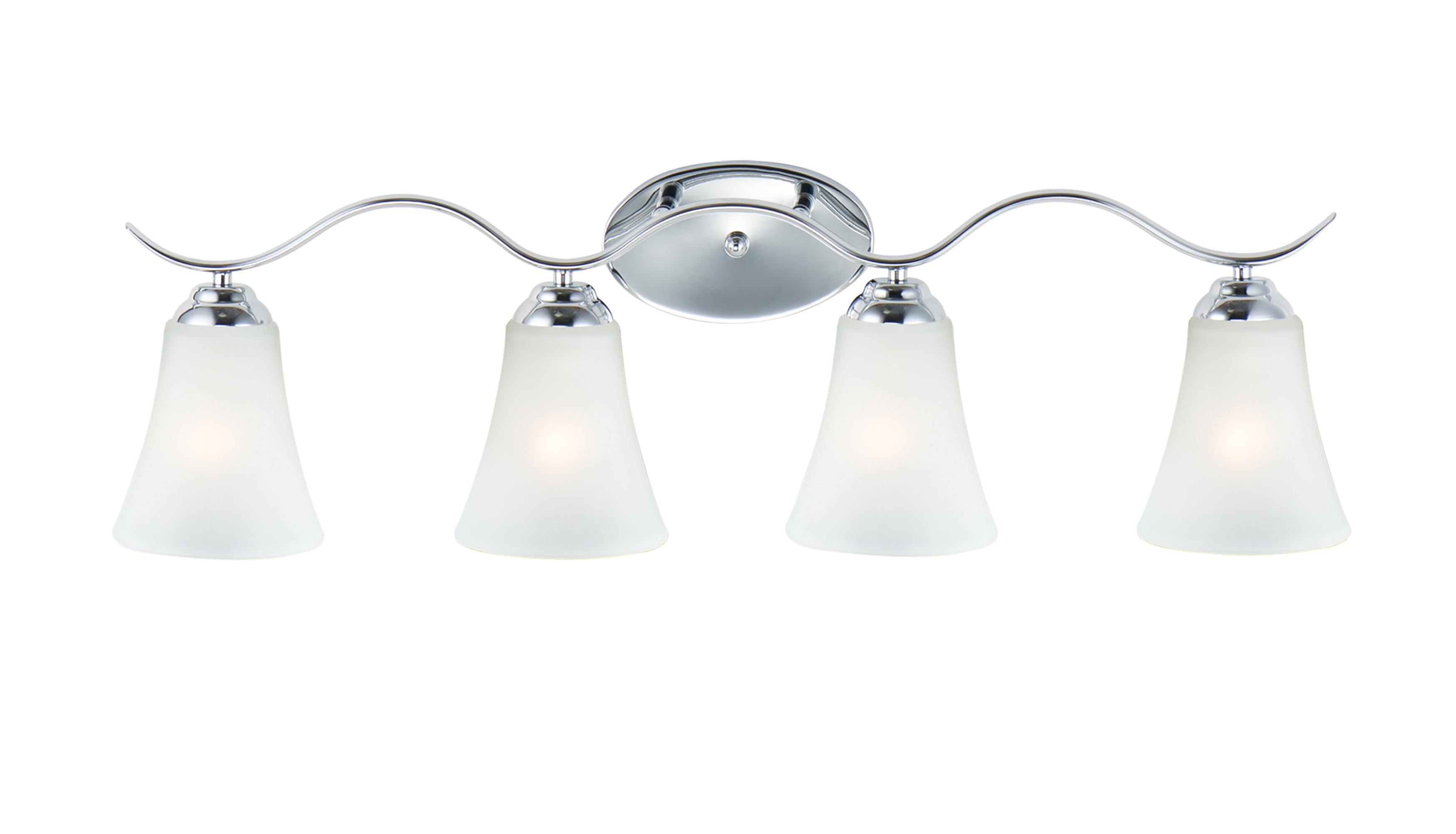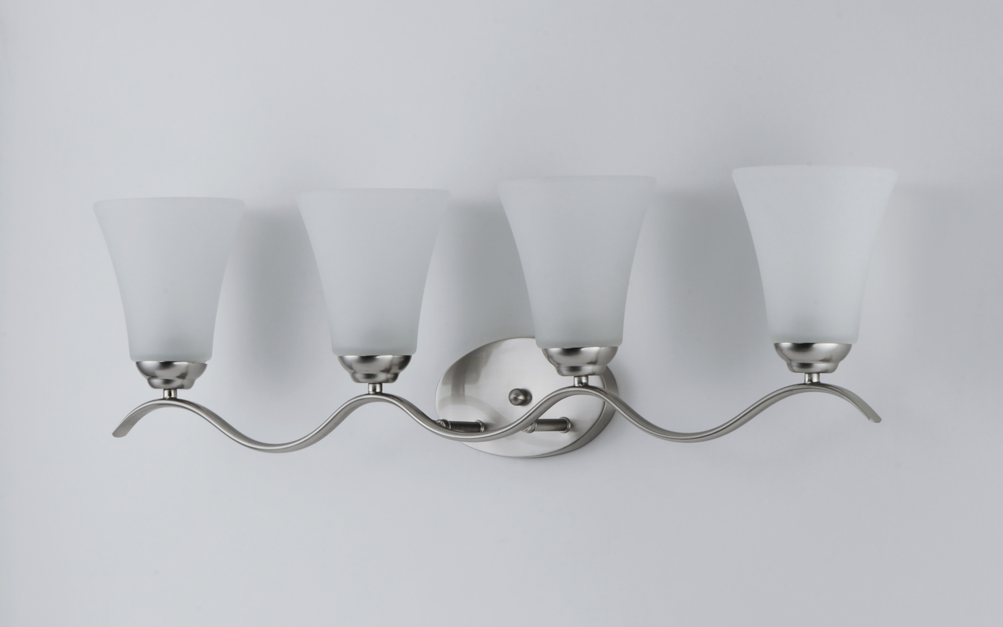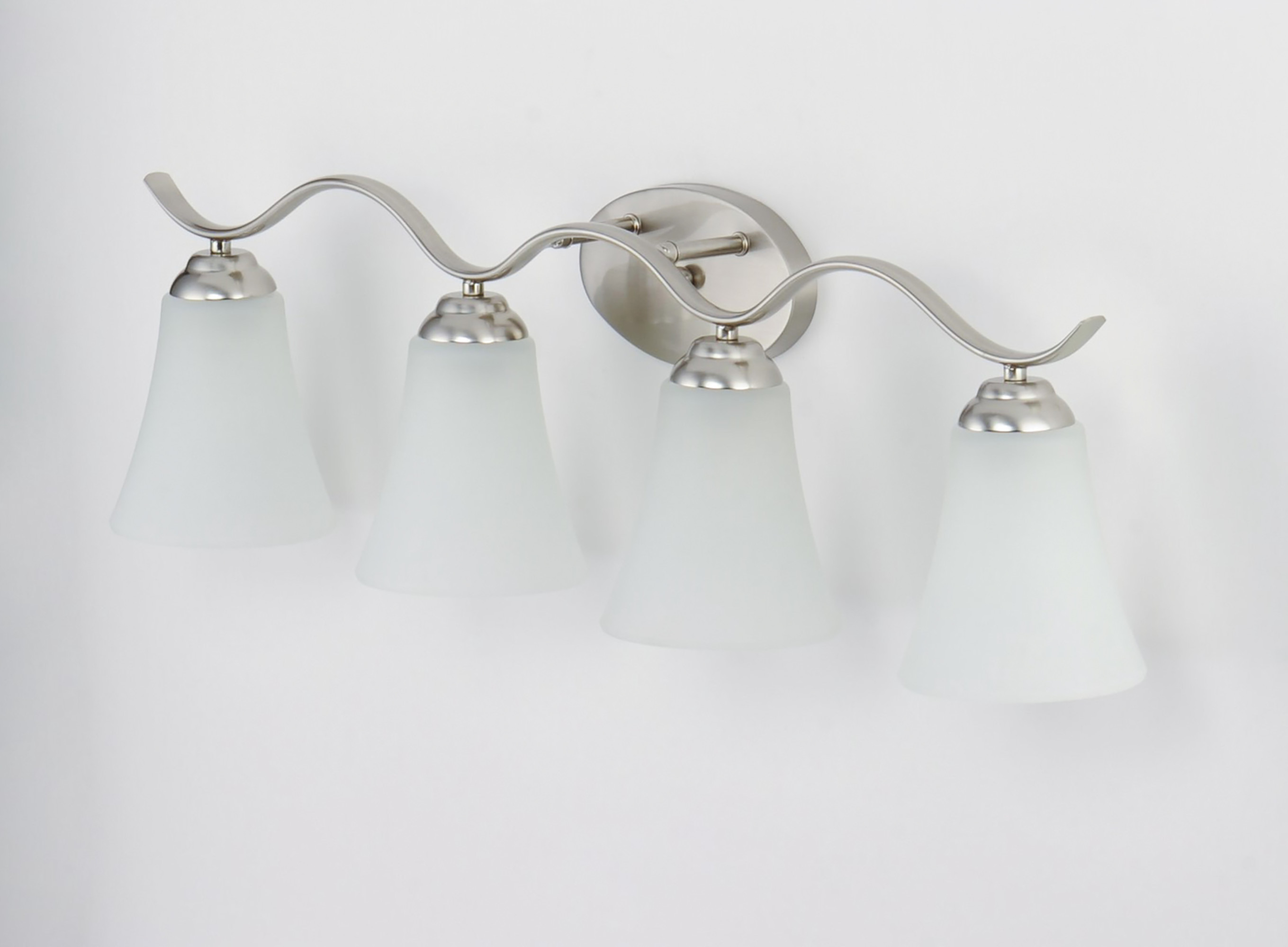 Item DescriptionGently waving arms of metallic color support tall-profile glass shades creating a scale normally not found in this category of lighting. The bath vanity may be installed up or down and also includes metallic finishes.