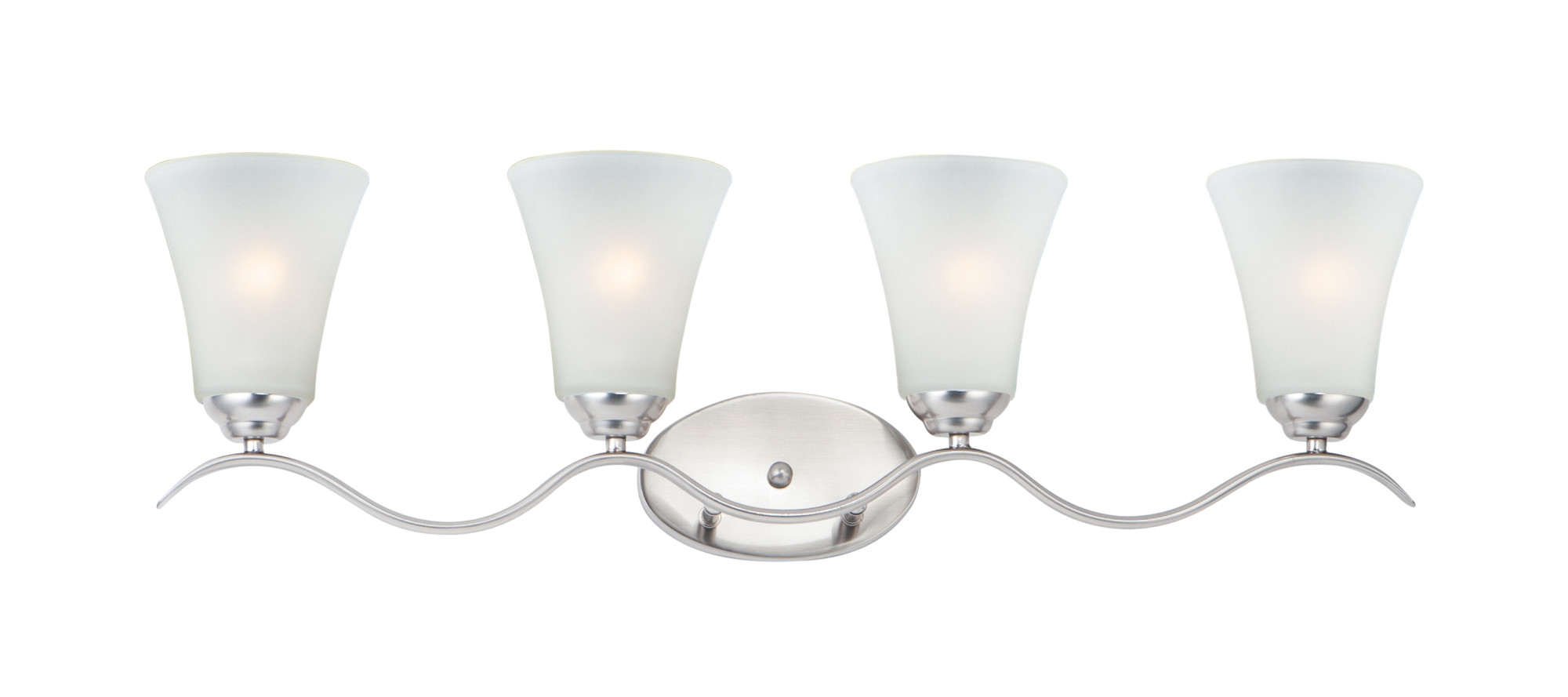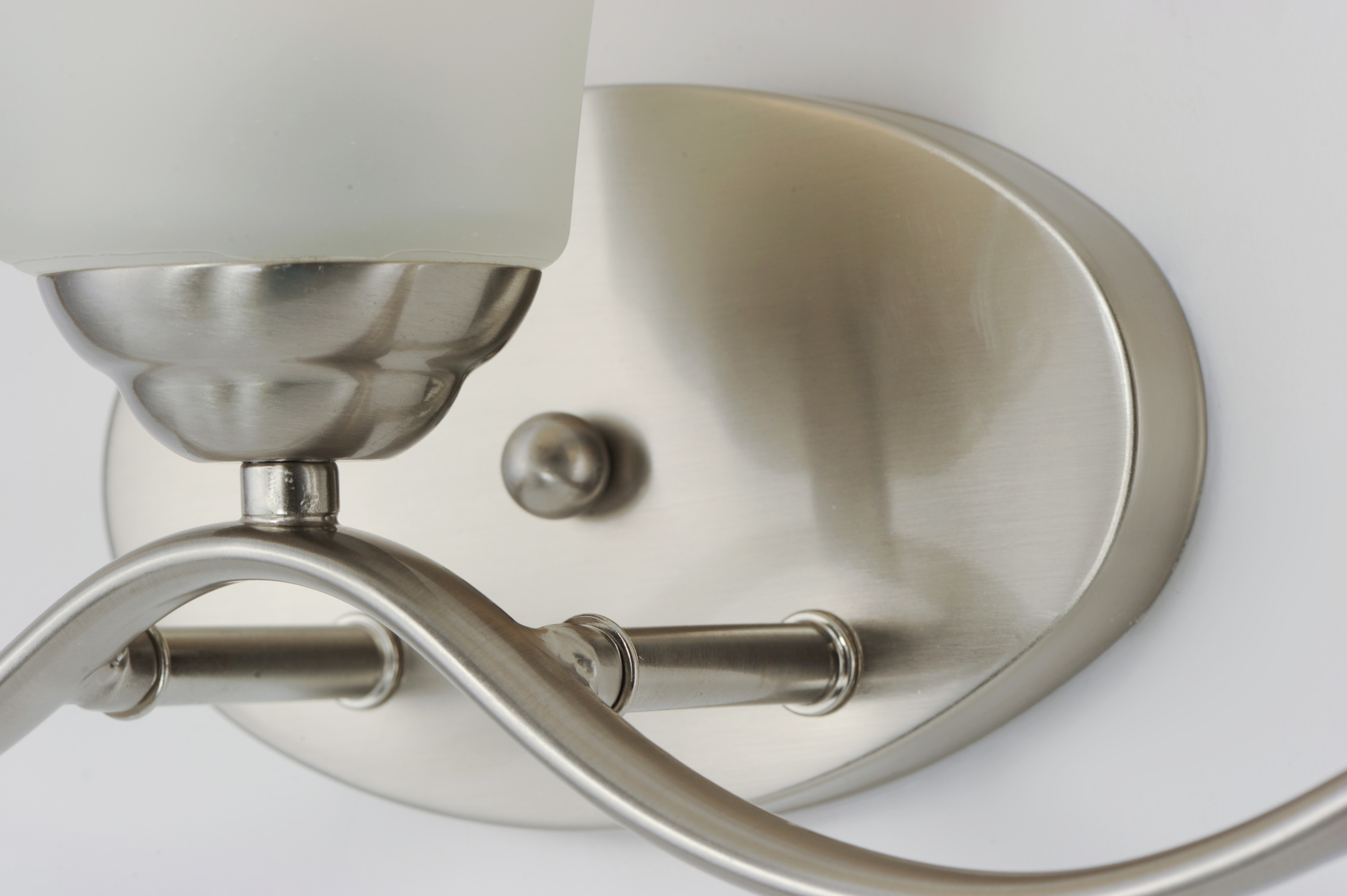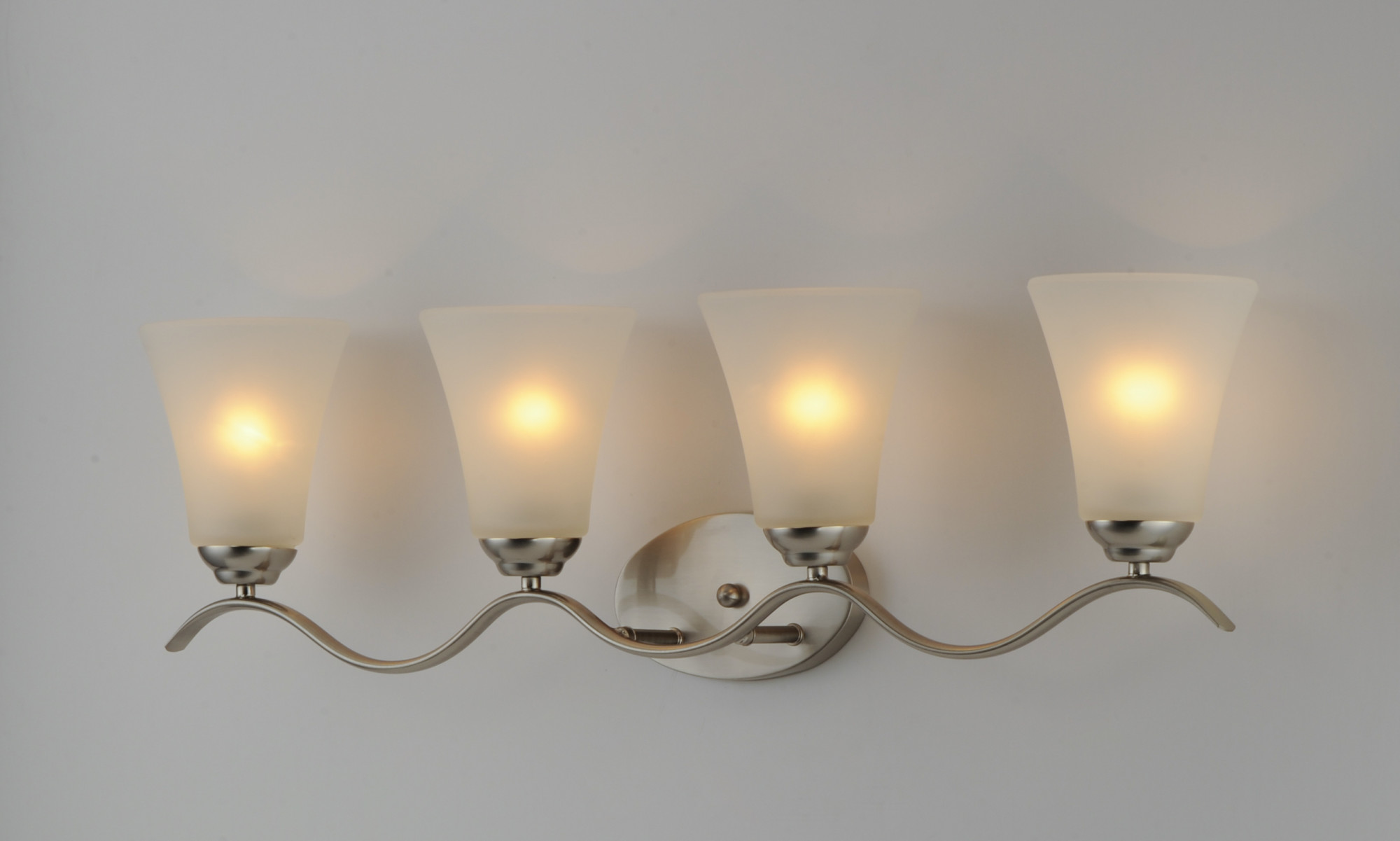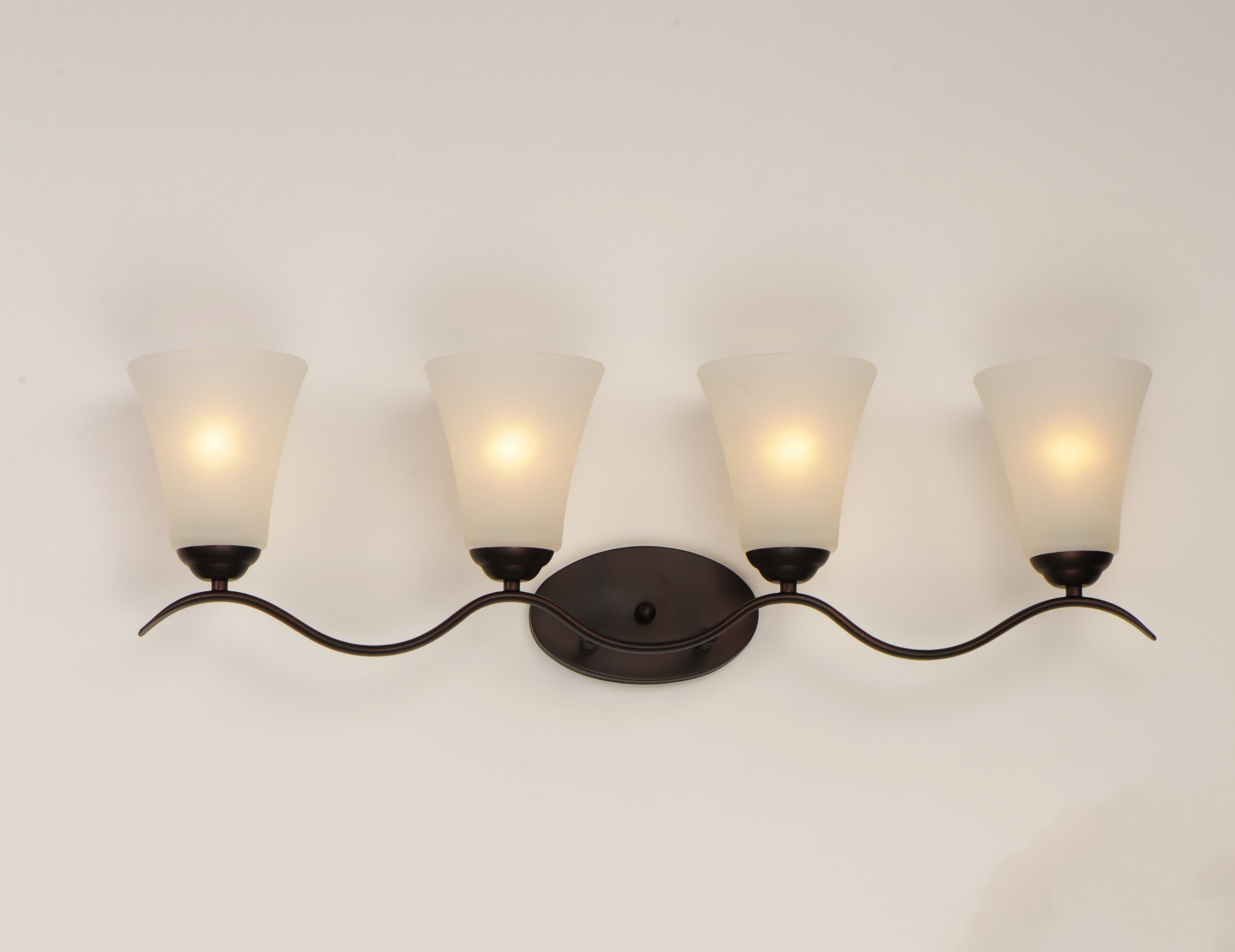 Item DescriptionGently waving arms of metallic color support tall-profile glass shades creating a scale normally not found in this category of lighting. The bath vanity may be installed up or down and also includes metallic finishes.