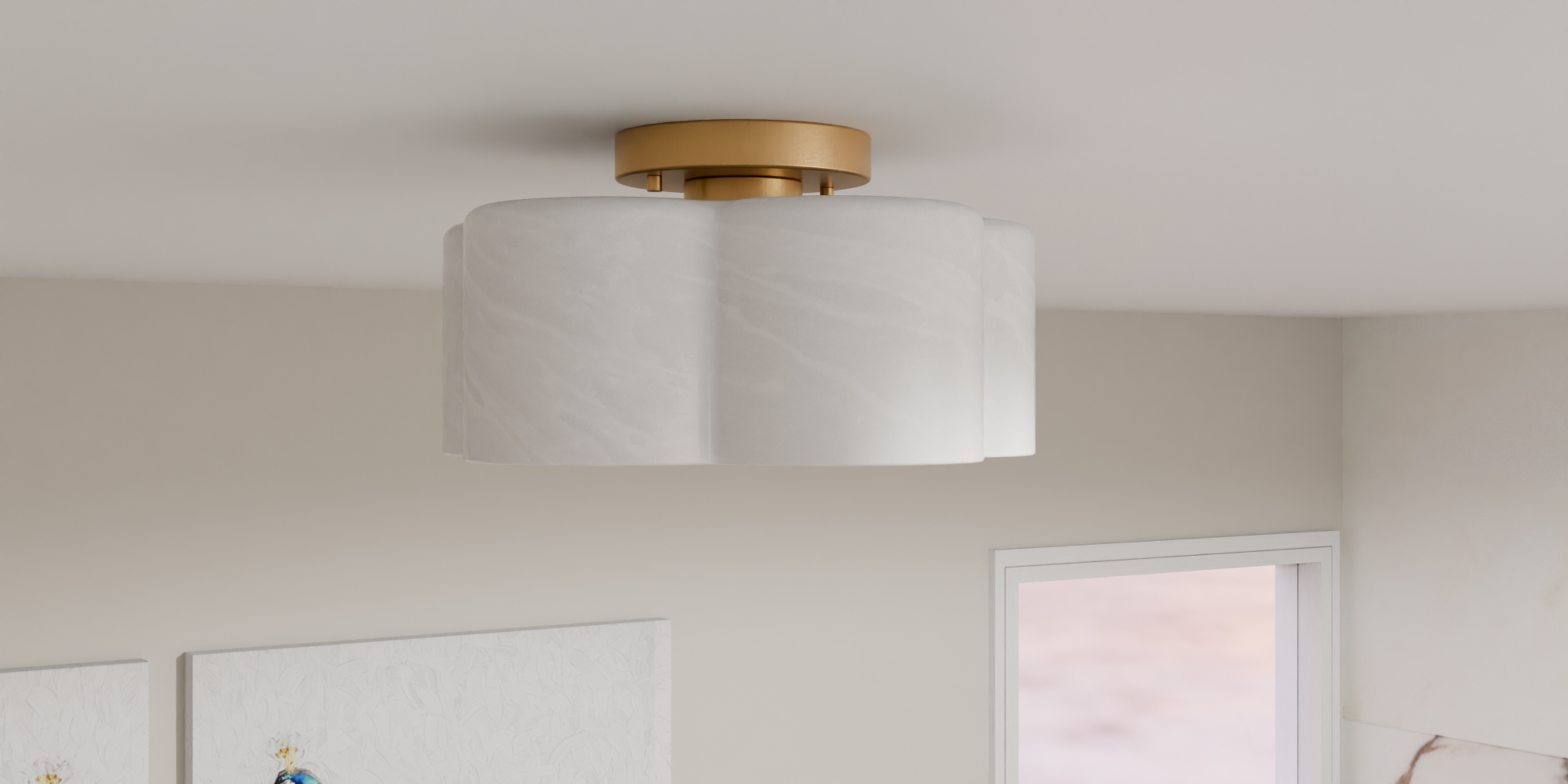 Item DescriptionThe Lilly semi-flush mount light is simple with a modern twist. The flower petal silhouette adds a subtle touch of feminine beauty, making Lily a perfect ceiling light for any bathroom, bedroom, home office, or hallway.