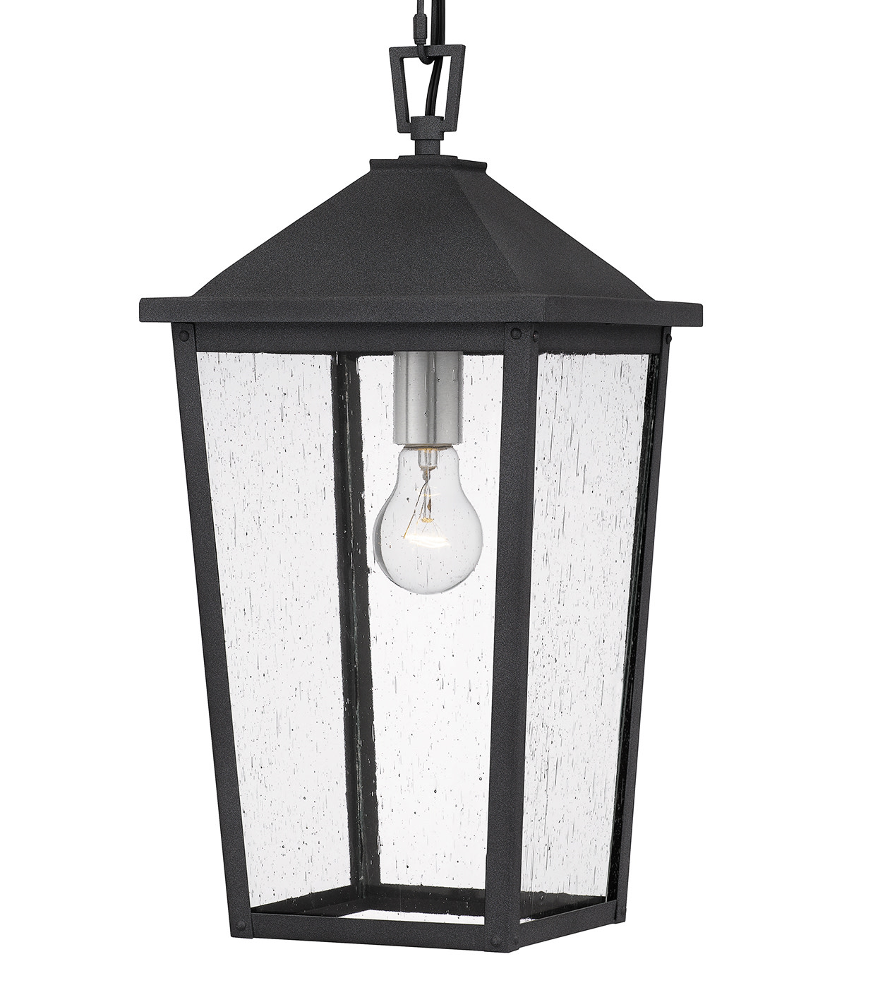 Item DescriptionClear seeded glass gives Stoneleigh a touch of whimsy. In a mottled black finish, this pendant design is otherwise stately and handsome. Suspend it within a portico to welcome guests in refined fashion.