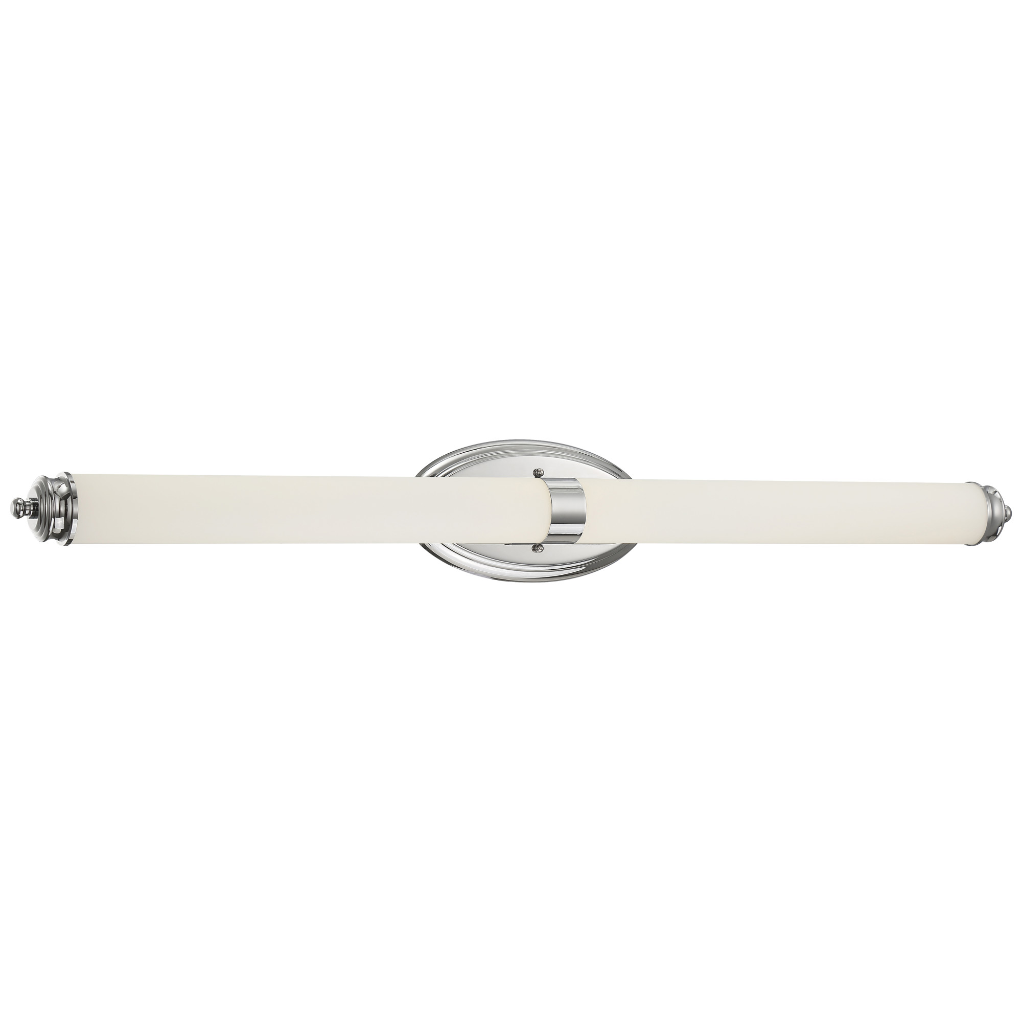 Item DescriptionBold and balanced are the defining elements of Aiden. A striking, signature cuff centers the etched white glass baton, while matching end caps complete the simple symmetry. The clean transitional silhouette can be mounted vertically or horizontally with Invisimount for a look that is as flexible as it is fashionable.