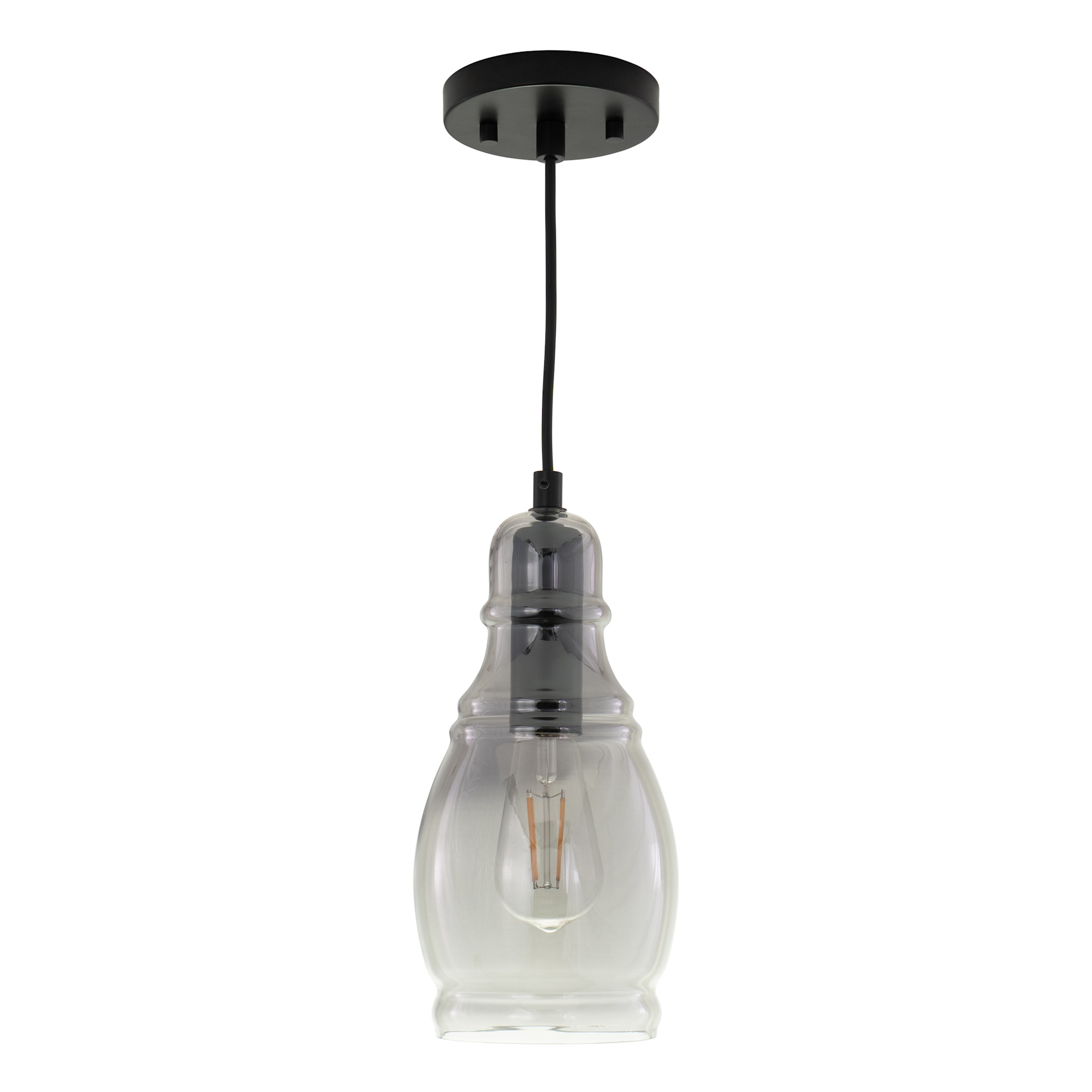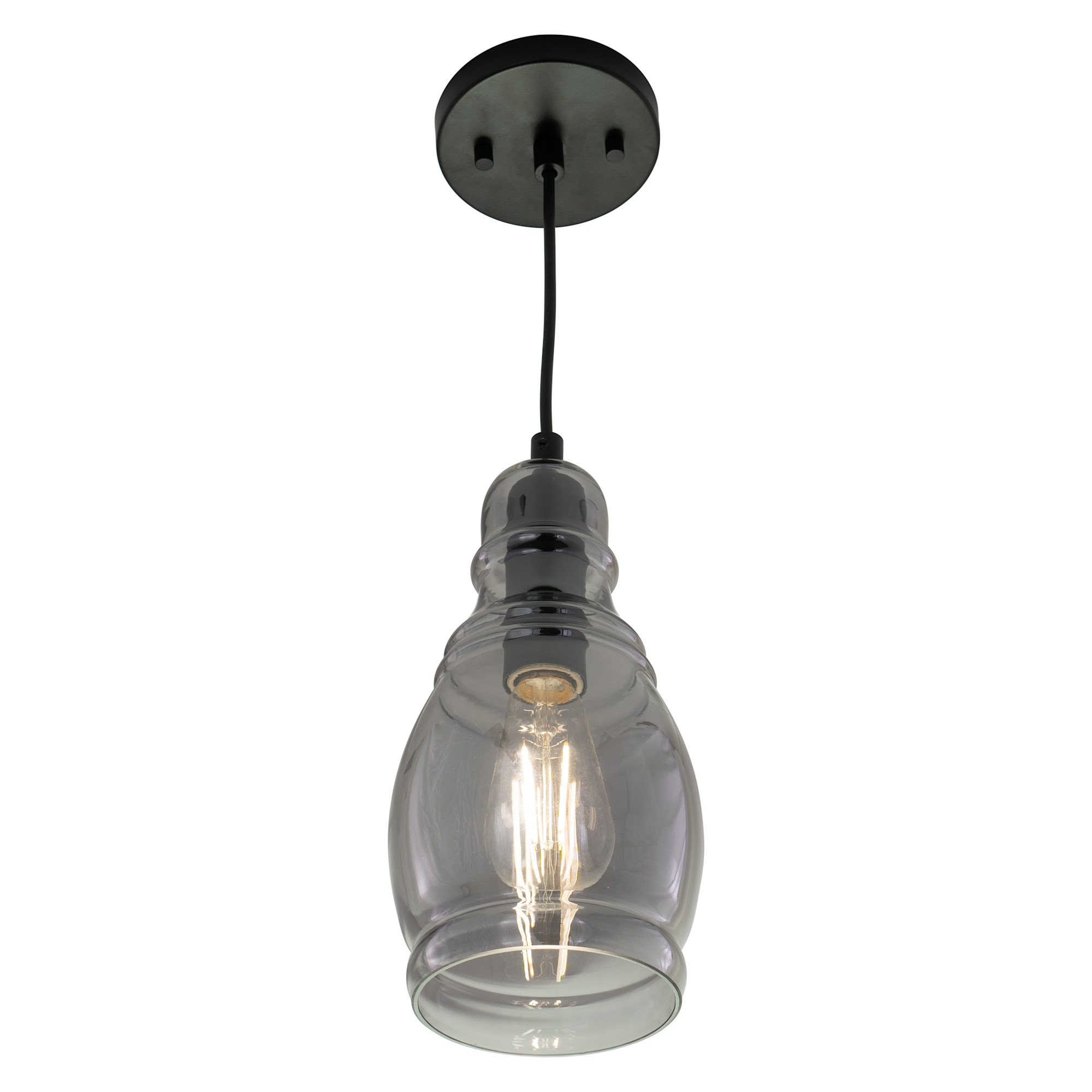 Item DescriptionBeautiful smoke glass adds a refreshing touch to the Millie collection. Offered in two shapes, whether alone or in a grouping, this mini pendant is sure to add character to your kitchen or entertaining spaces. Ideal for kitchens, dining, or bar areas. Designed with a cord that is suitable for sloped ceilings. Combine with a vintage Edison style filament bulb to complete the look.