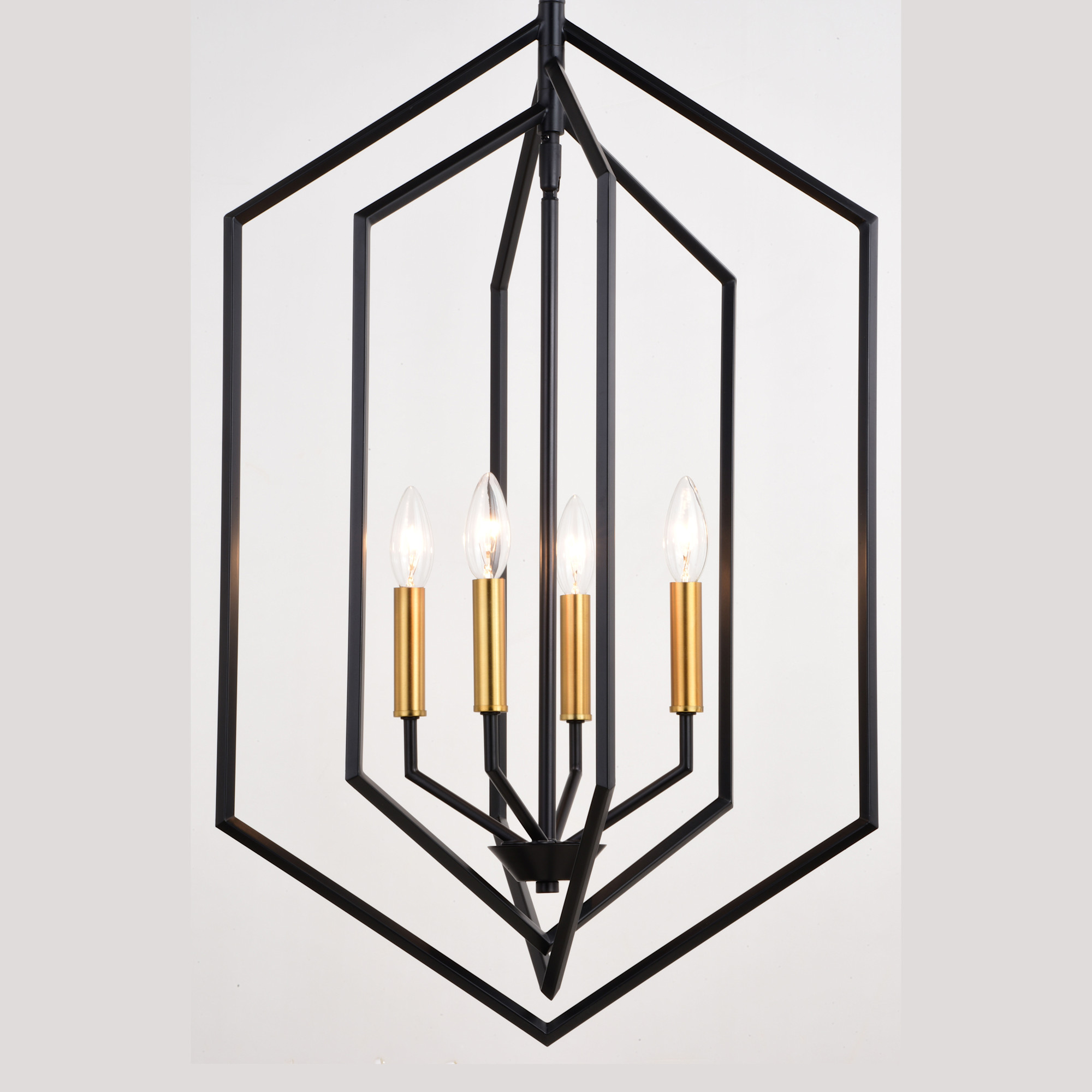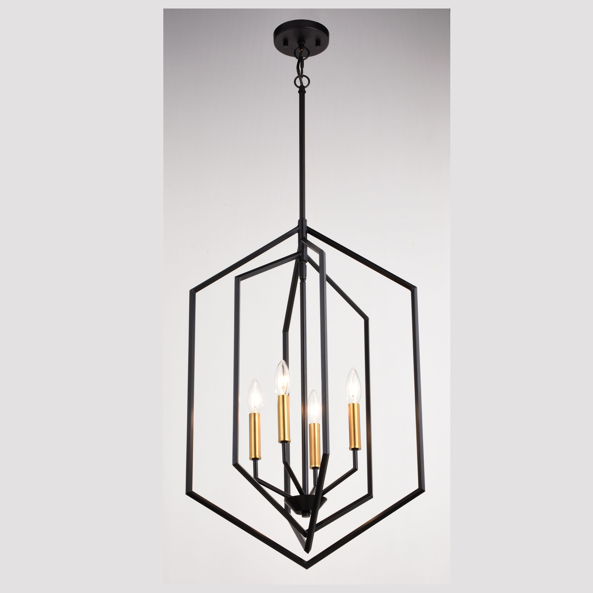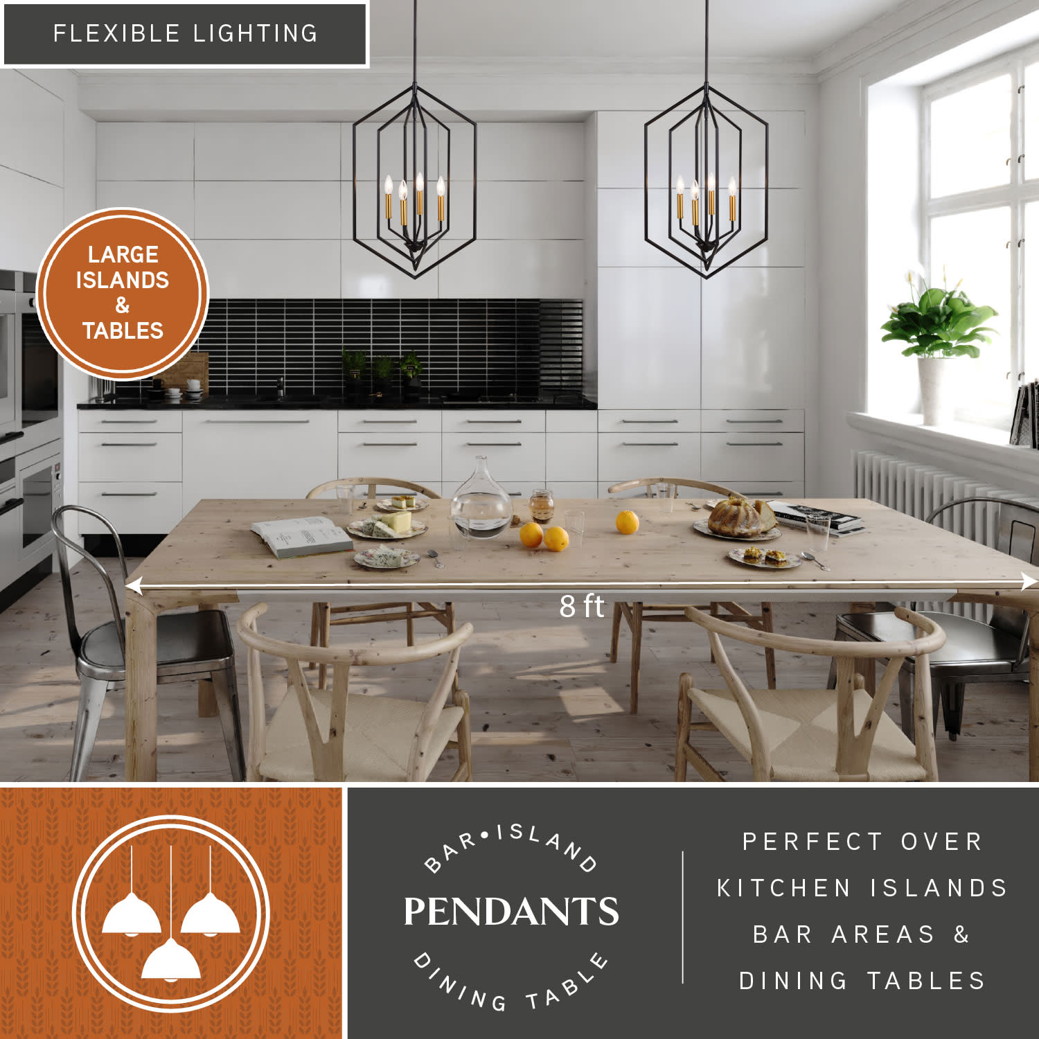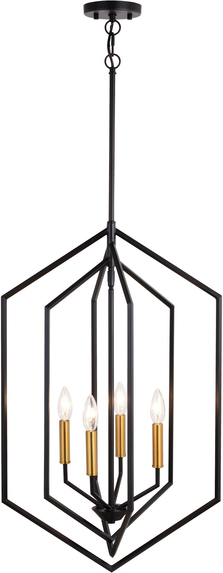 Item DescriptionThe sharp geometric lines of the Riley collection coordinate well with contemporary and modern spaces. The nested frames showcase the candelabra light source within. Rotate the shapes into a flat plane for a more linear look. Or space the arms apart for a more dimensional look. This ceiling pendant is ideal for a variety of kitchen, dining, or foyer spaces.